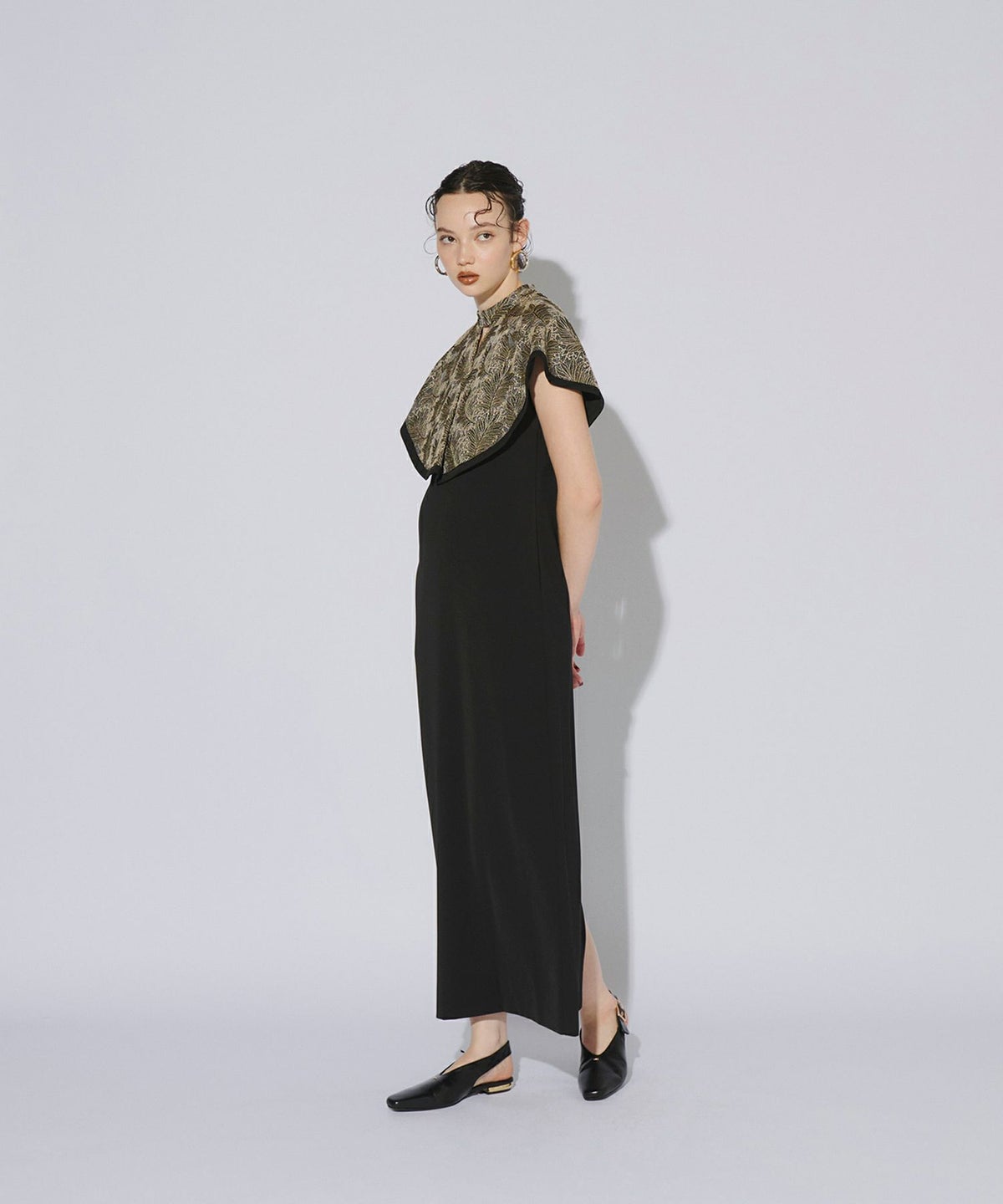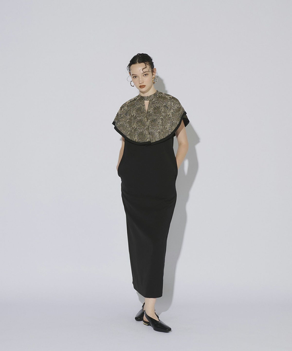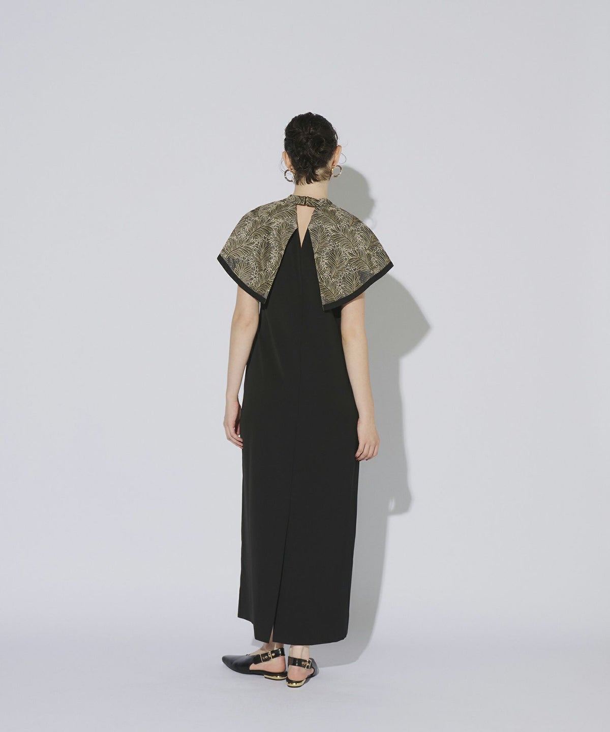 全面刺繍の存在感あるケープ部分に対して