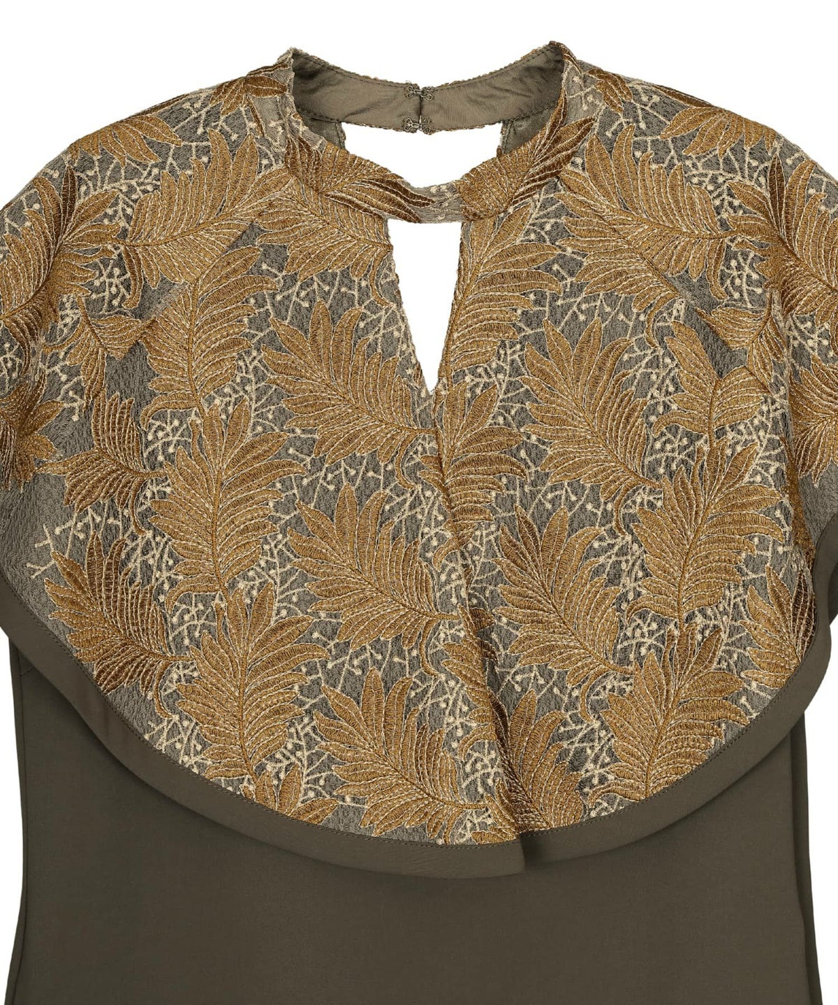 どこかオリエンタルなムード漂う刺繍が美しく、着る人の個性を引き立てます。