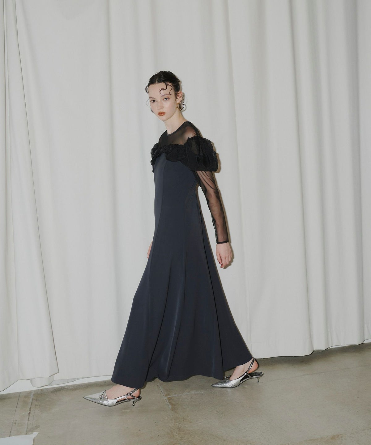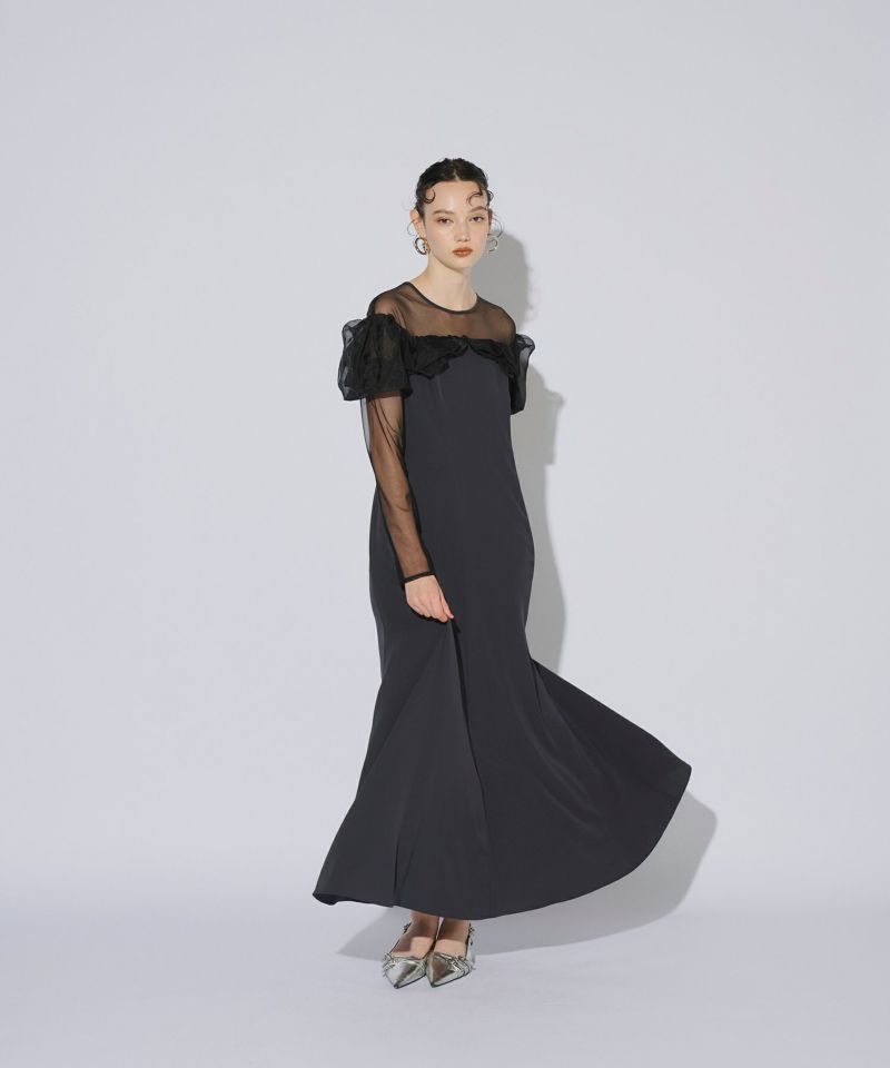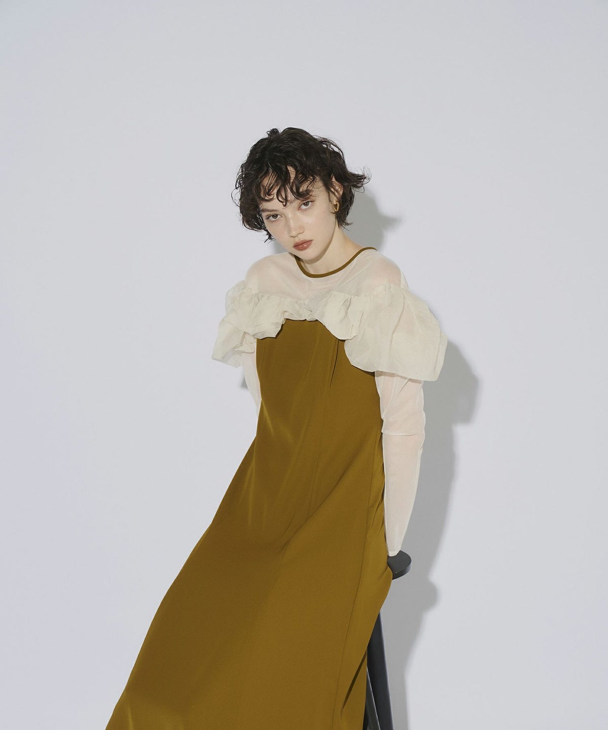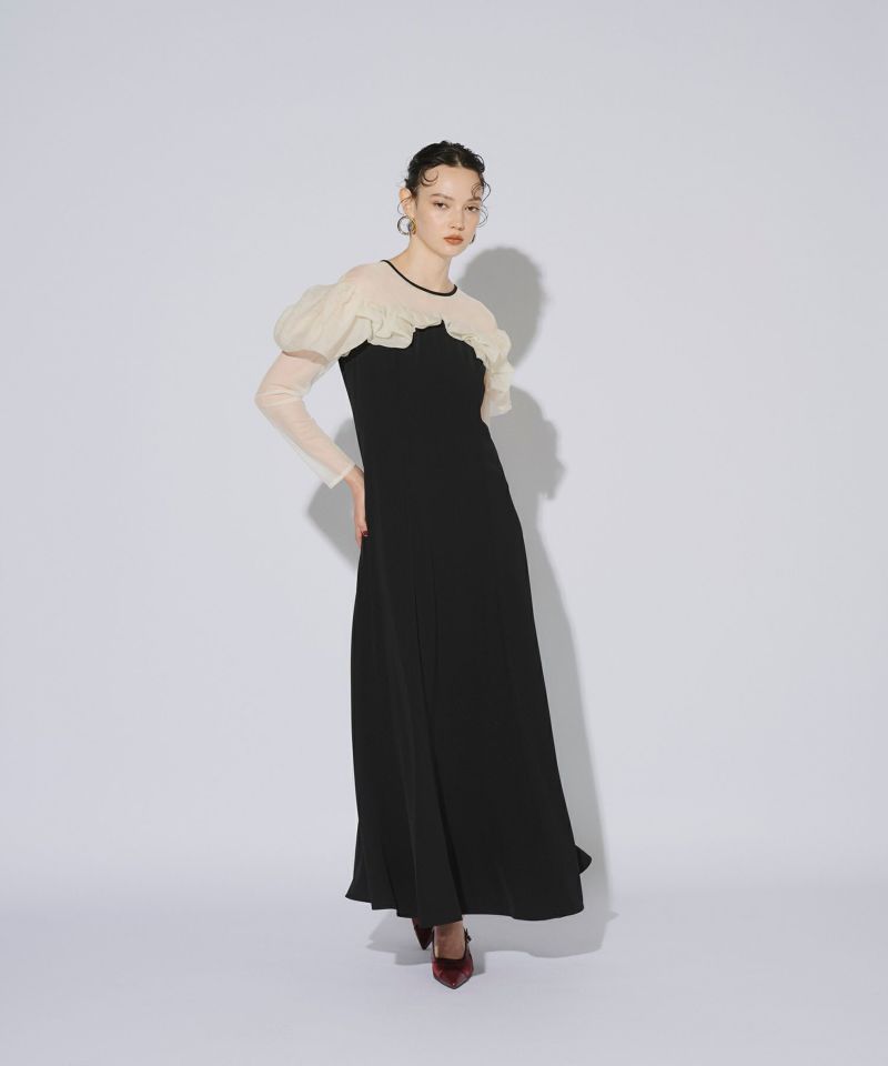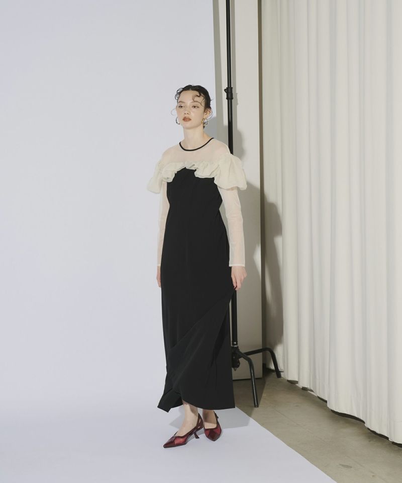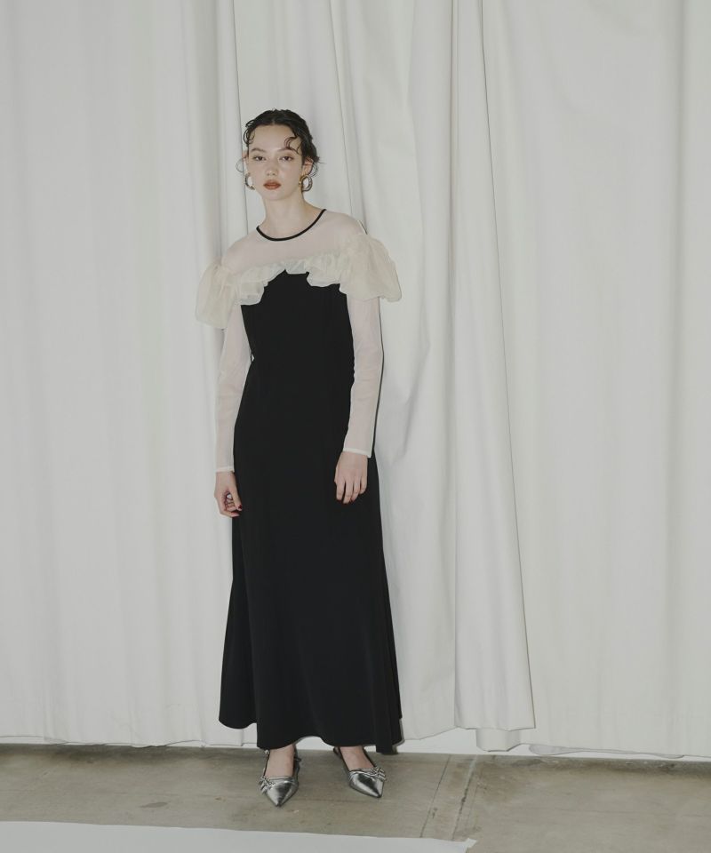 オーガンジー素材を使用したラッフルは、ボリューム感と動きのある流れにこだわりました。