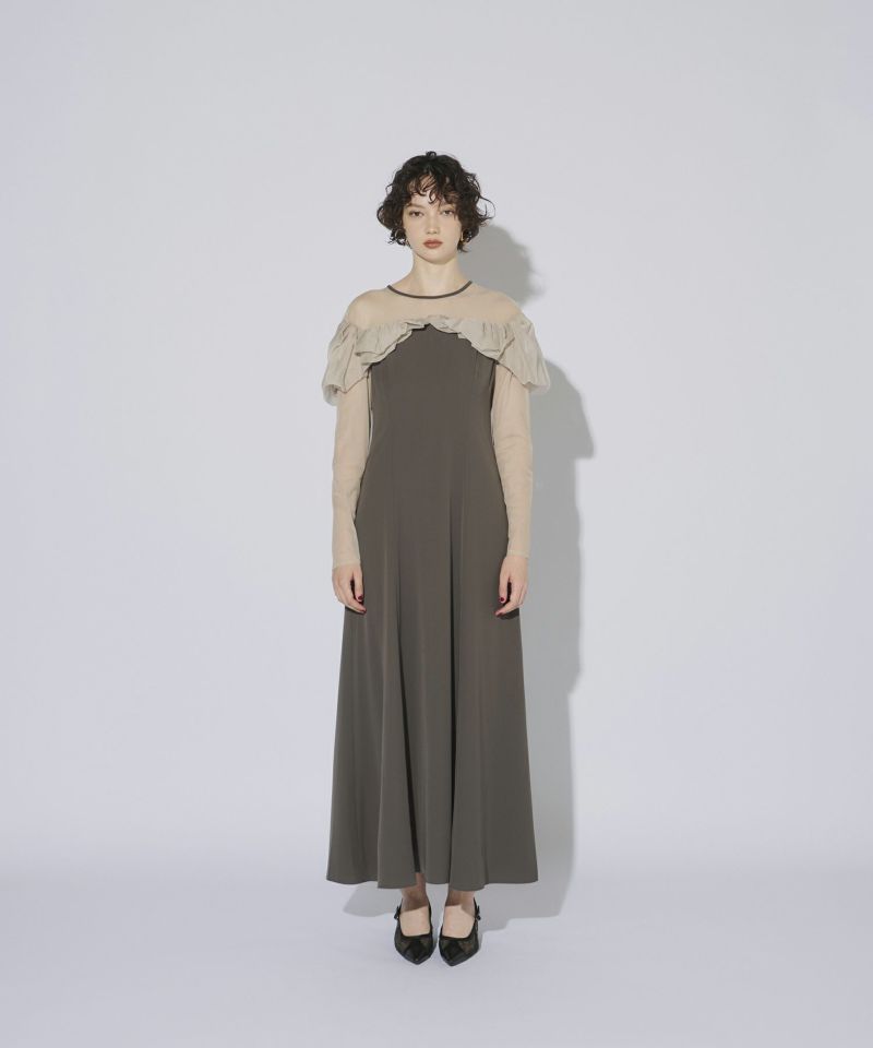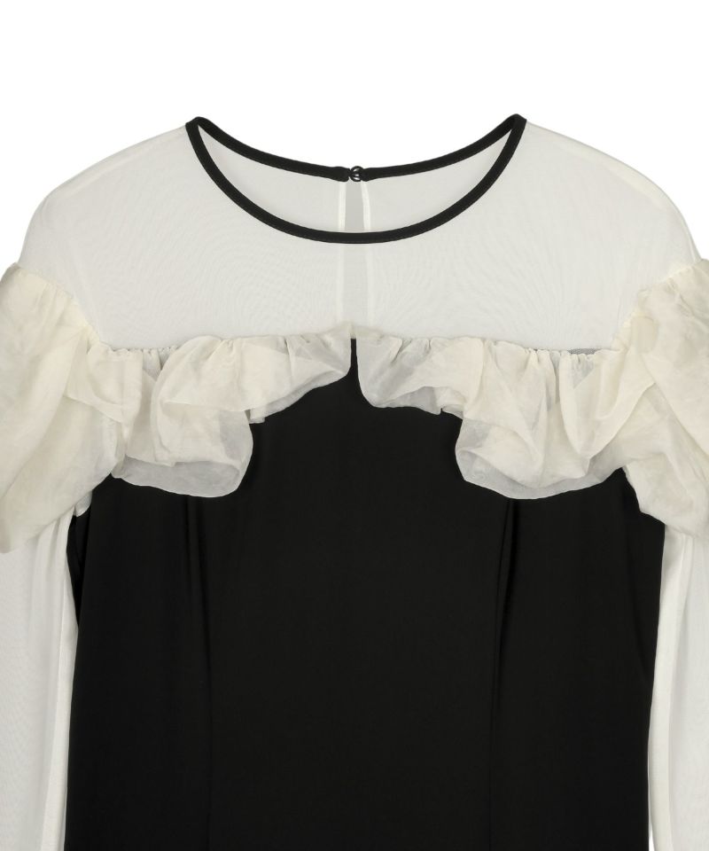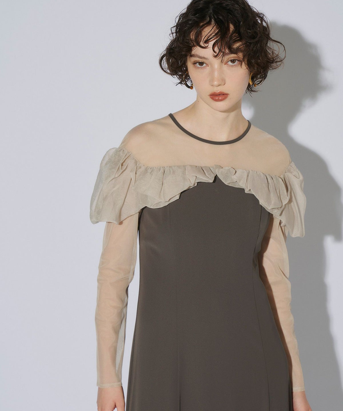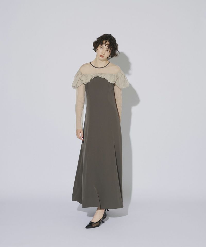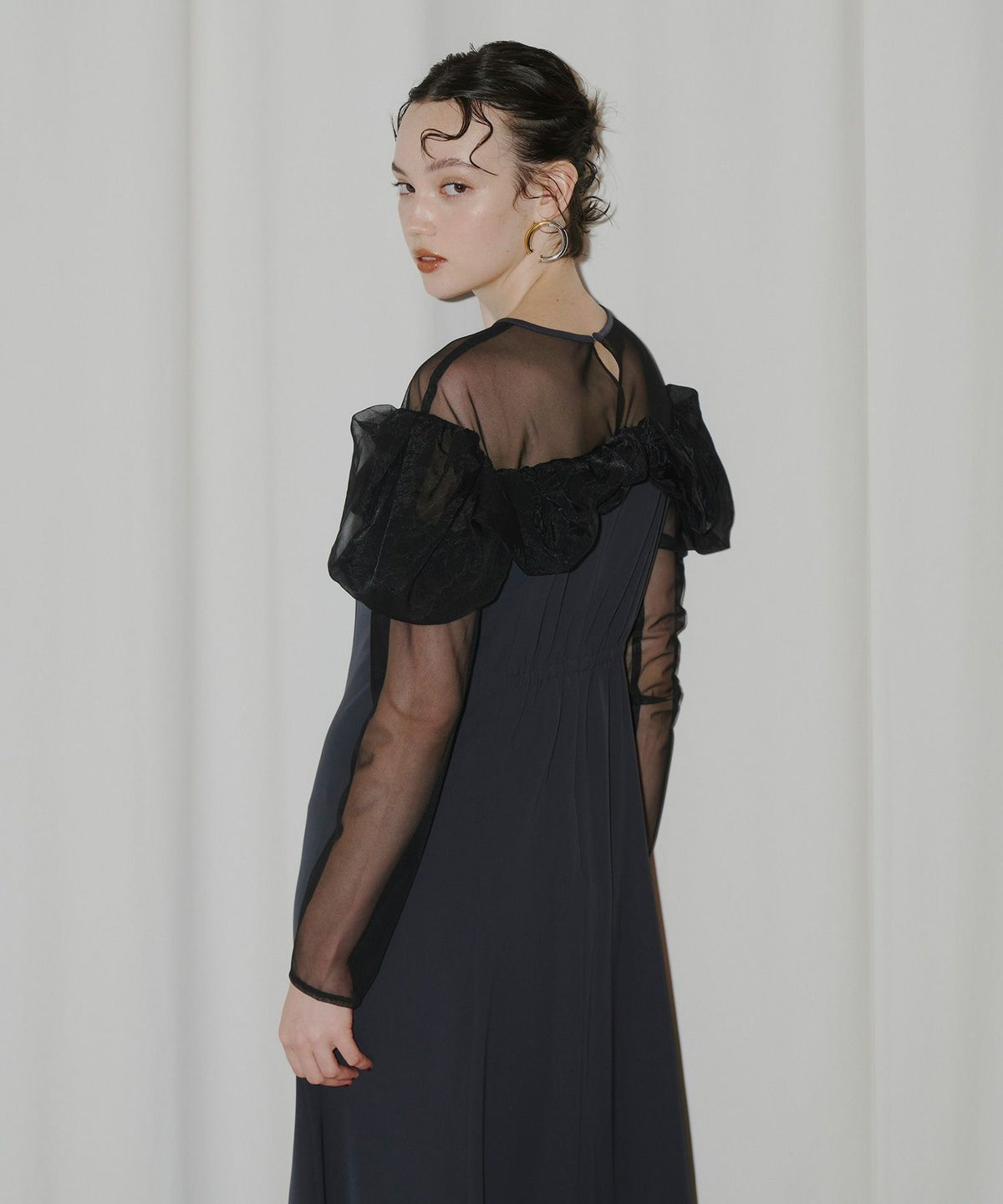 オーガンジー素材を使用したラッフルは、ボリューム感と動きのある流れにこだわりました。