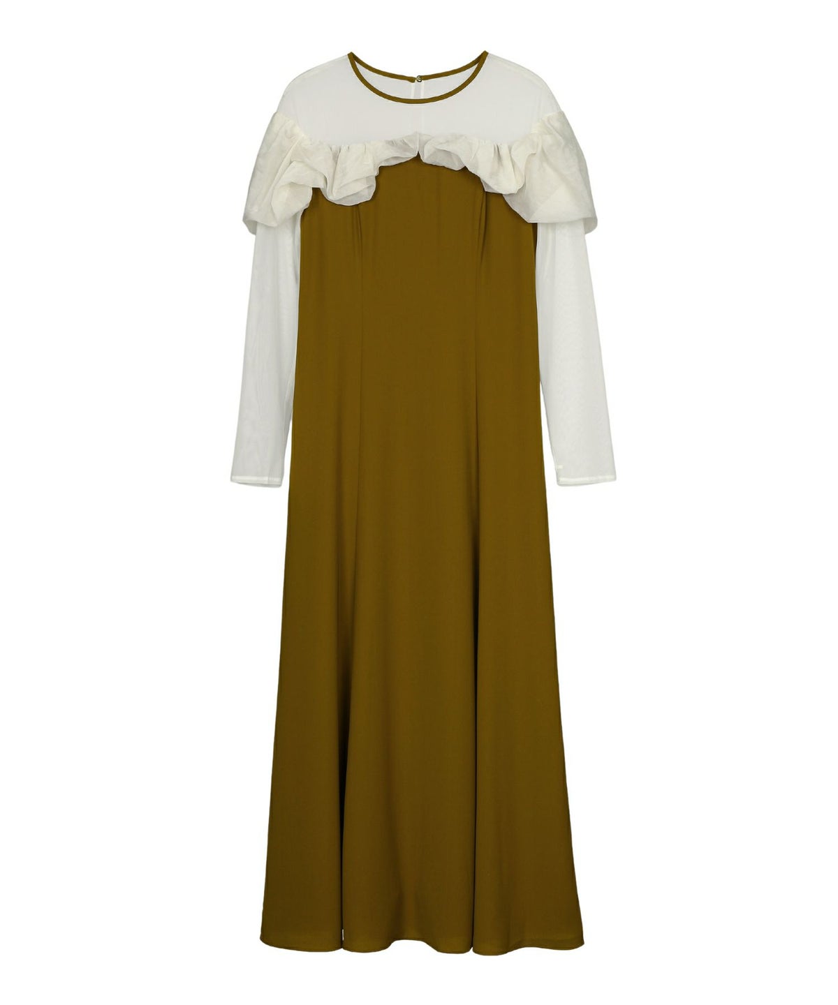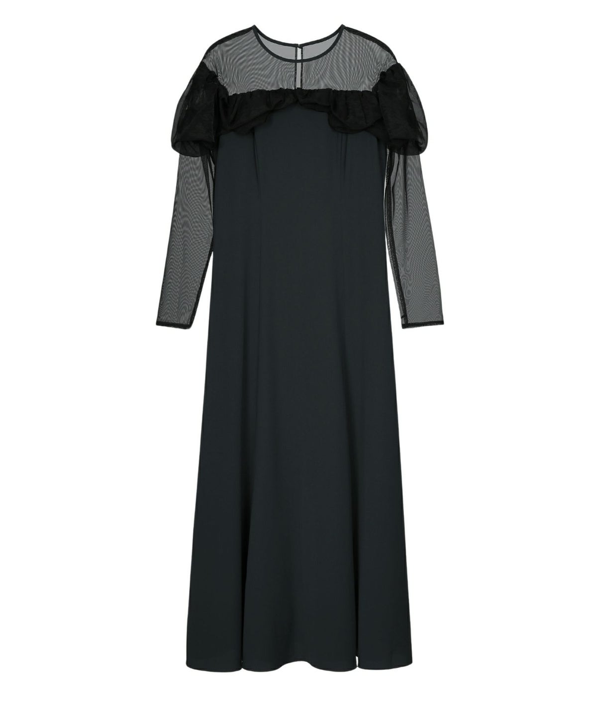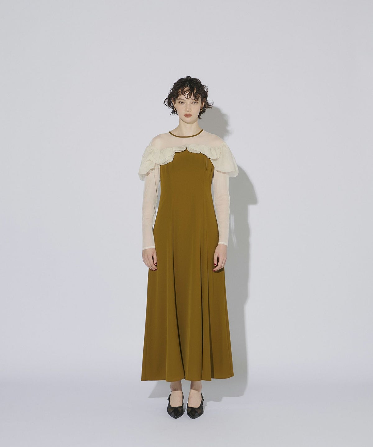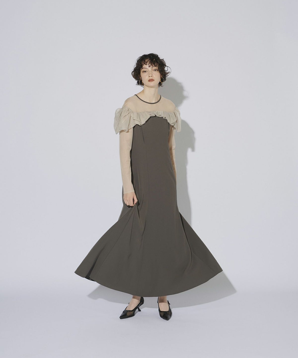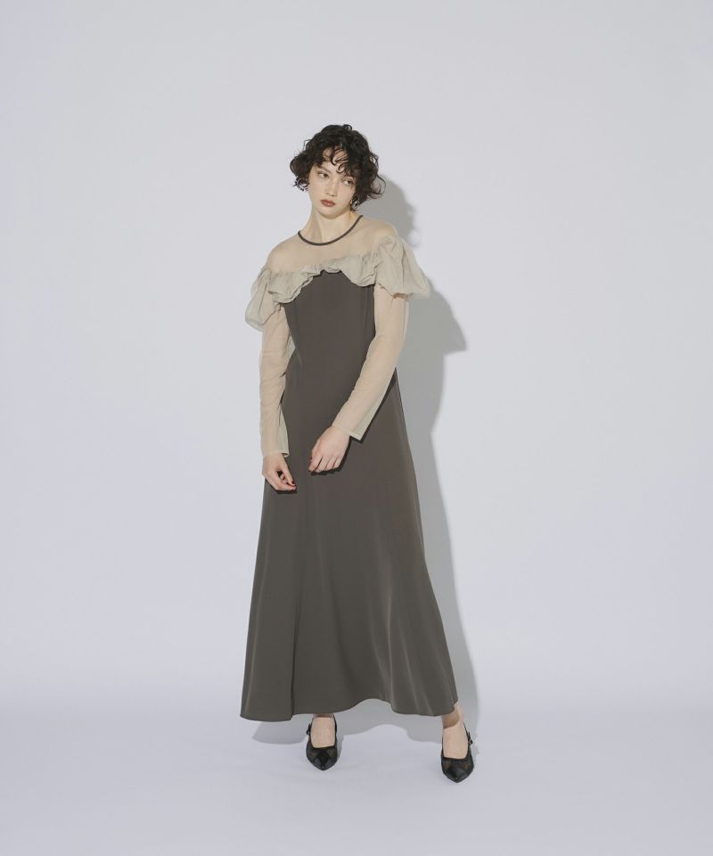 オーガンジー素材を使用したラッフルは、ボリューム感と動きのある流れにこだわりました。