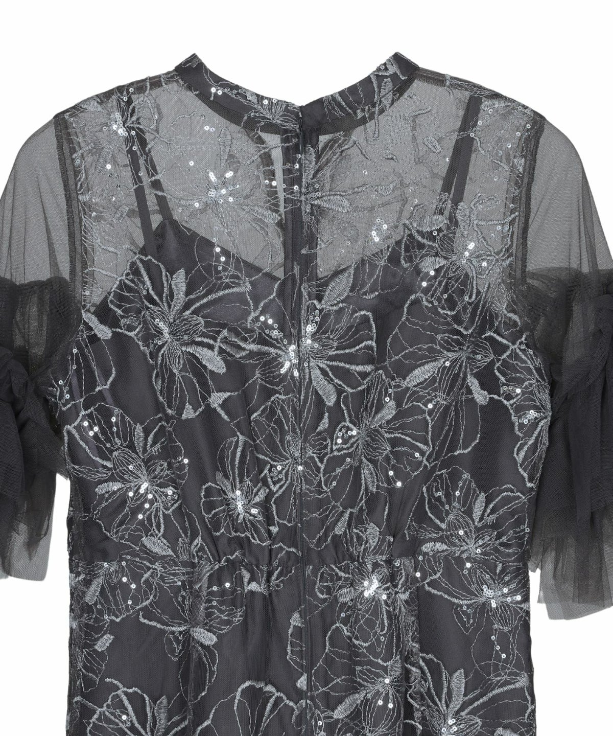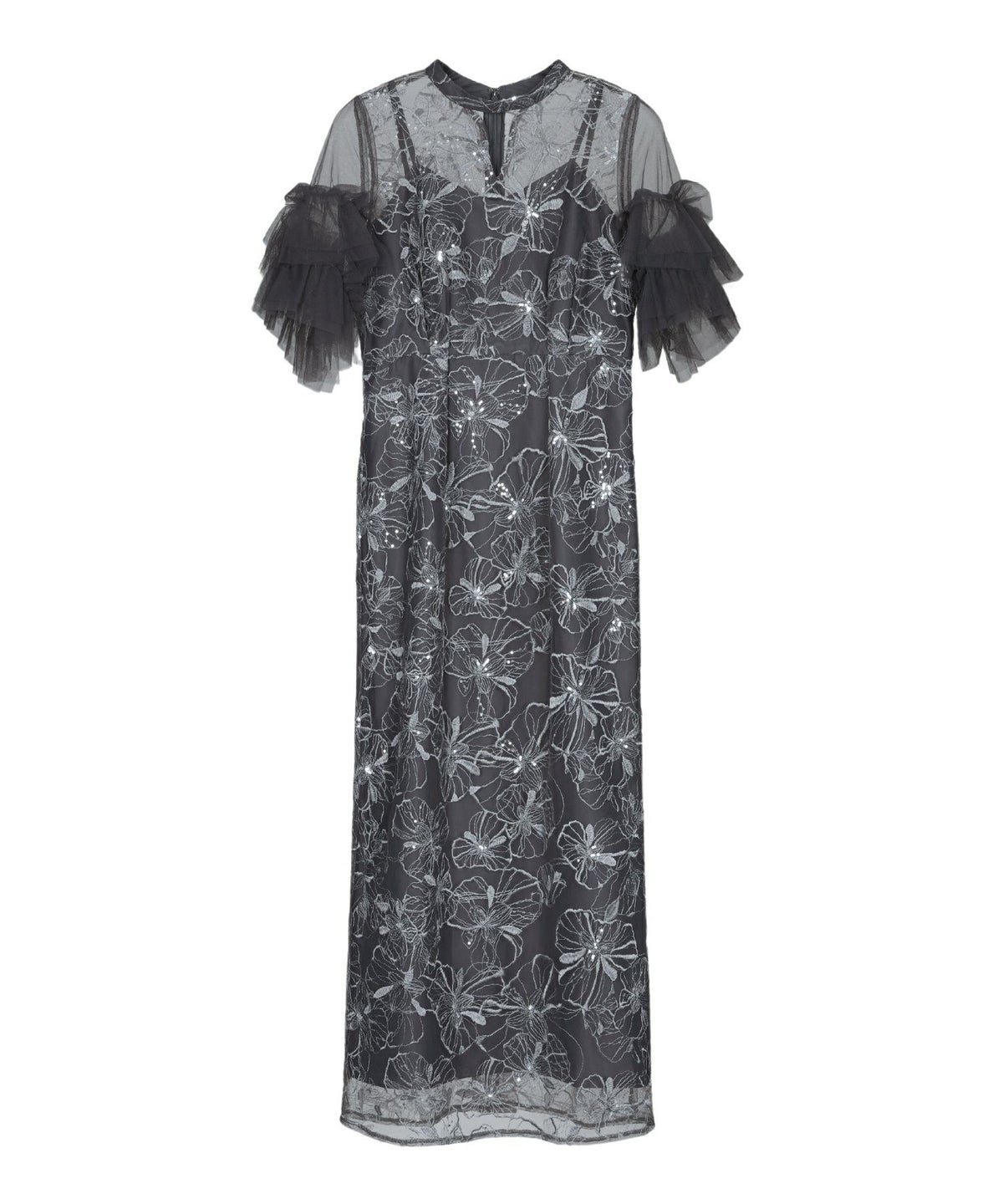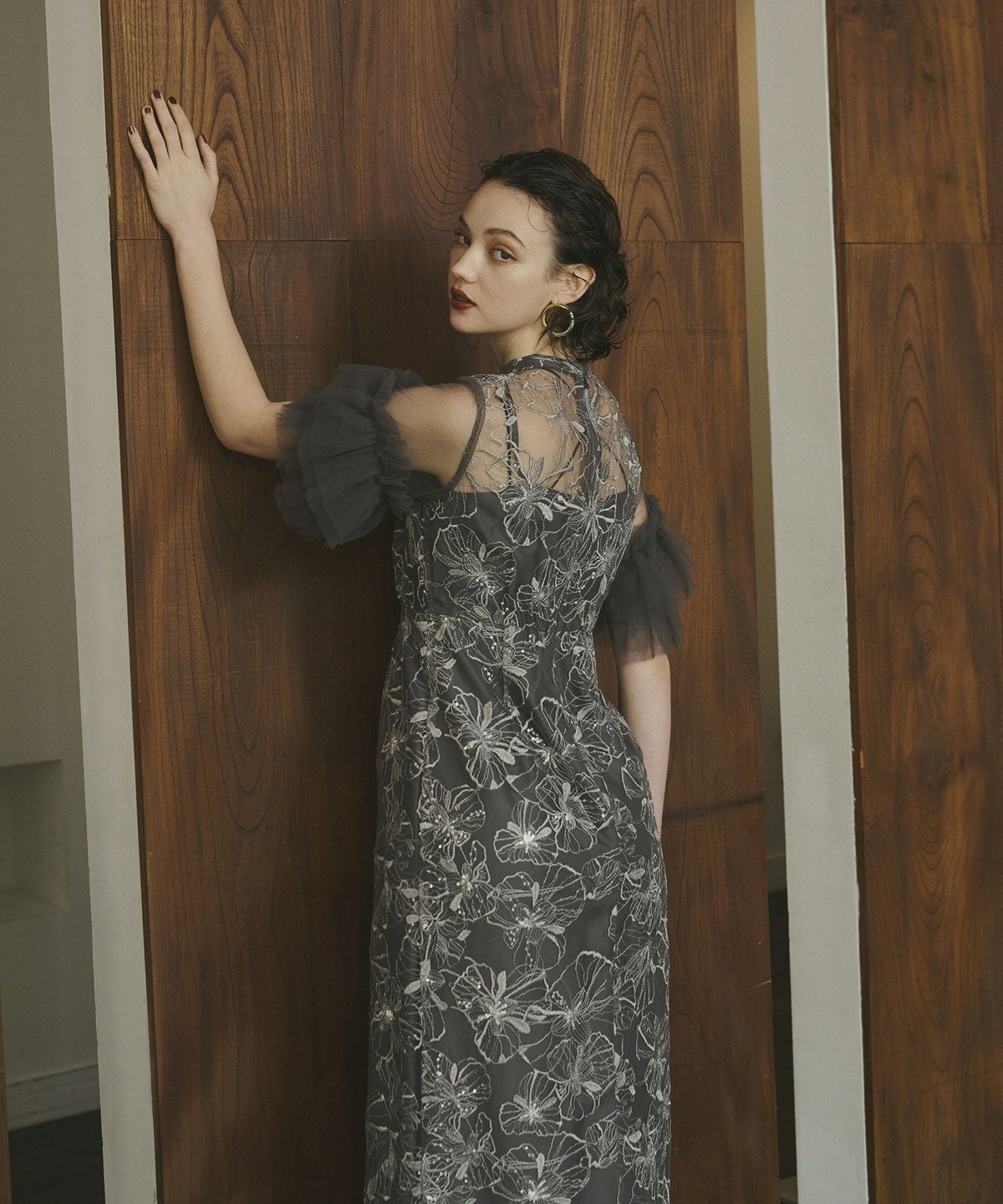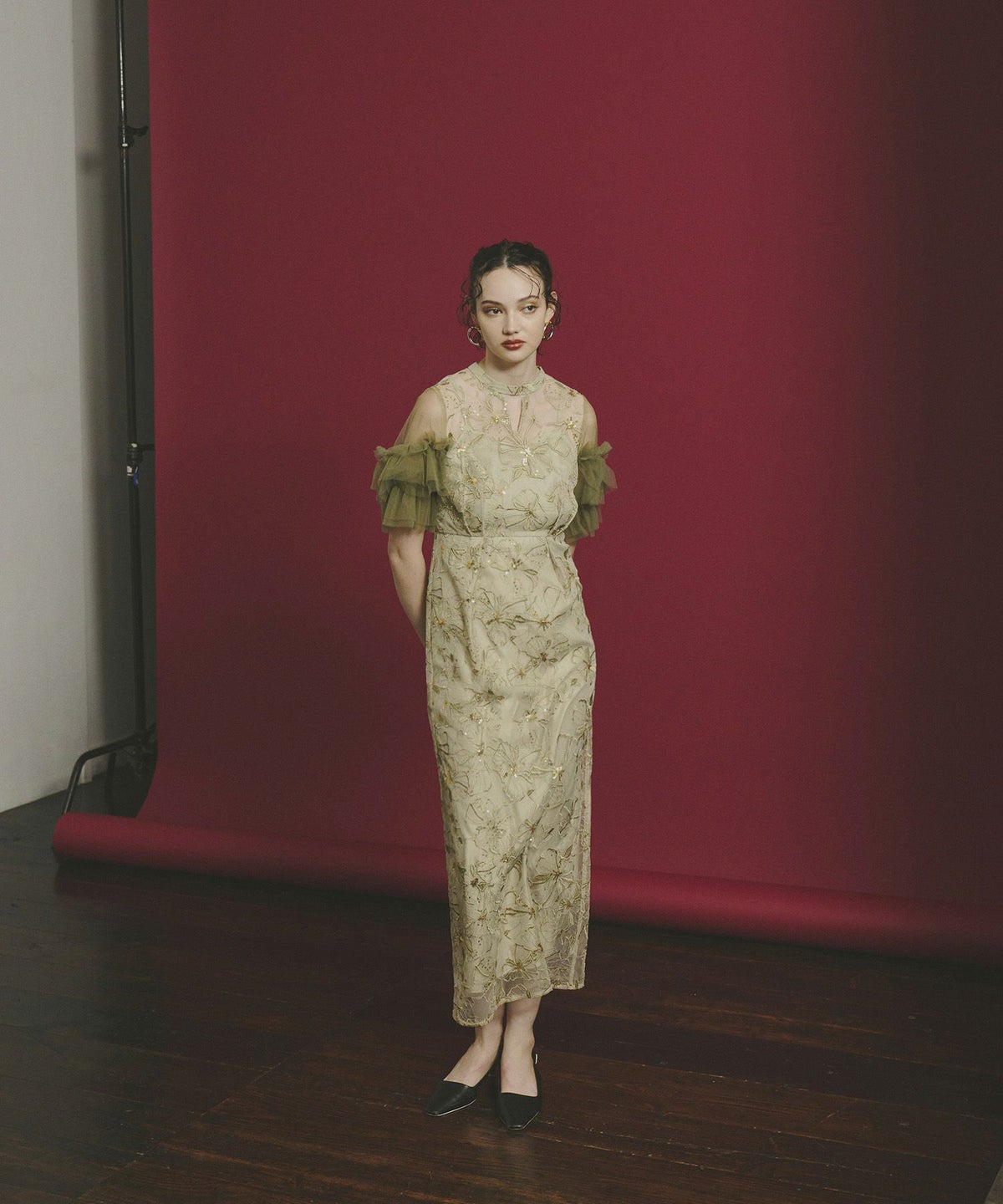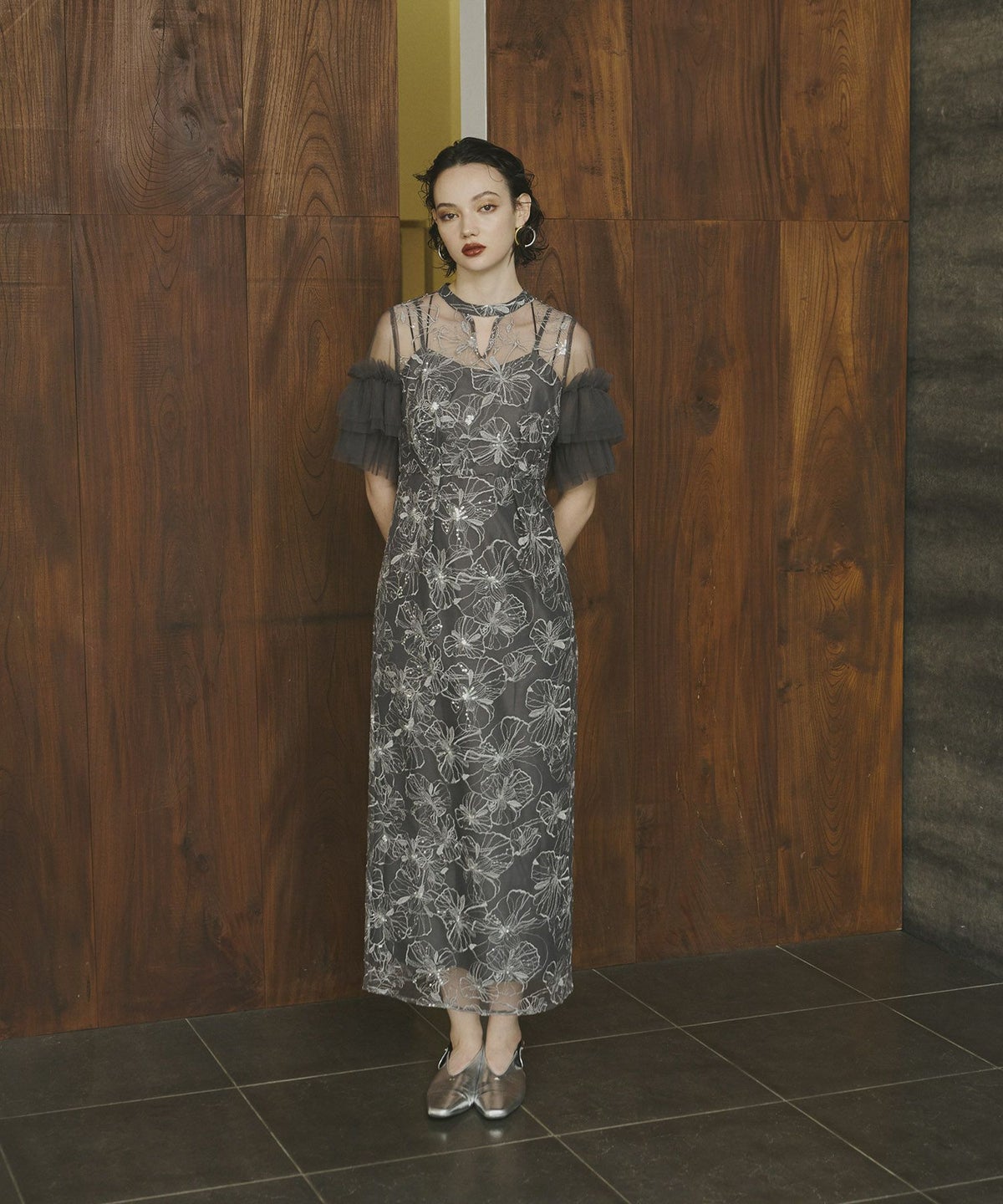 繊細なチュールの上にトレンドのスパンコールをふんだんに使った刺繍を施した「the occasion dress」。