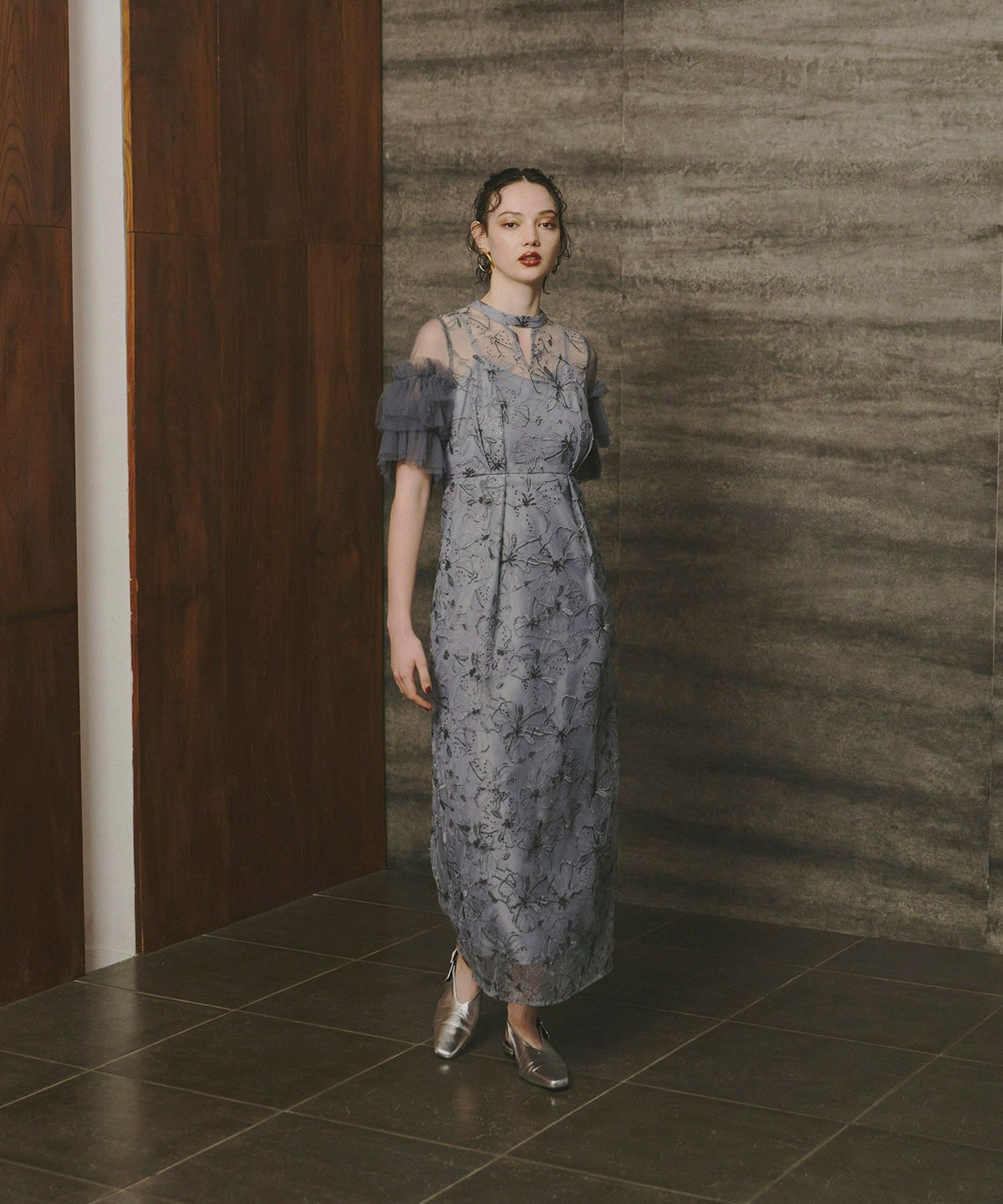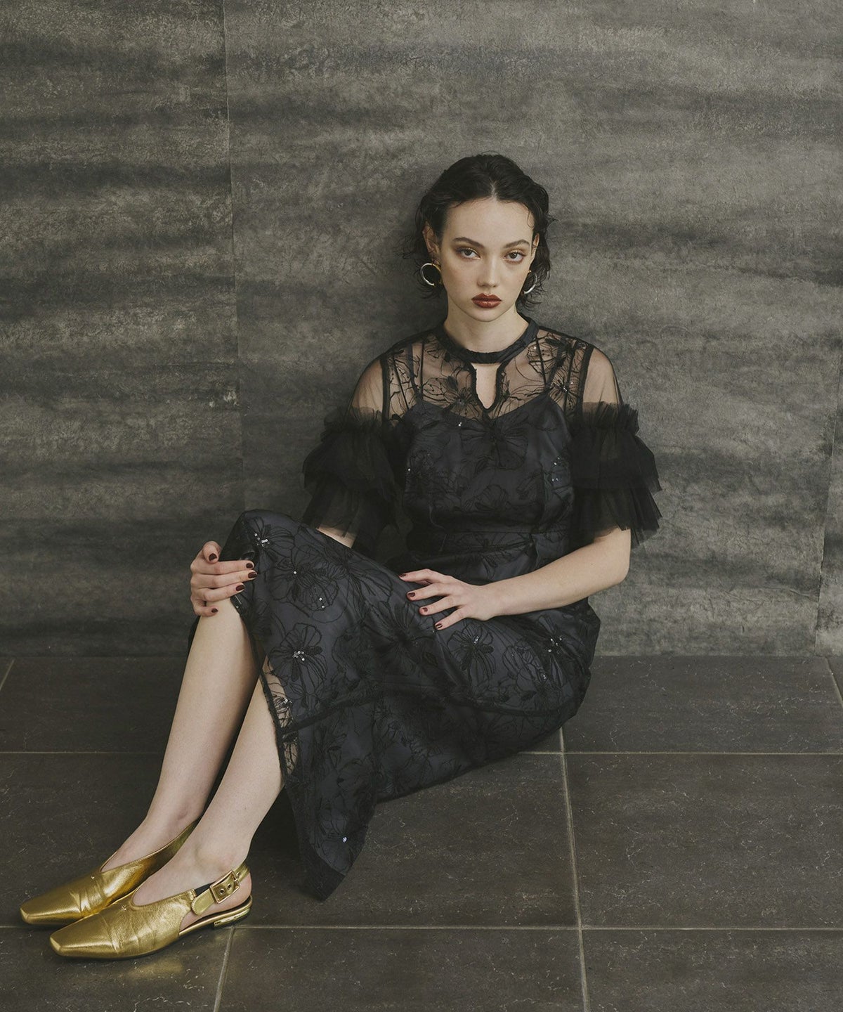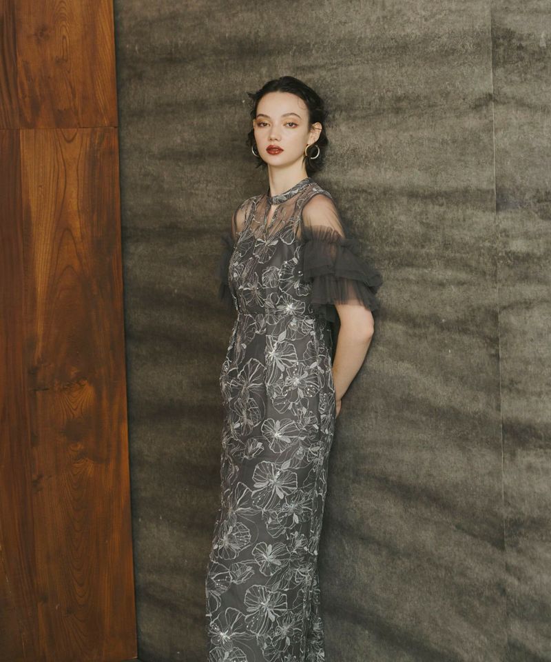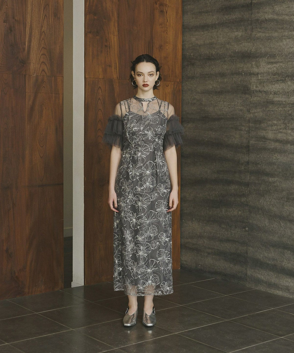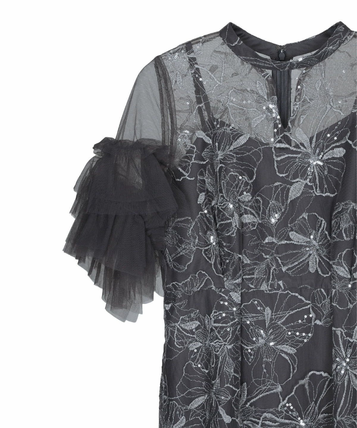 繊細なチュールの上にトレンドのスパンコールをふんだんに使った刺繍を施した「the occasion dress」。