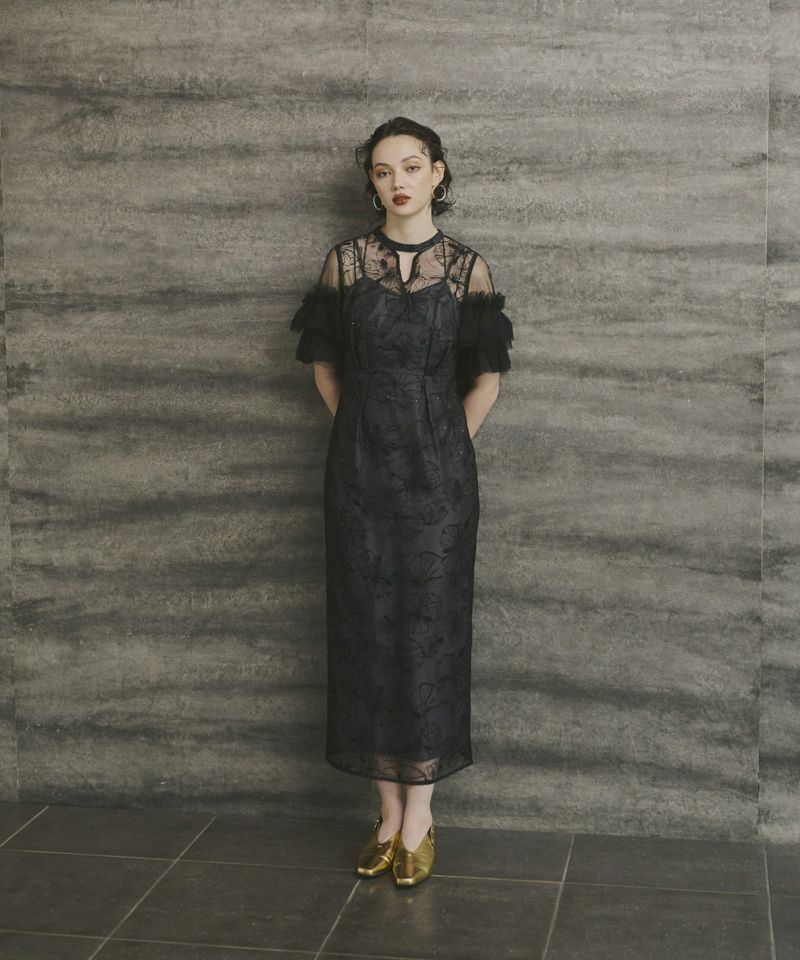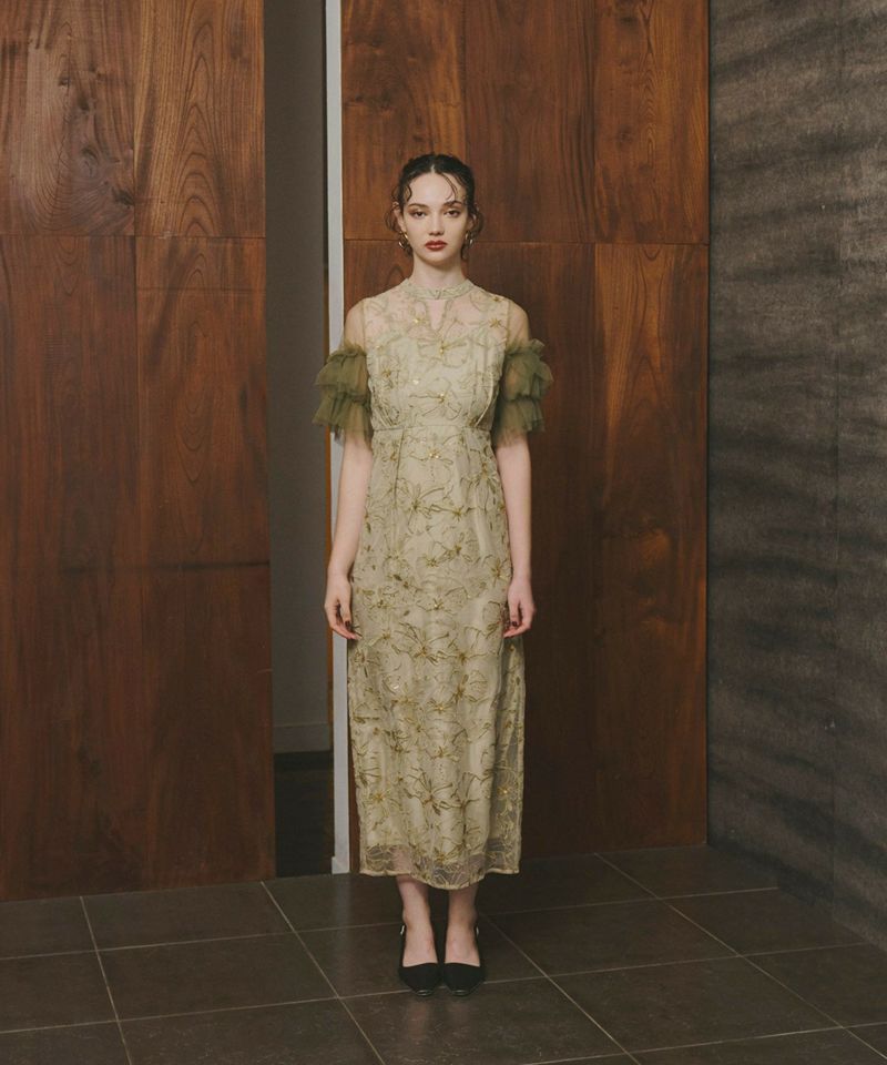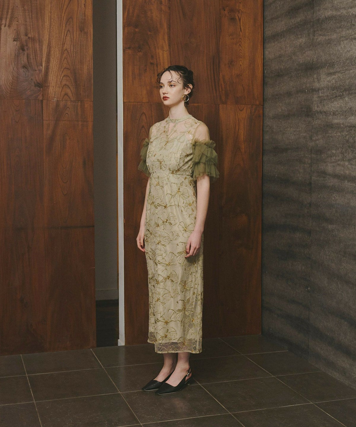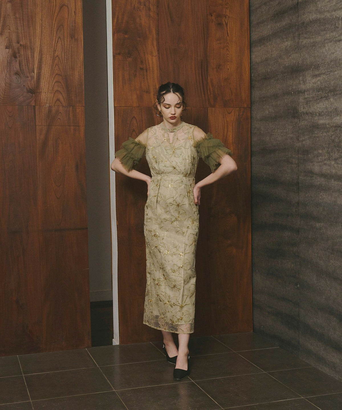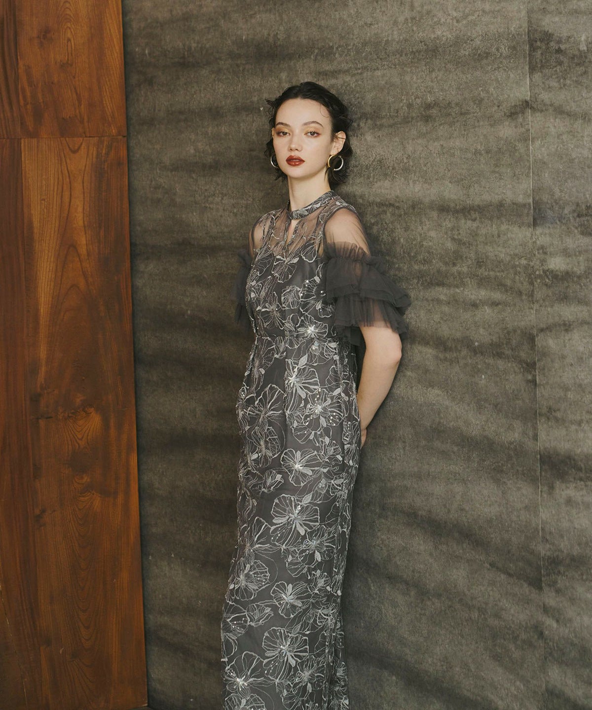 繊細なチュールの上にトレンドのスパンコールをふんだんに使った刺繍を施した「the occasion dress」。