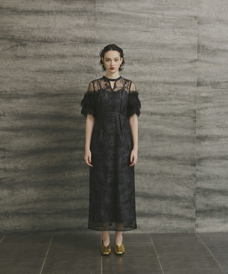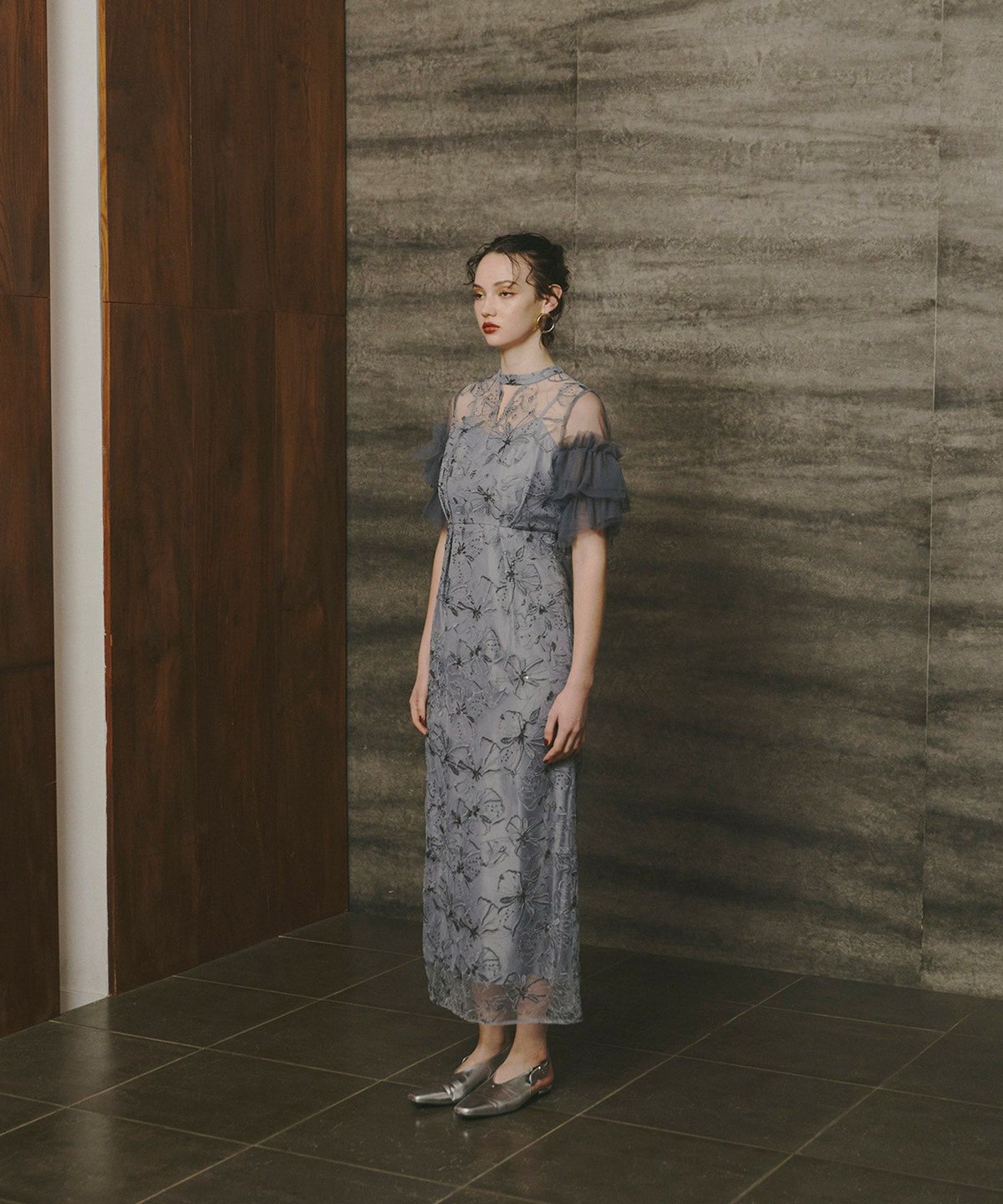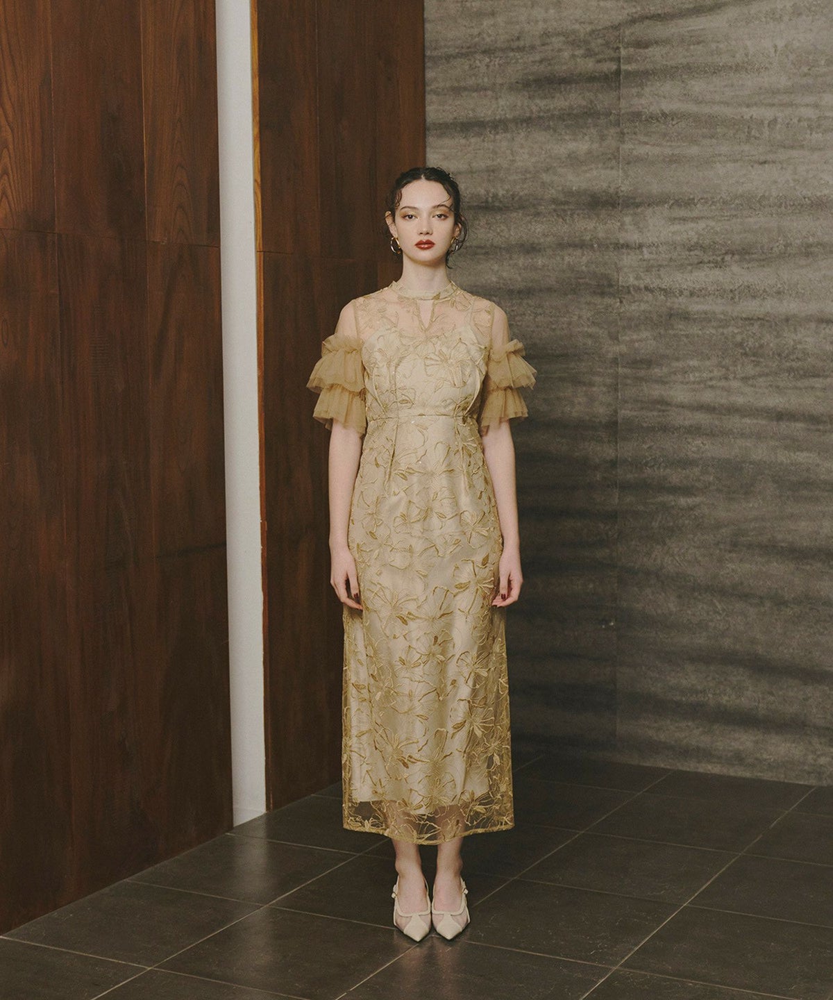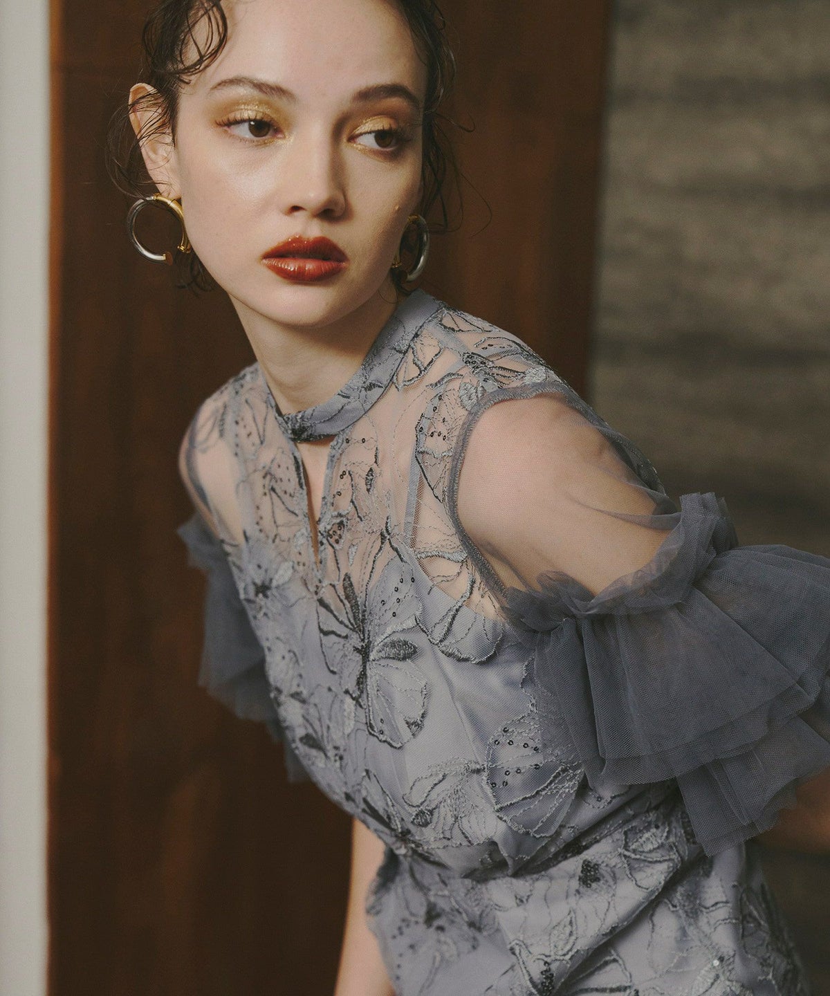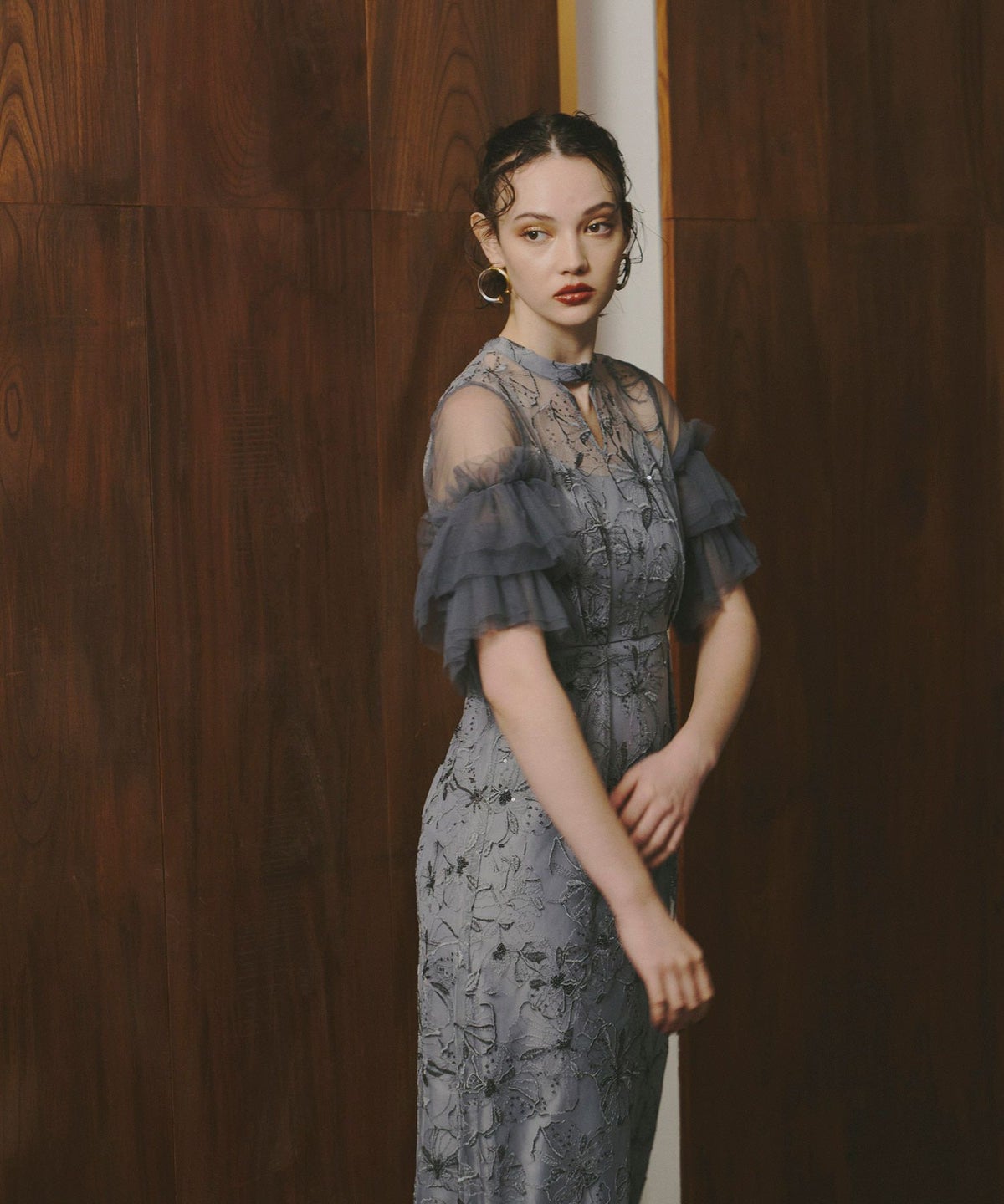 繊細なチュールの上にトレンドのスパンコールをふんだんに使った刺繍を施した「the occasion dress」。