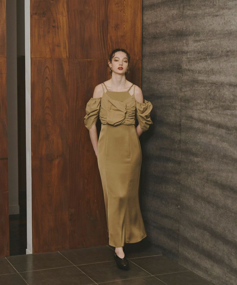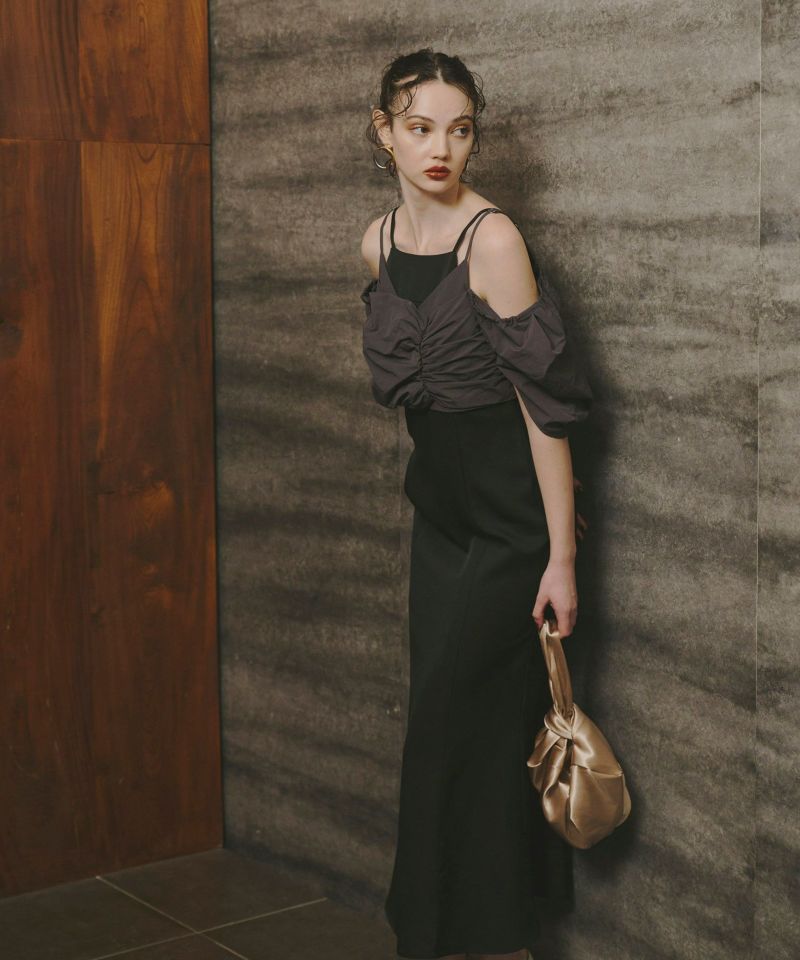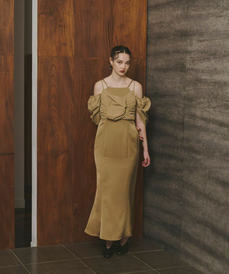 マーメイドラインでありながら広がり過ぎないシルエットを採用し、ANDRESDらしいモードっぽさをプラス。