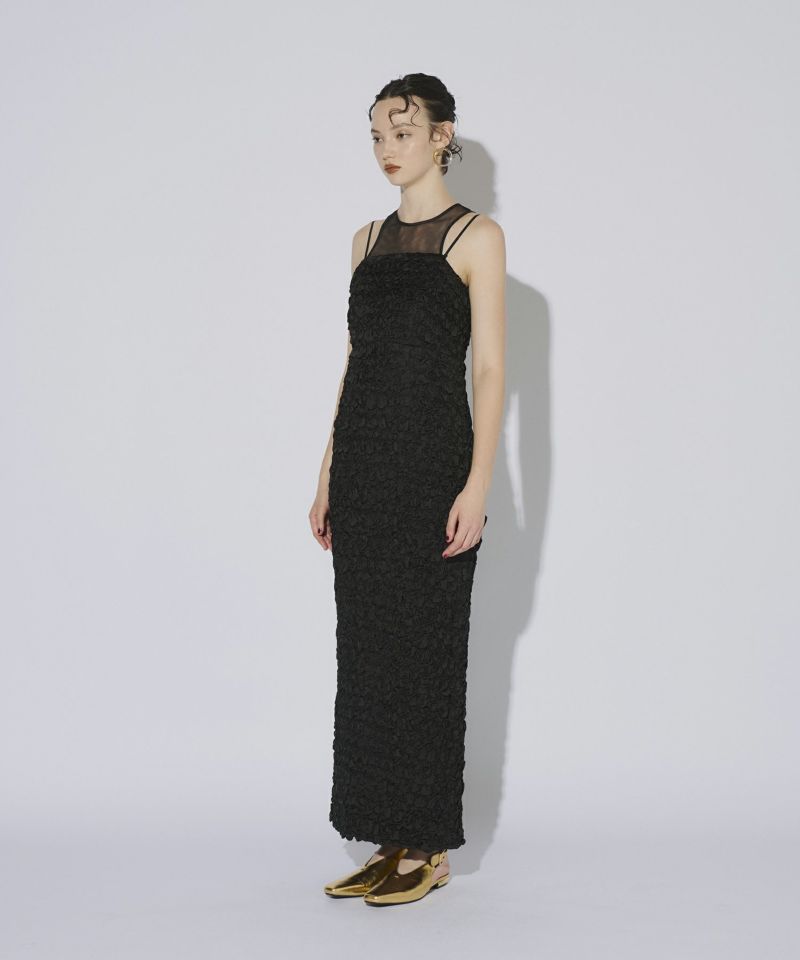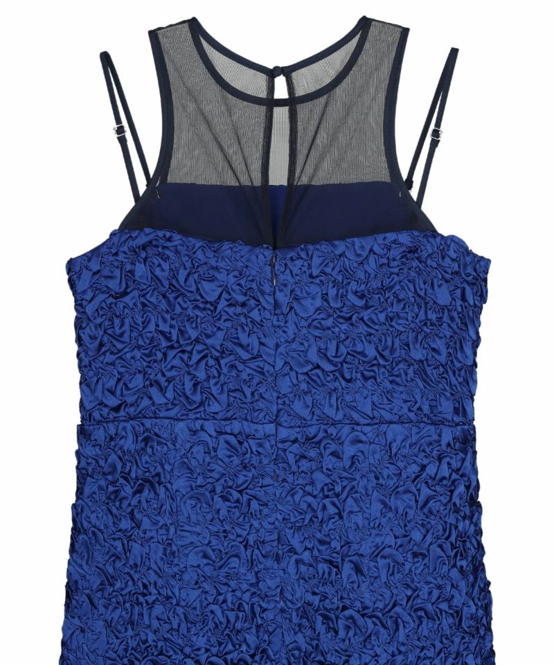 ヨーク部分には繊細なチュール素材を使用し、透け感がエッジを効かせています。
