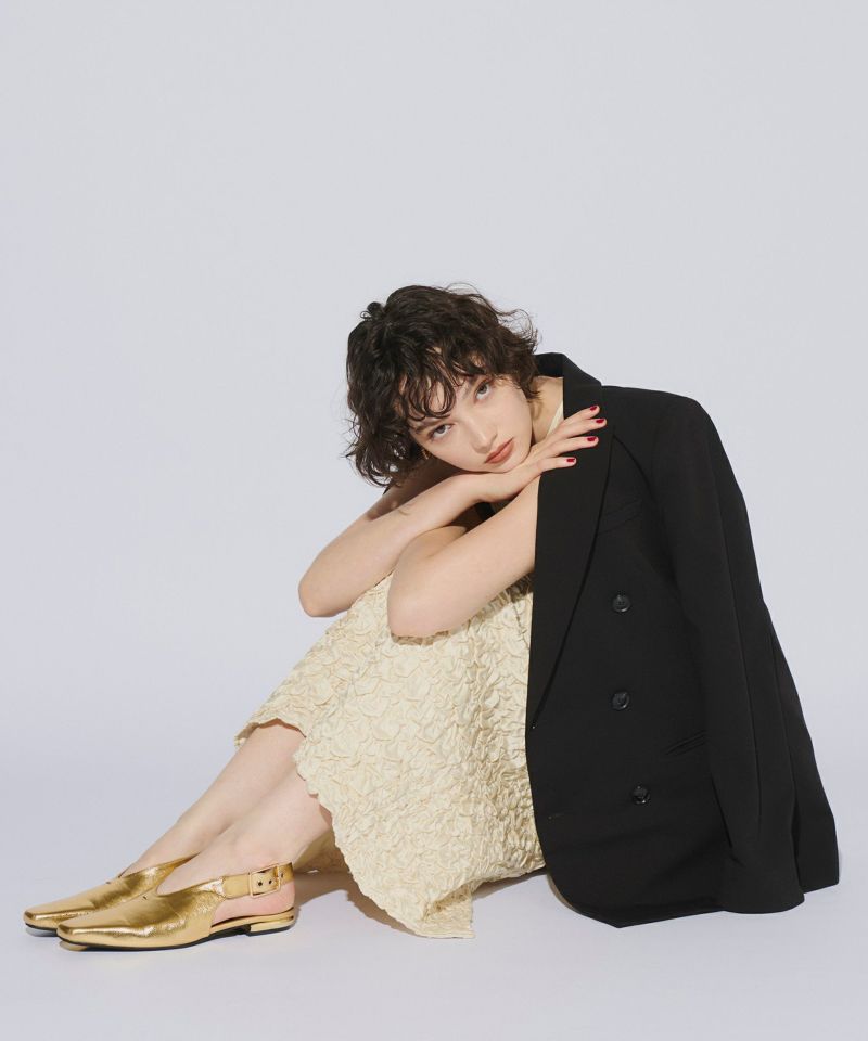 トレンドのアメスリ仕立てと他にはないシャーリング素材が、シンプルでありながら個性的なスタイルを演出します。