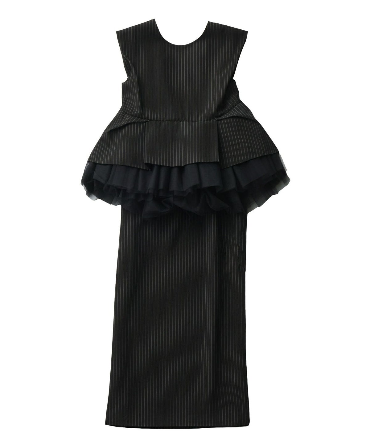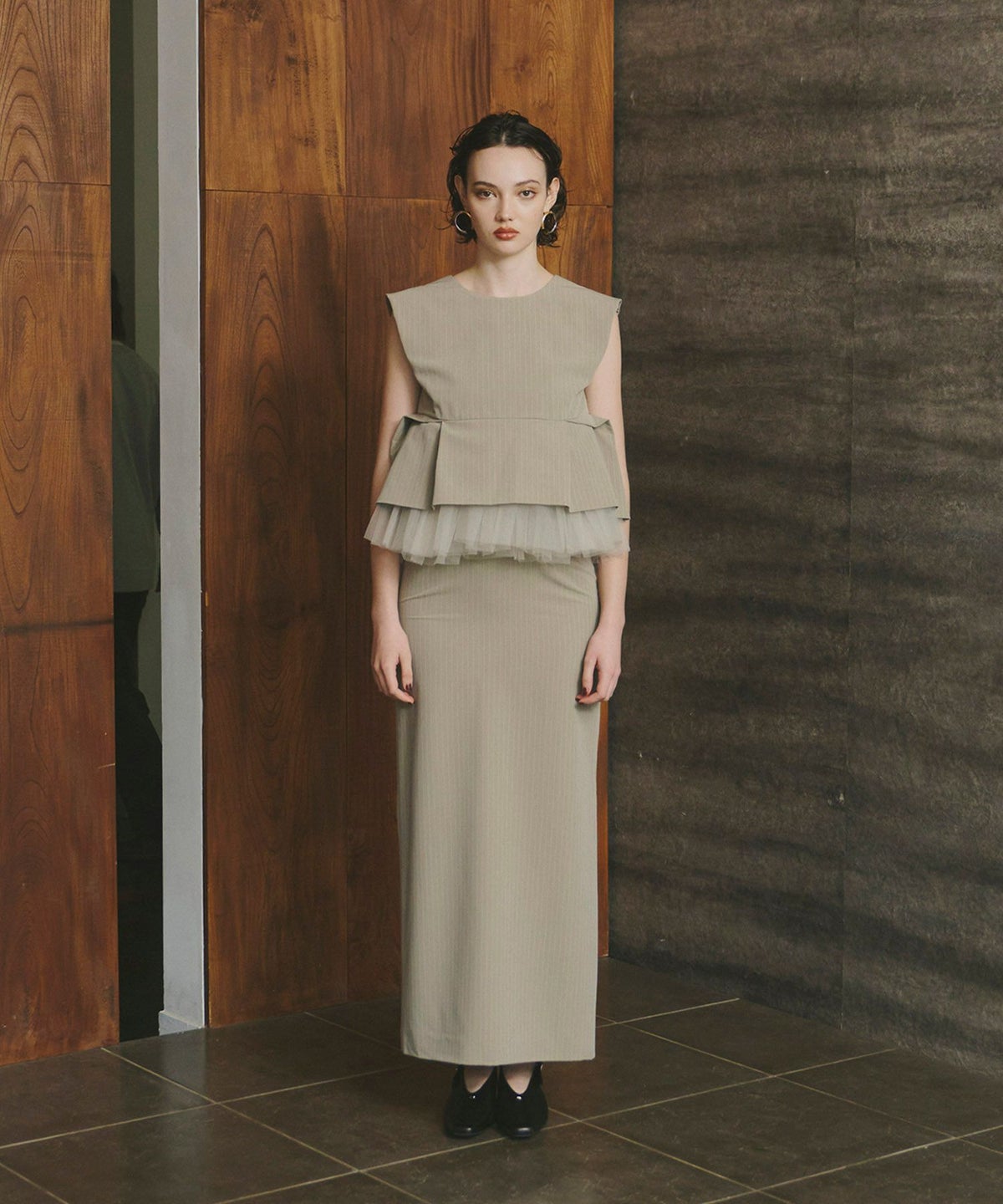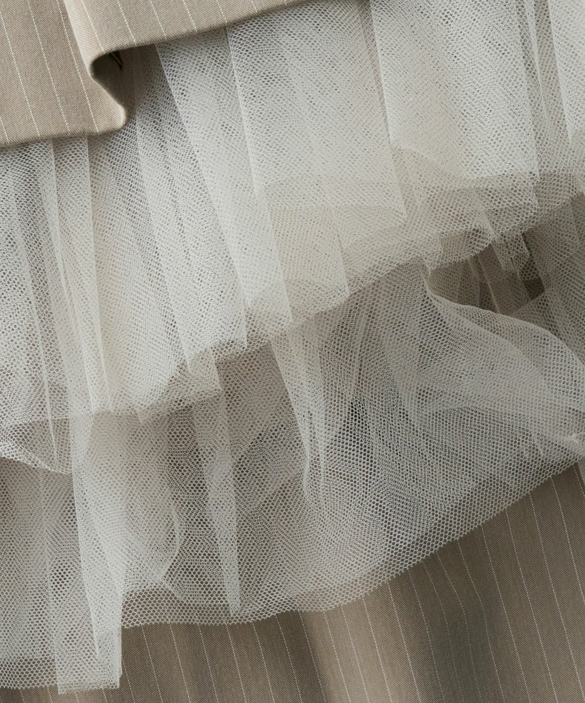 ハリ感のあるチュールを使用し、ペプラムデザインにはボリュームを。