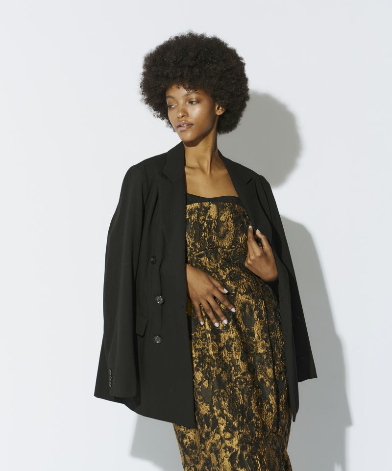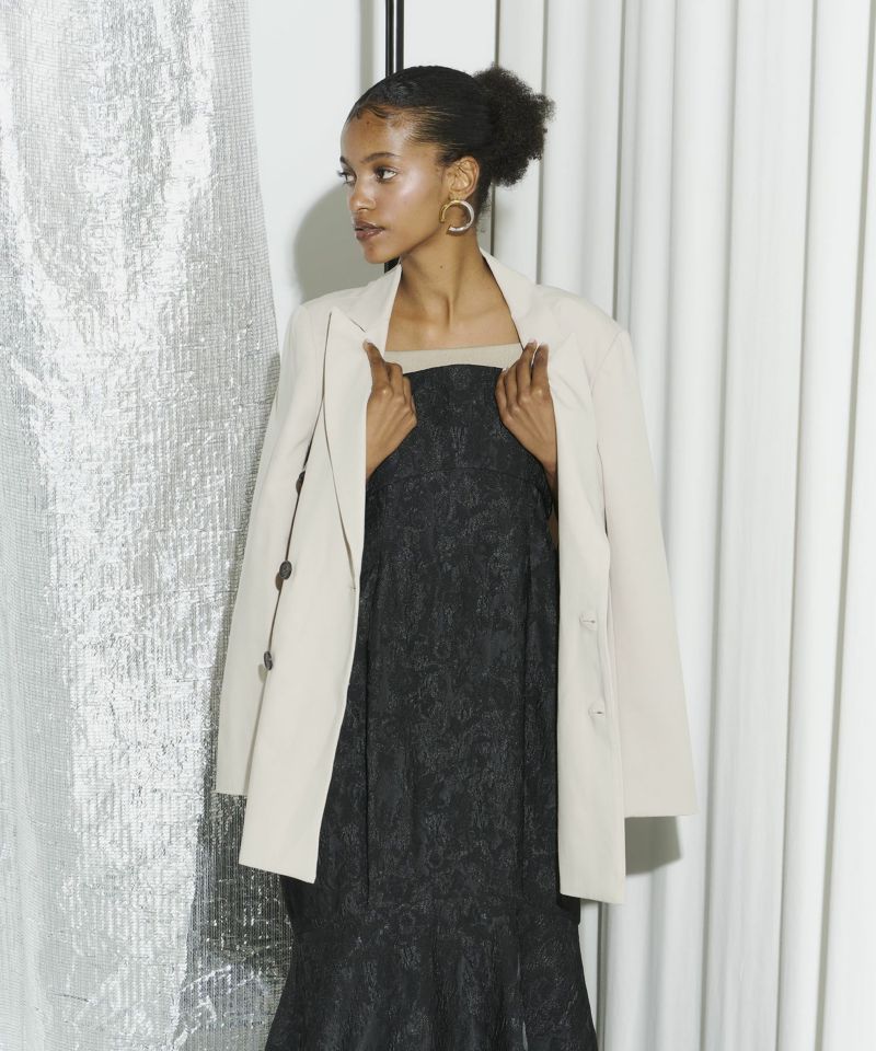 軽くハリのある生地を使用し、構築的なデザインに仕立てることで、体を包み込むようなシルエットの中にもくびれをしっかりと強調し、モードすぎずスタイリッシュなバランスを叶えました。