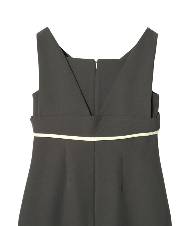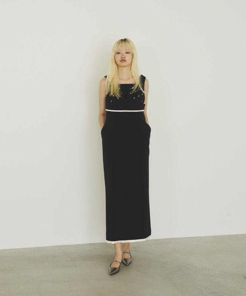 ビスチェ・ワンピ―スともに裾から覗くサテンの光沢が、ドレッシーで艶っぽいアクセントとして、全体の雰囲気を引き上げる。