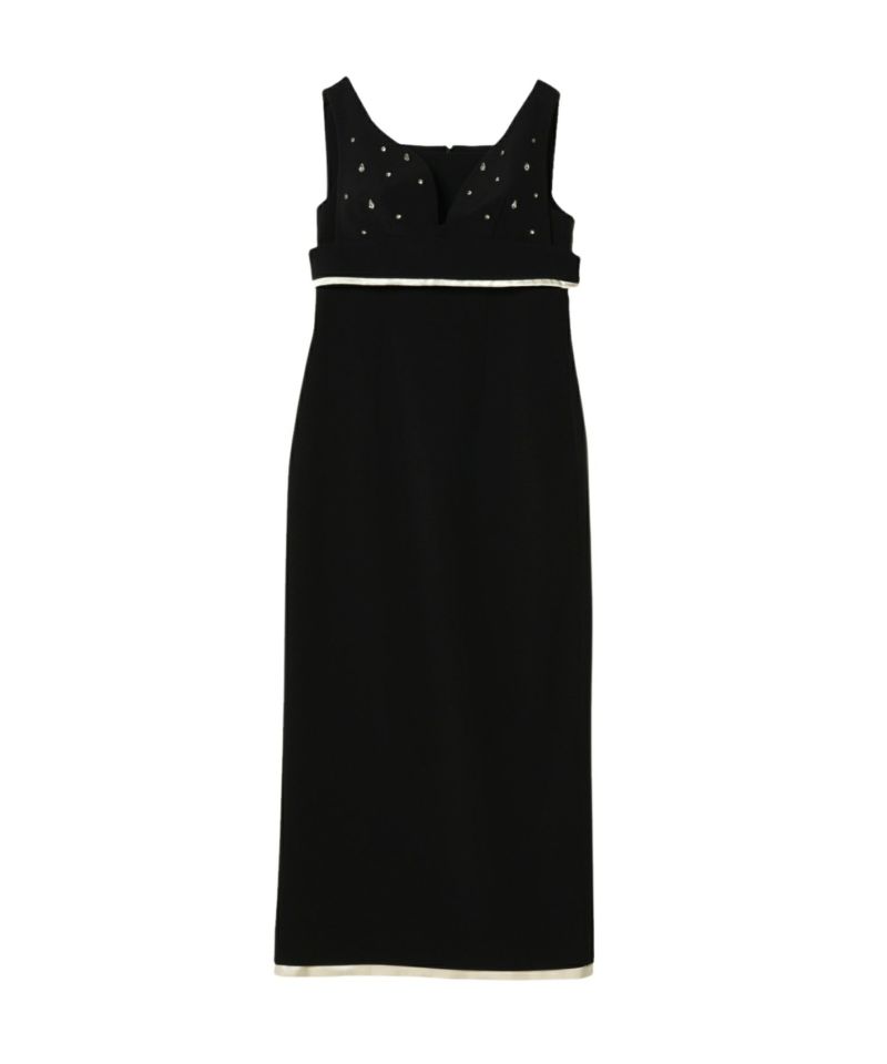雨粒がこぼれたような煌めきが印象的な、しずく型のビジューが目を惹くビスチェとワンピースのセットドレス。