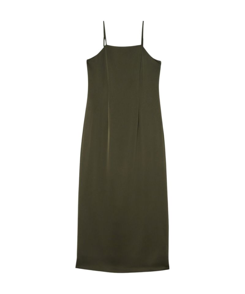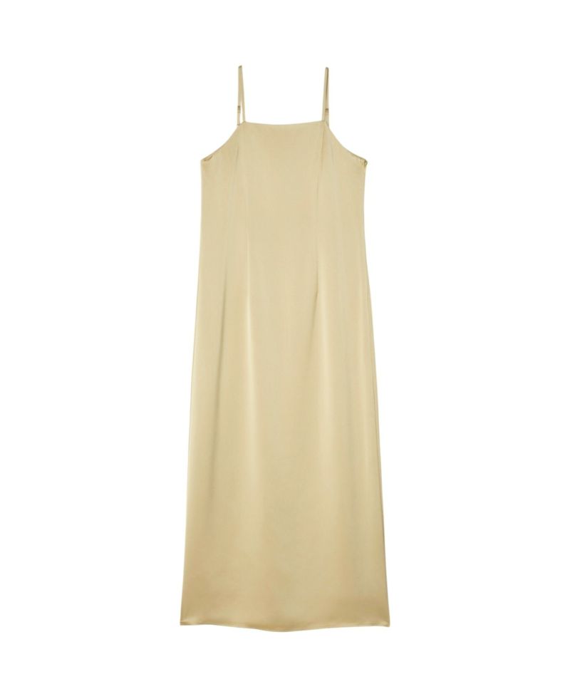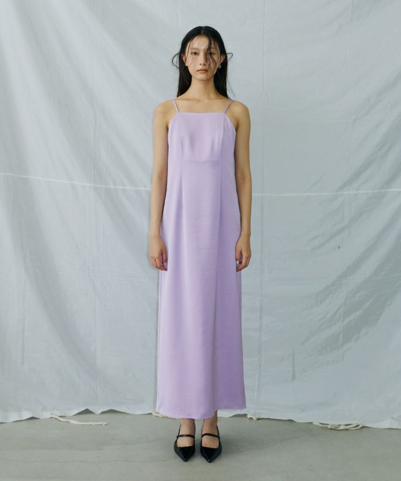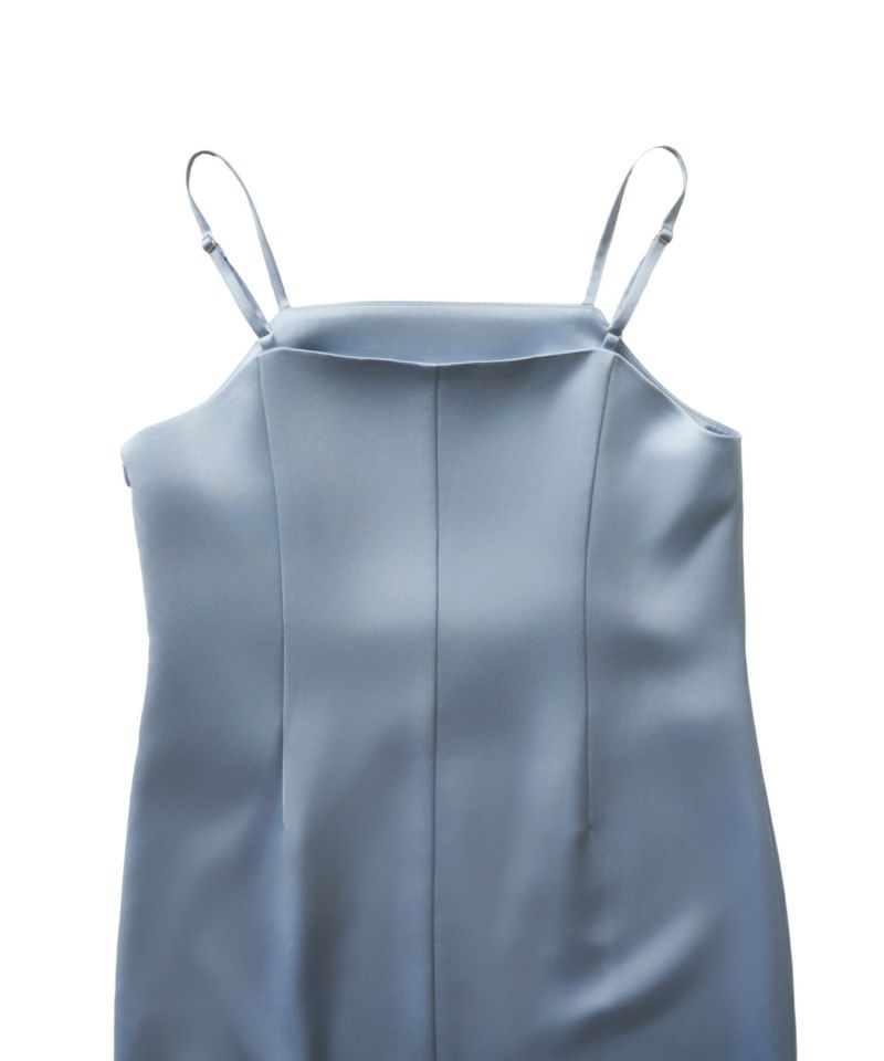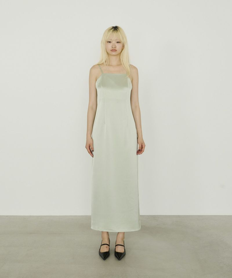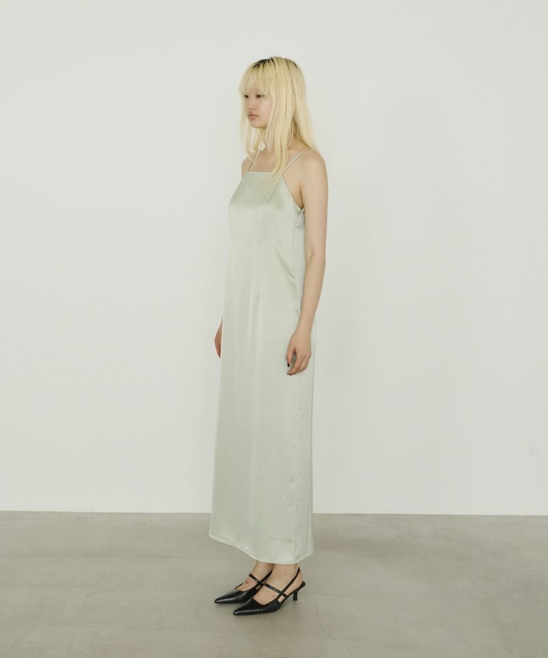 上品な光沢のダブルサテンで仕立てたキャミドレス。