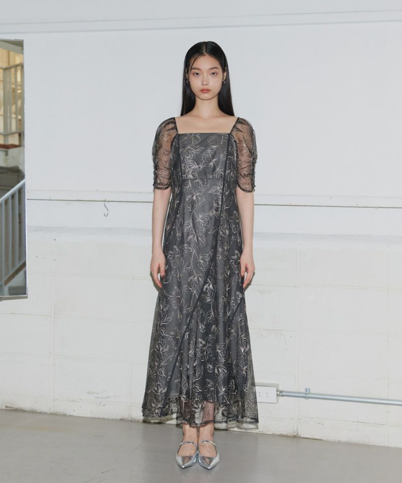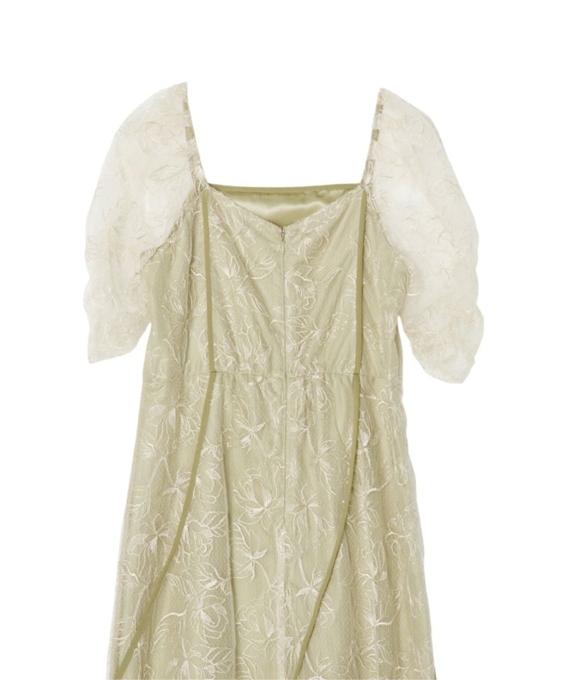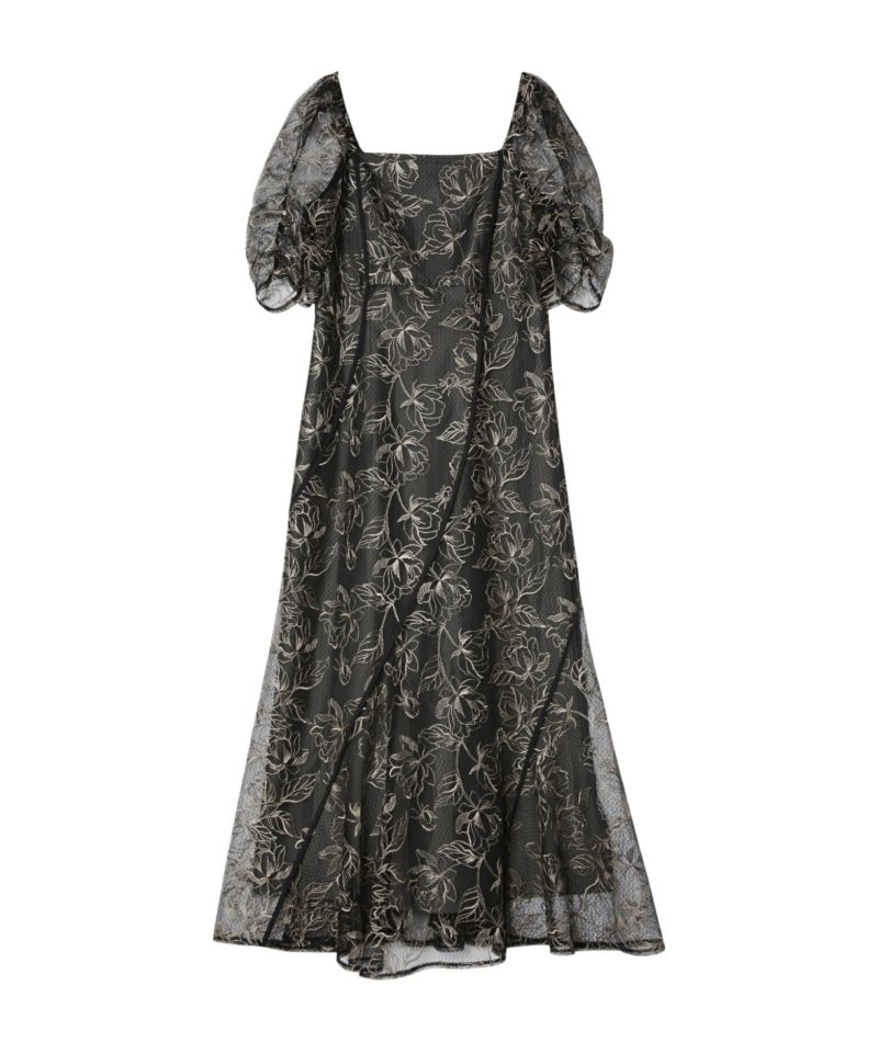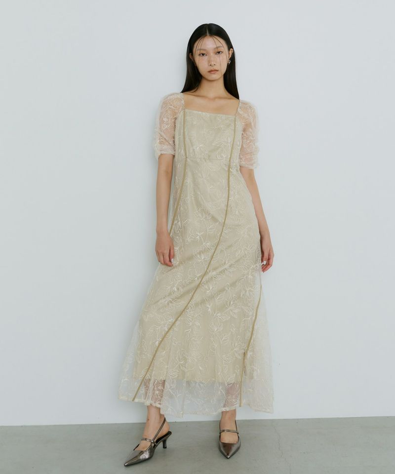 線画調の繊細なフラワー刺繍と軽やかな素材感で