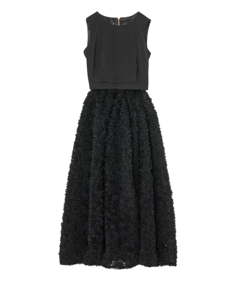 デザイン性を重視した贅沢な素材を使用しております。素材の特性上チュールの繊維が落ち易いですが、製品上の問題はございません。
