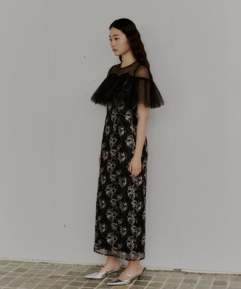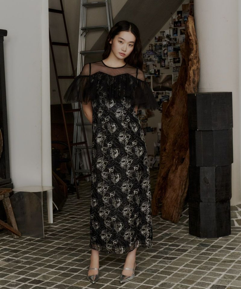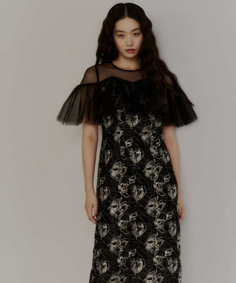 みんなが好きそうな刺繍とチュールの王道フェミニンドレスです♡