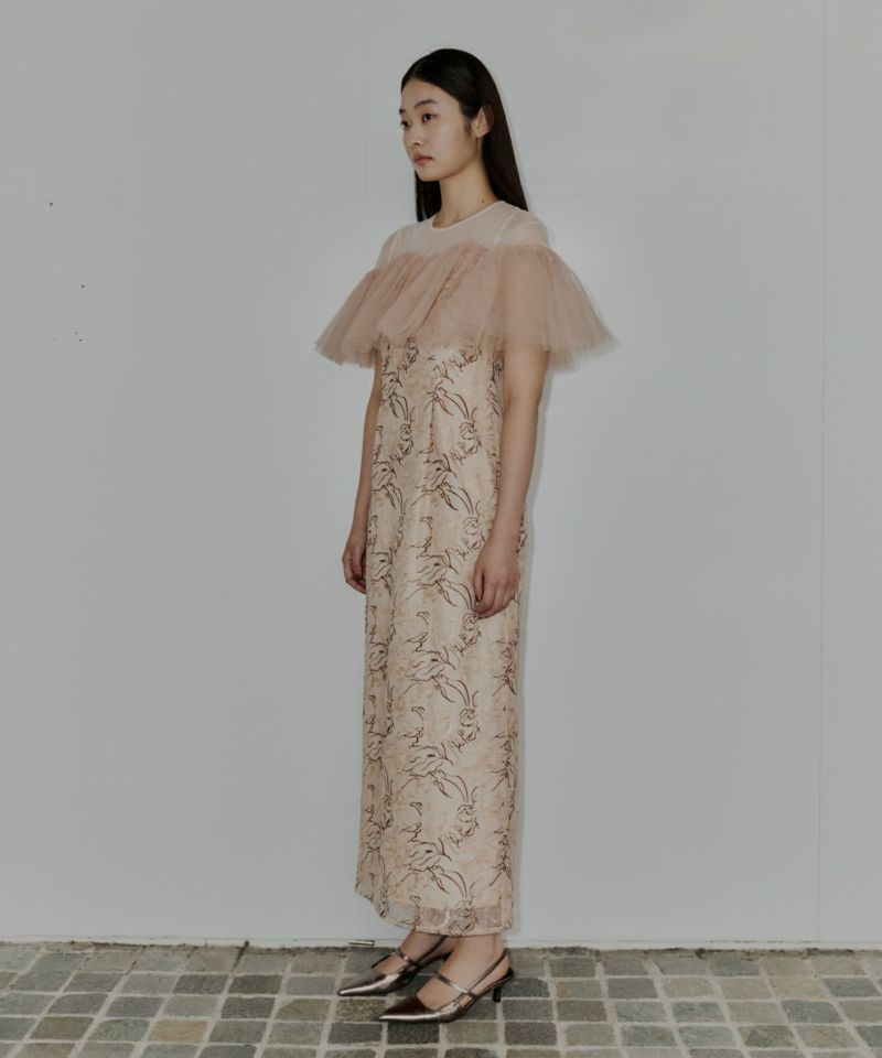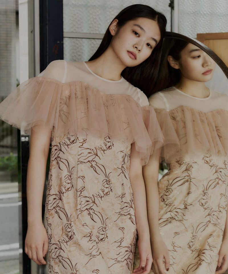 微細な色差のチュールを重ねることで奥行きのあるニュアンスを表現。