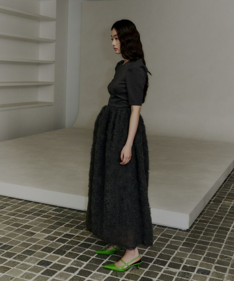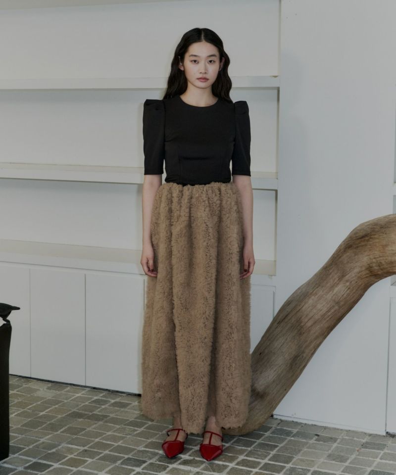もともとはノースリーブタイプとセットだった人気スカートに、「袖ありが欲しい!」という声からアップデートしたデザインです。