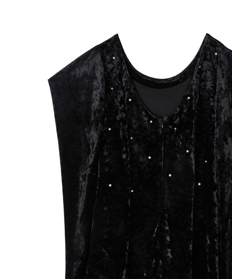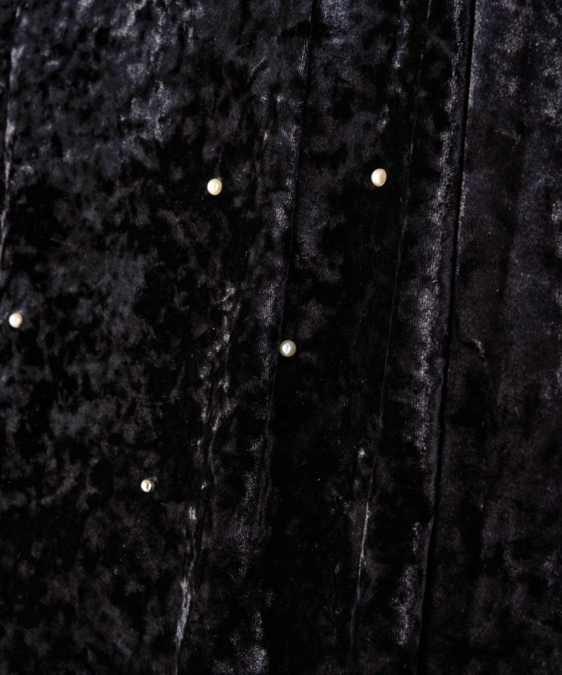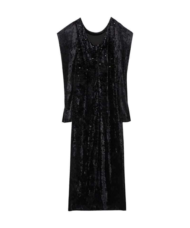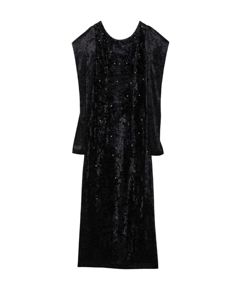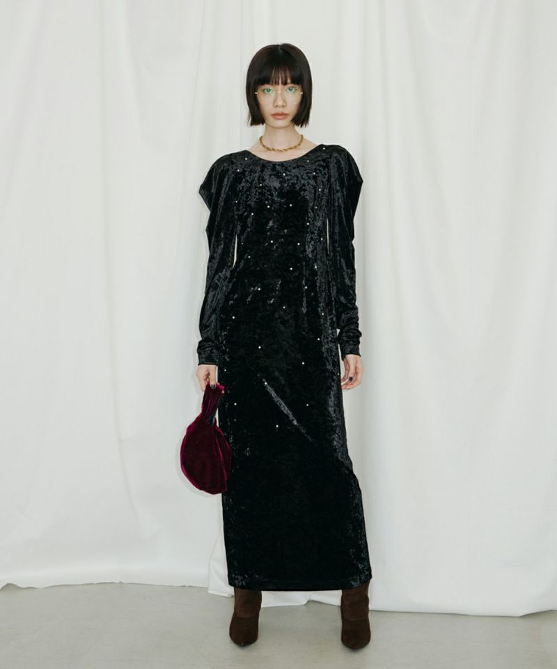 ベロア独特の柔らかいドレープが女っぽさを残してくれる絶妙なバランスのワンピース。