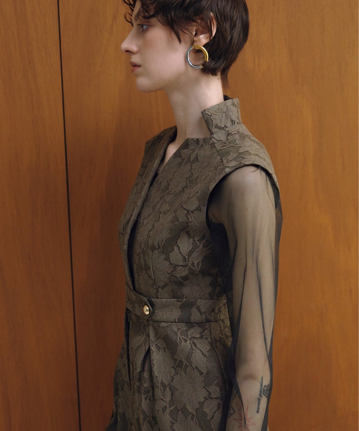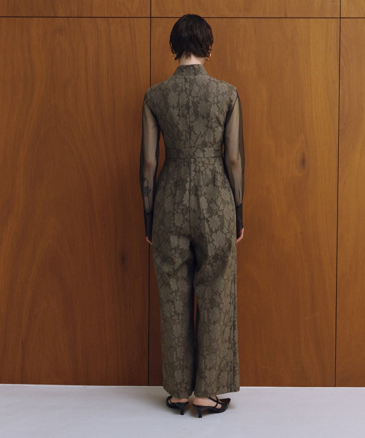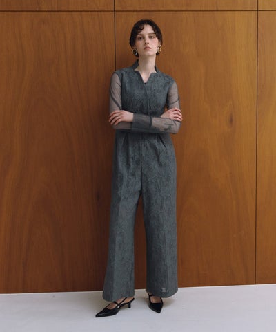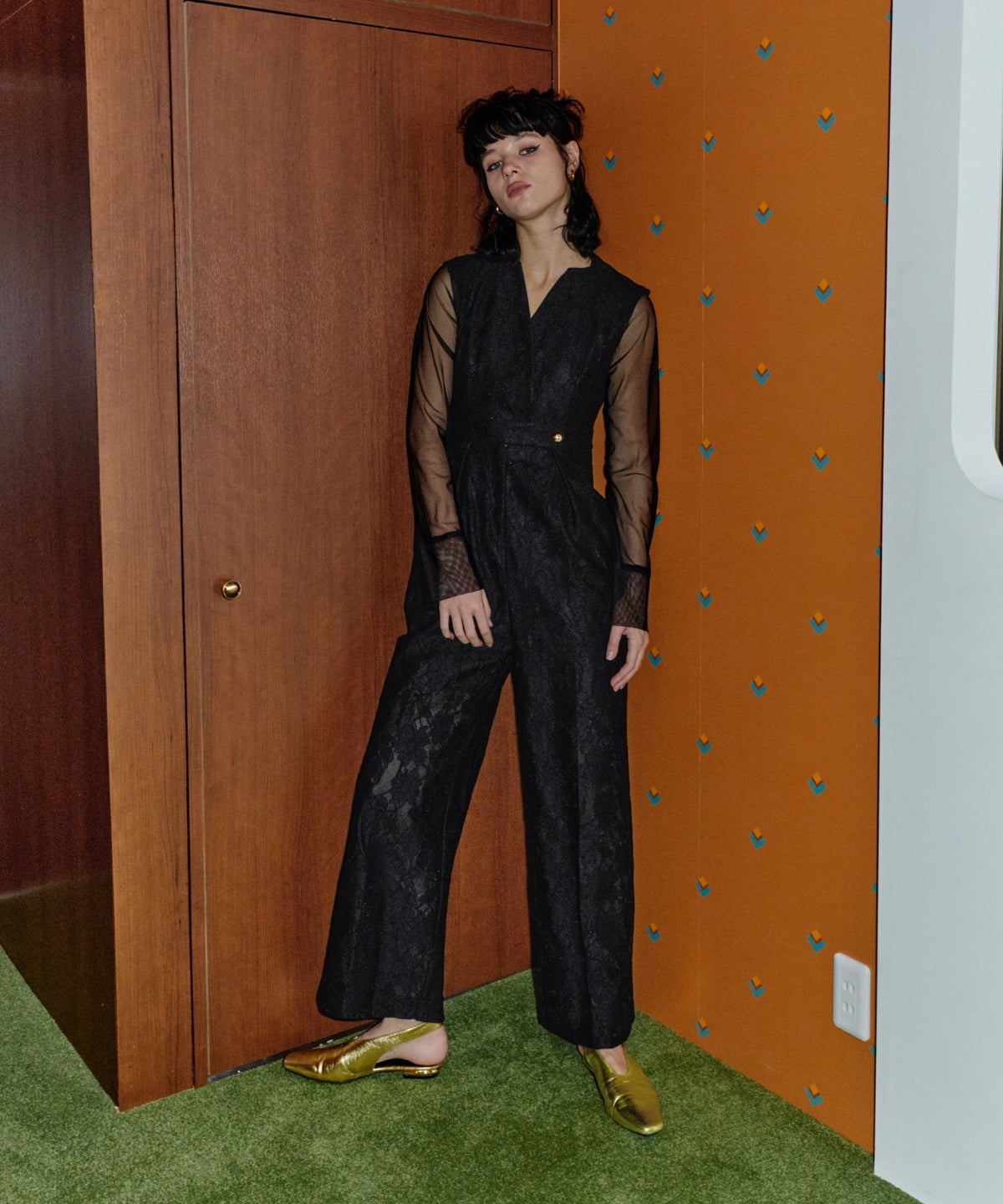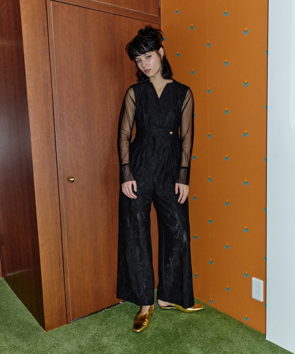 シャープな印象に仕上げるため、繊細すぎない程よい存在感のレースにこだわったオールインワン。