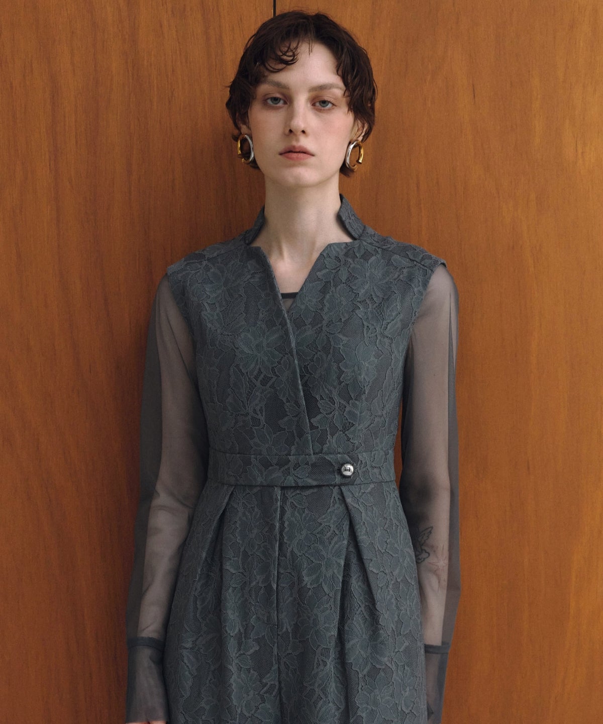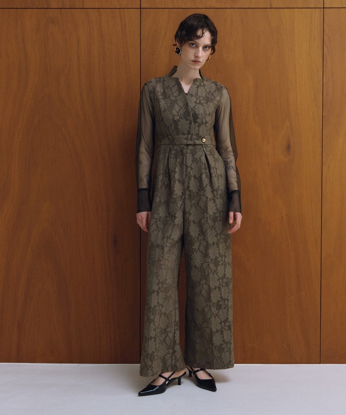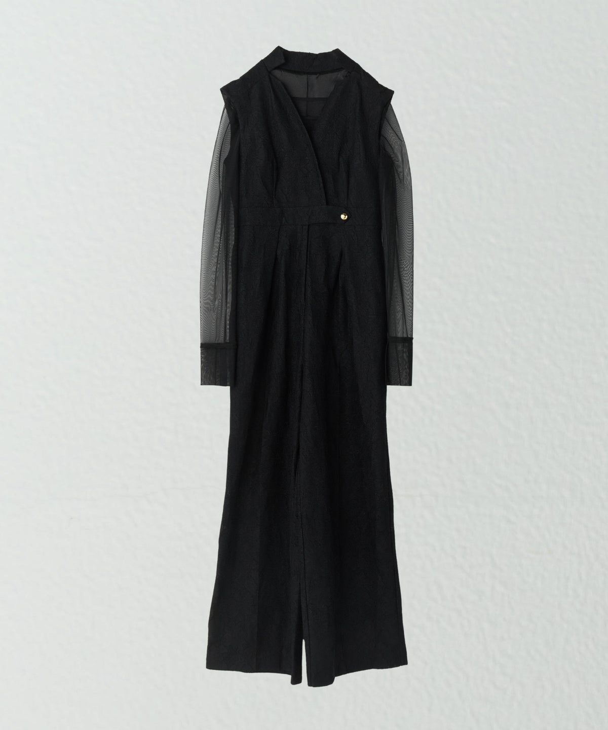 シャープな印象に仕上げるため、繊細すぎない程よい存在感のレースにこだわったオールインワン。