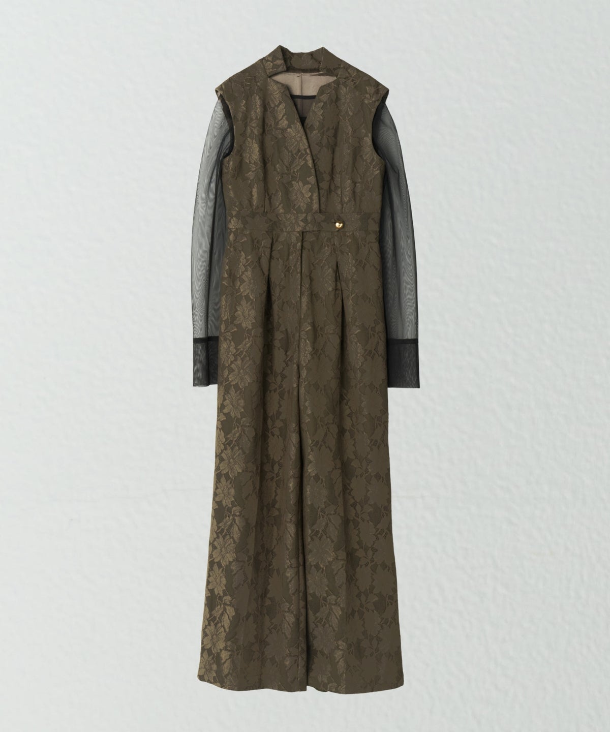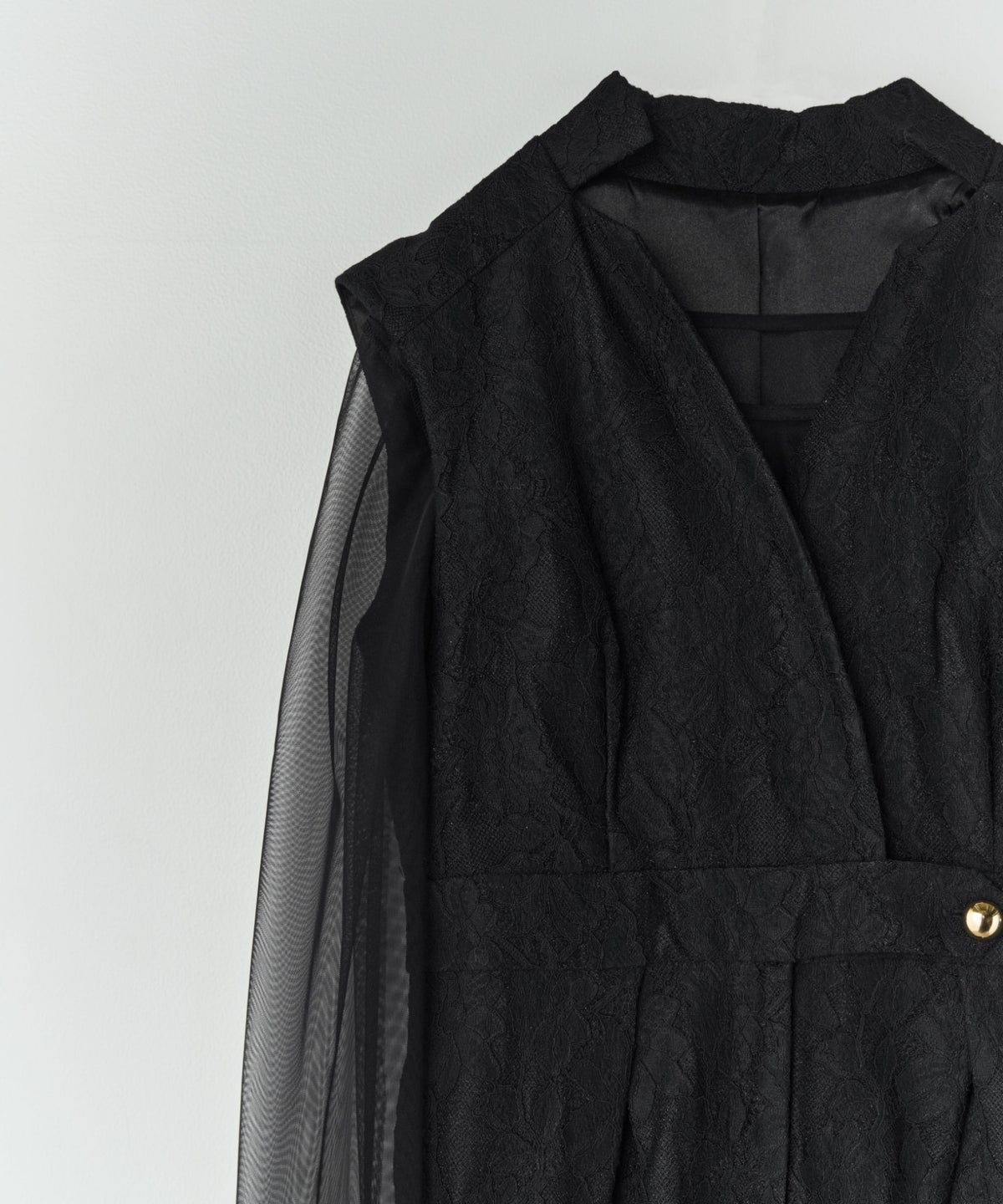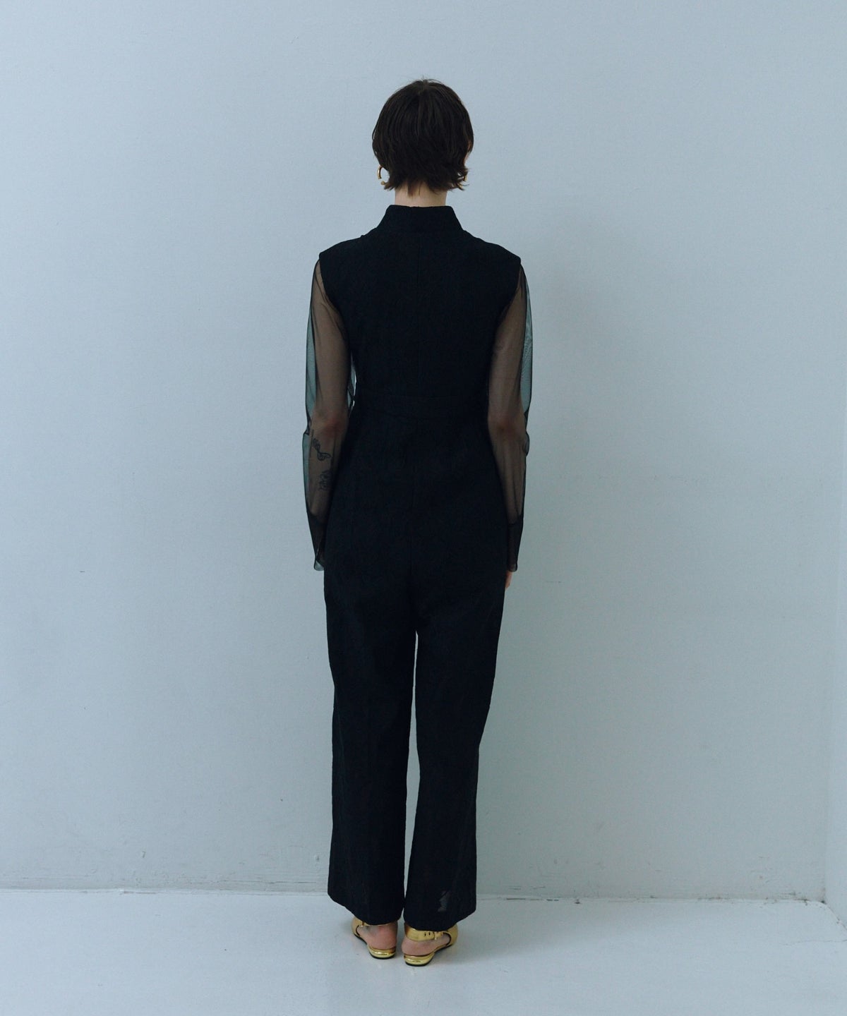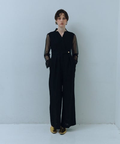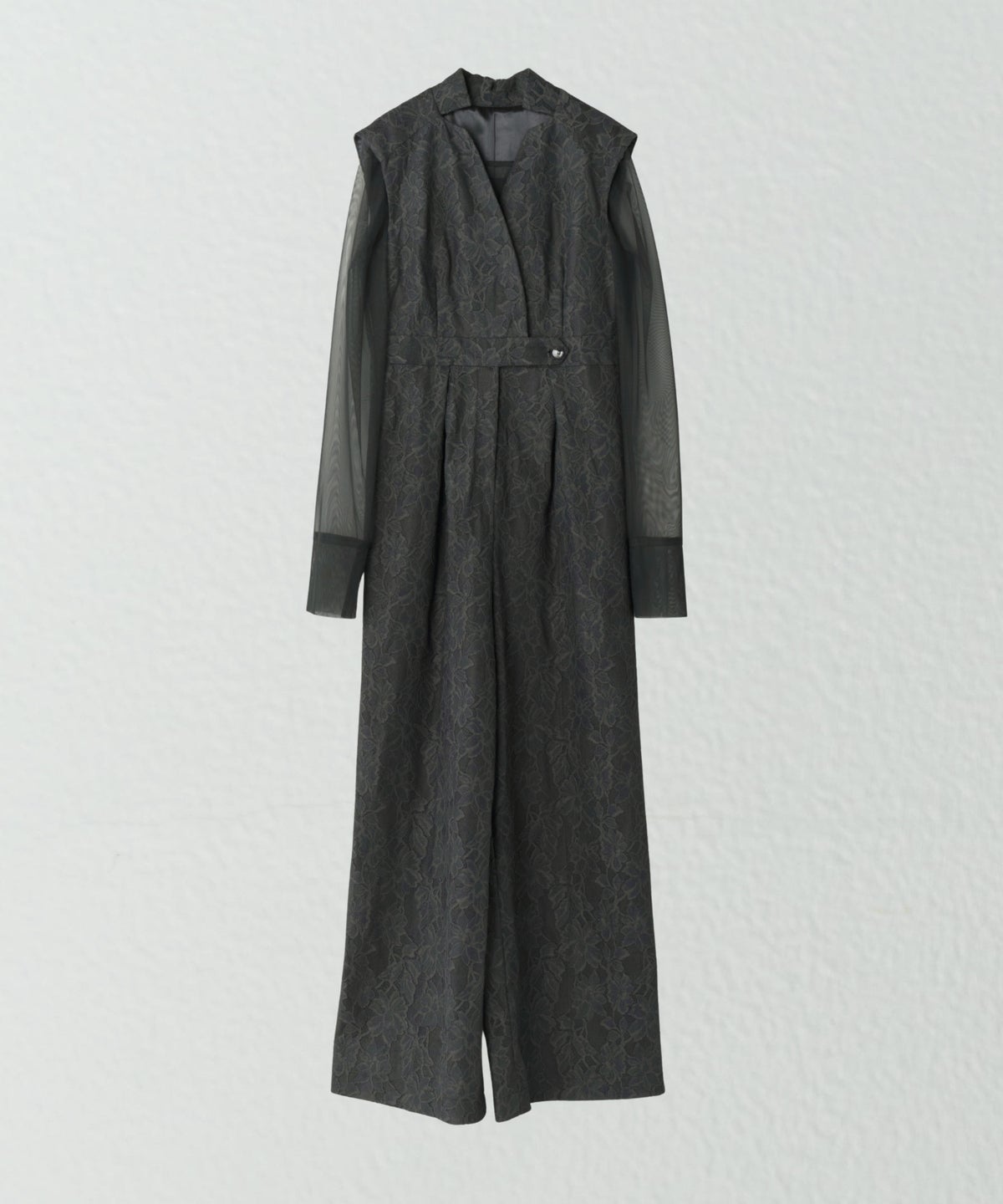 シャープな印象に仕上げるため、繊細すぎない程よい存在感のレースにこだわったオールインワン。