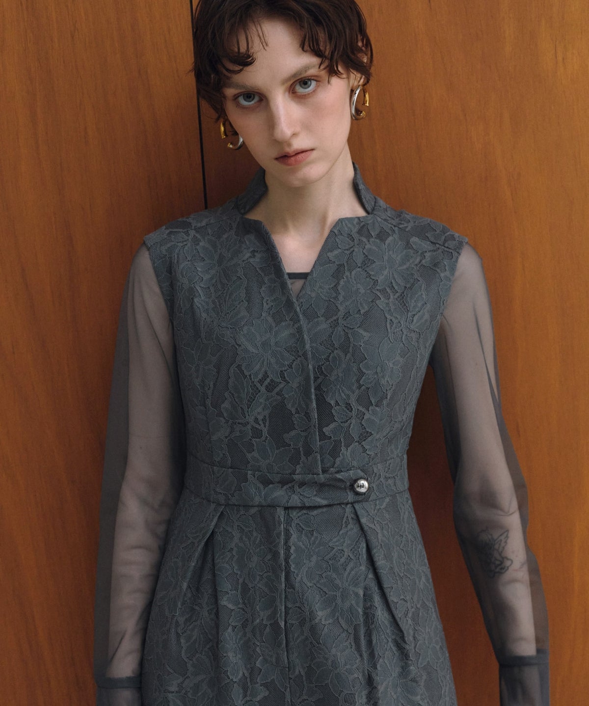レースの持つ華やかさと上品さをベースにディテールでエッジを効かせ、甘さを抑えたバランス感を追求しました。