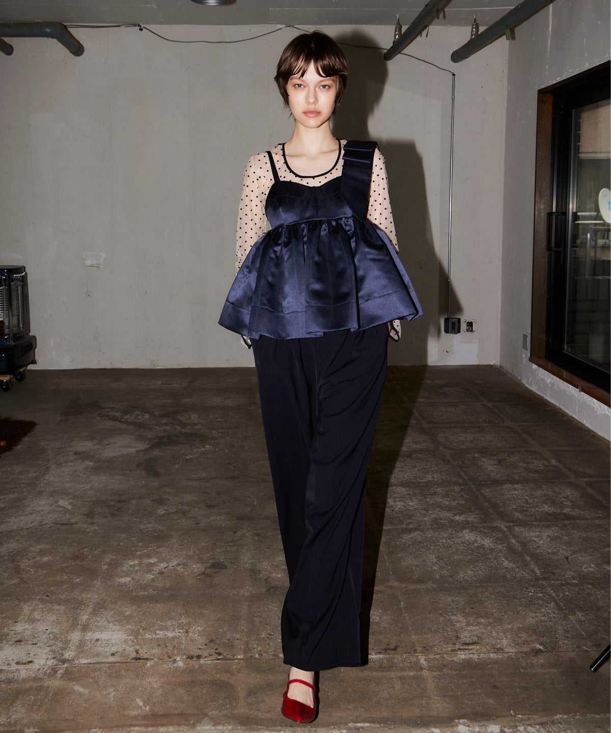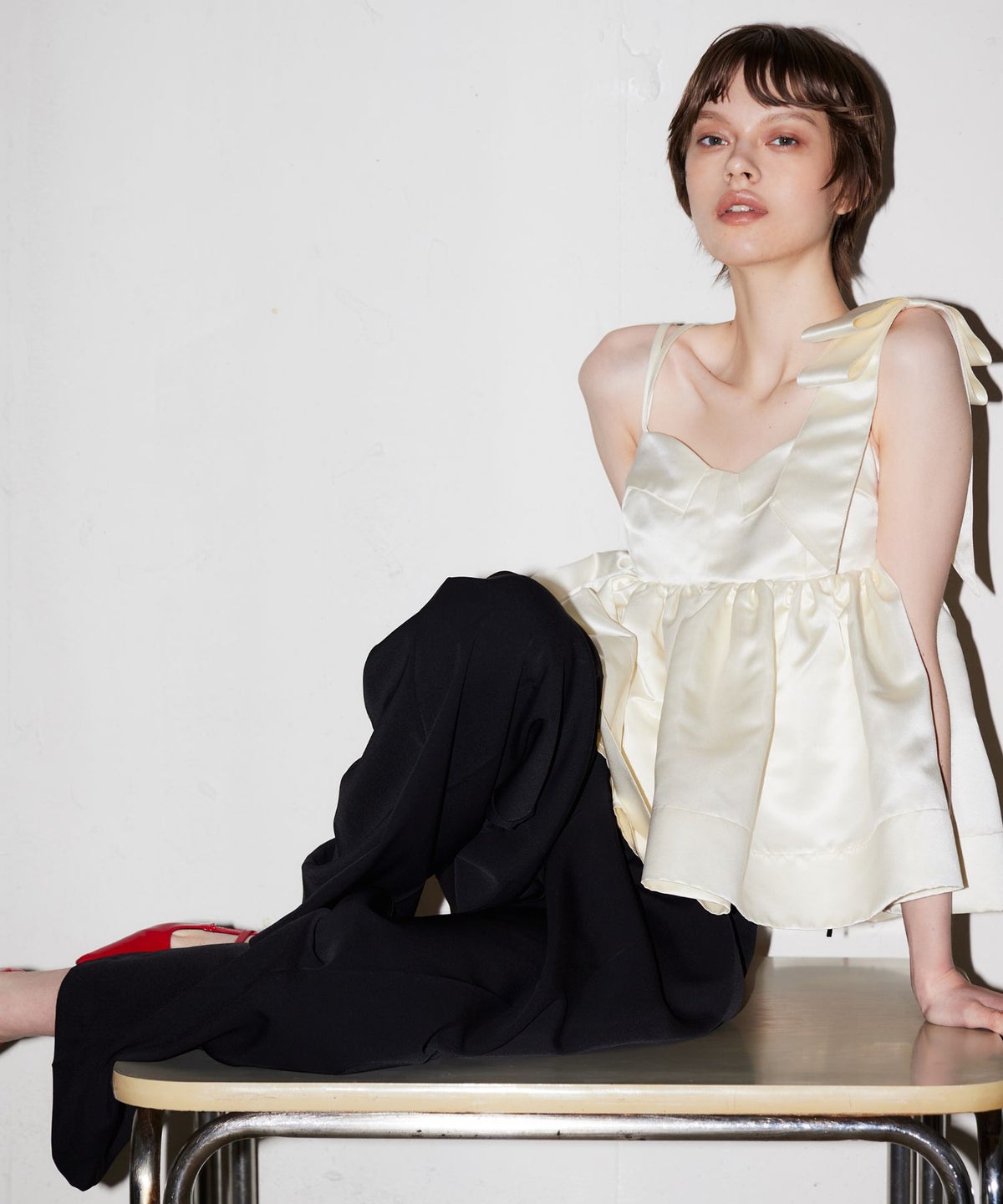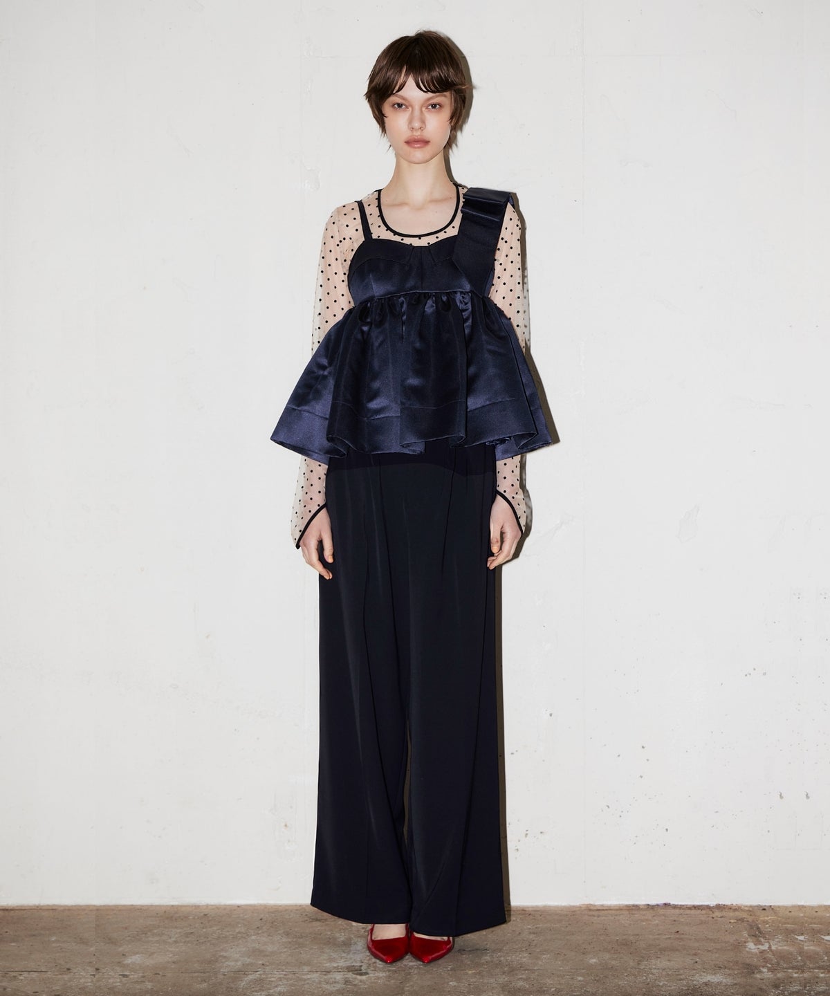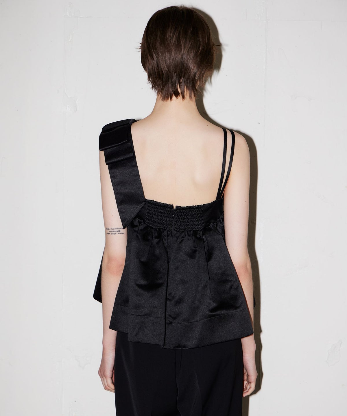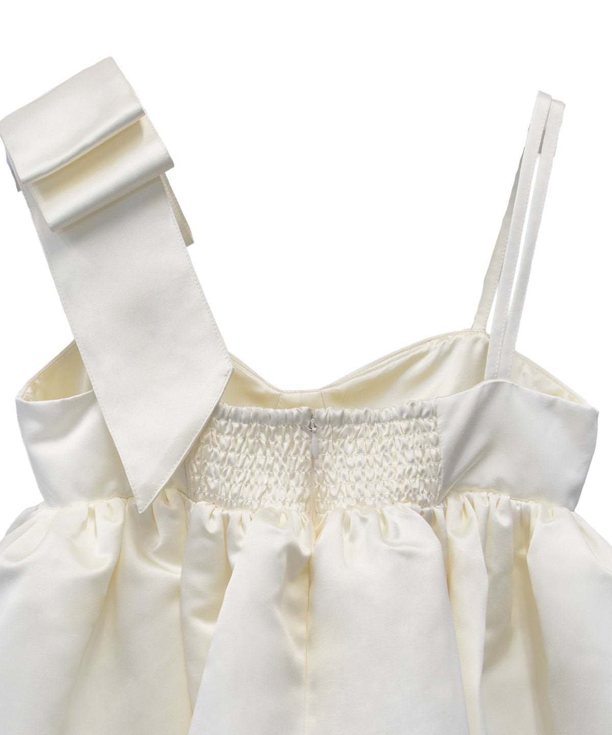 印象的な大胆ショルダーリボンは、アシンメトリーなバランスで甘さを抑えてANDRESDらしいバランスを。