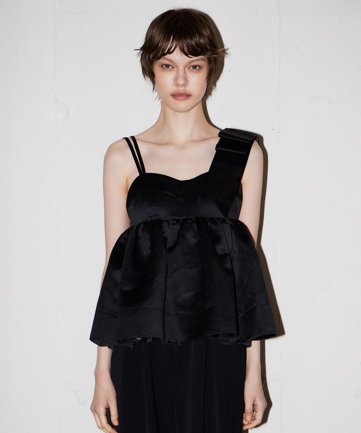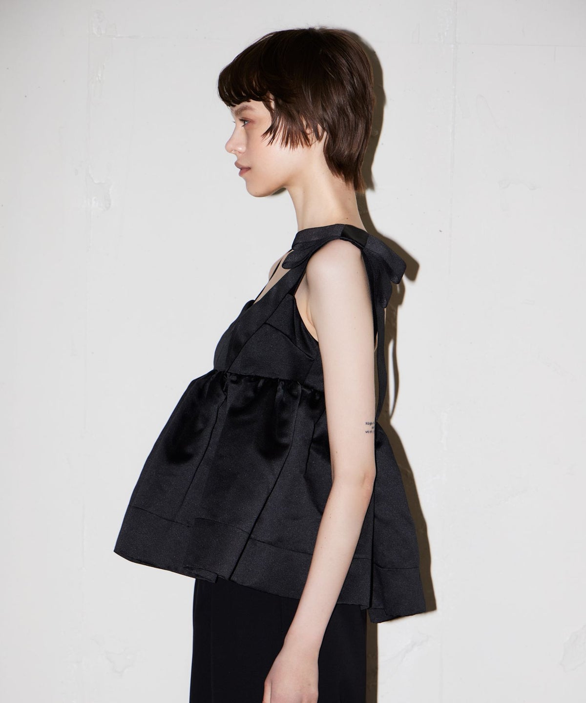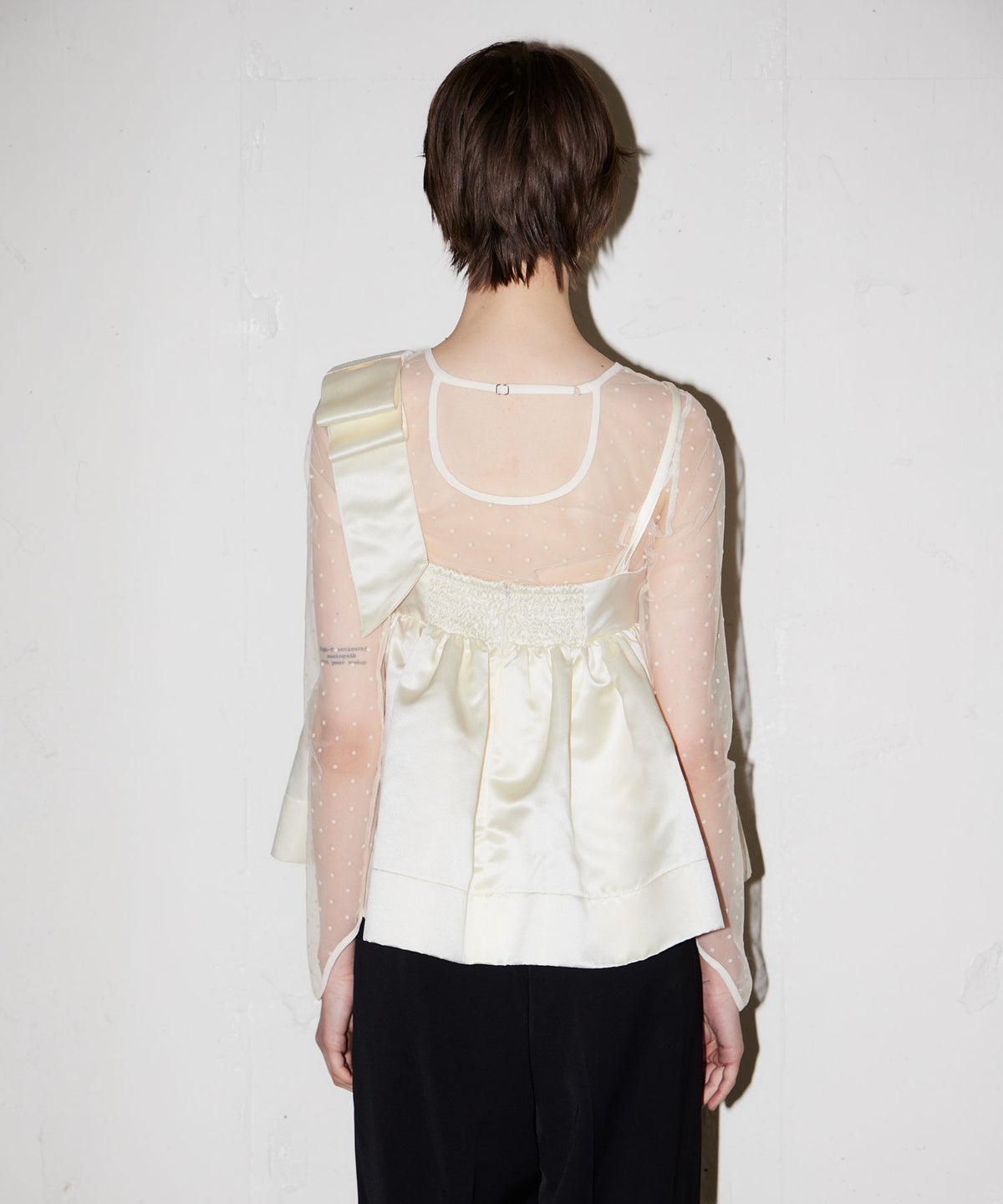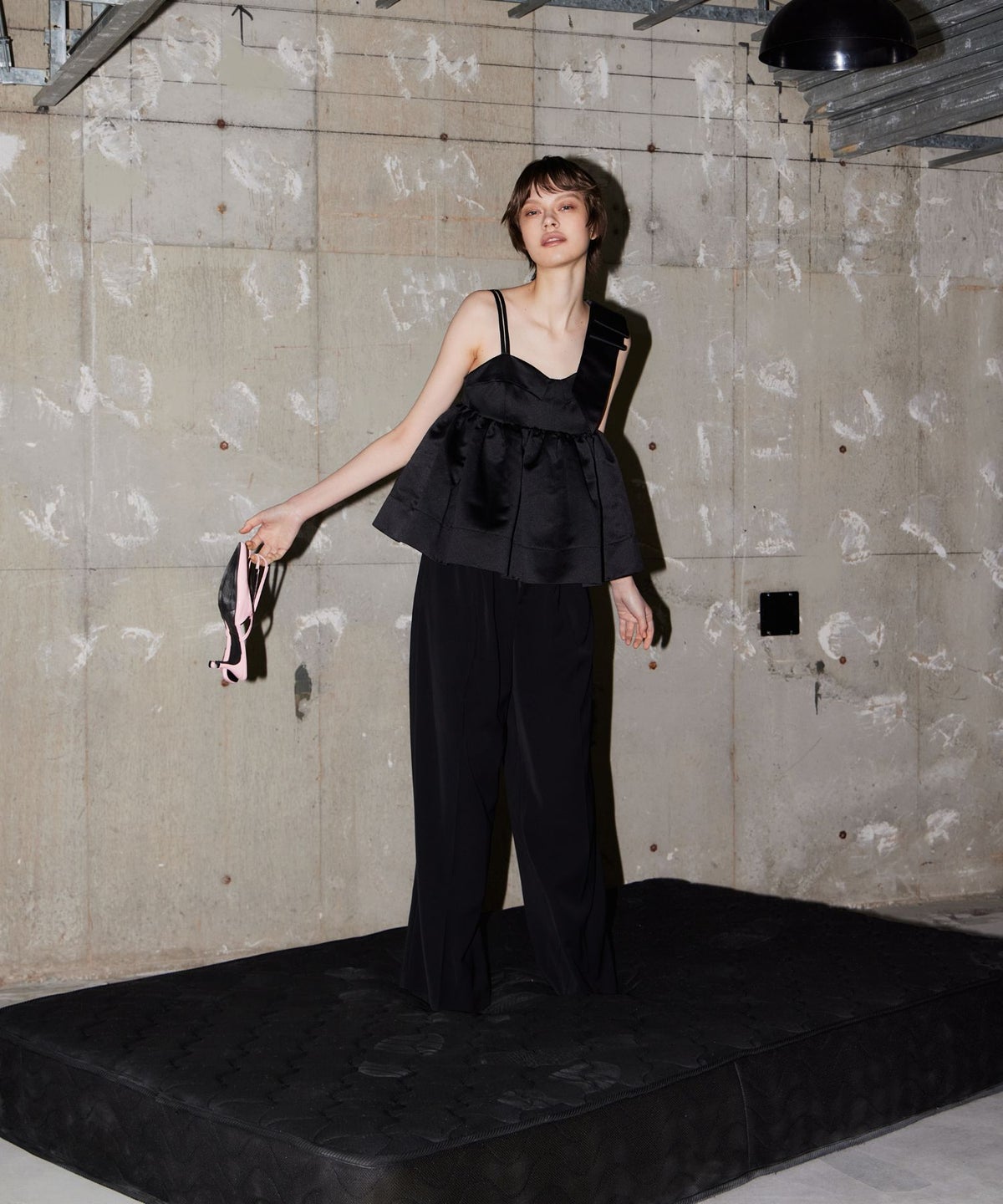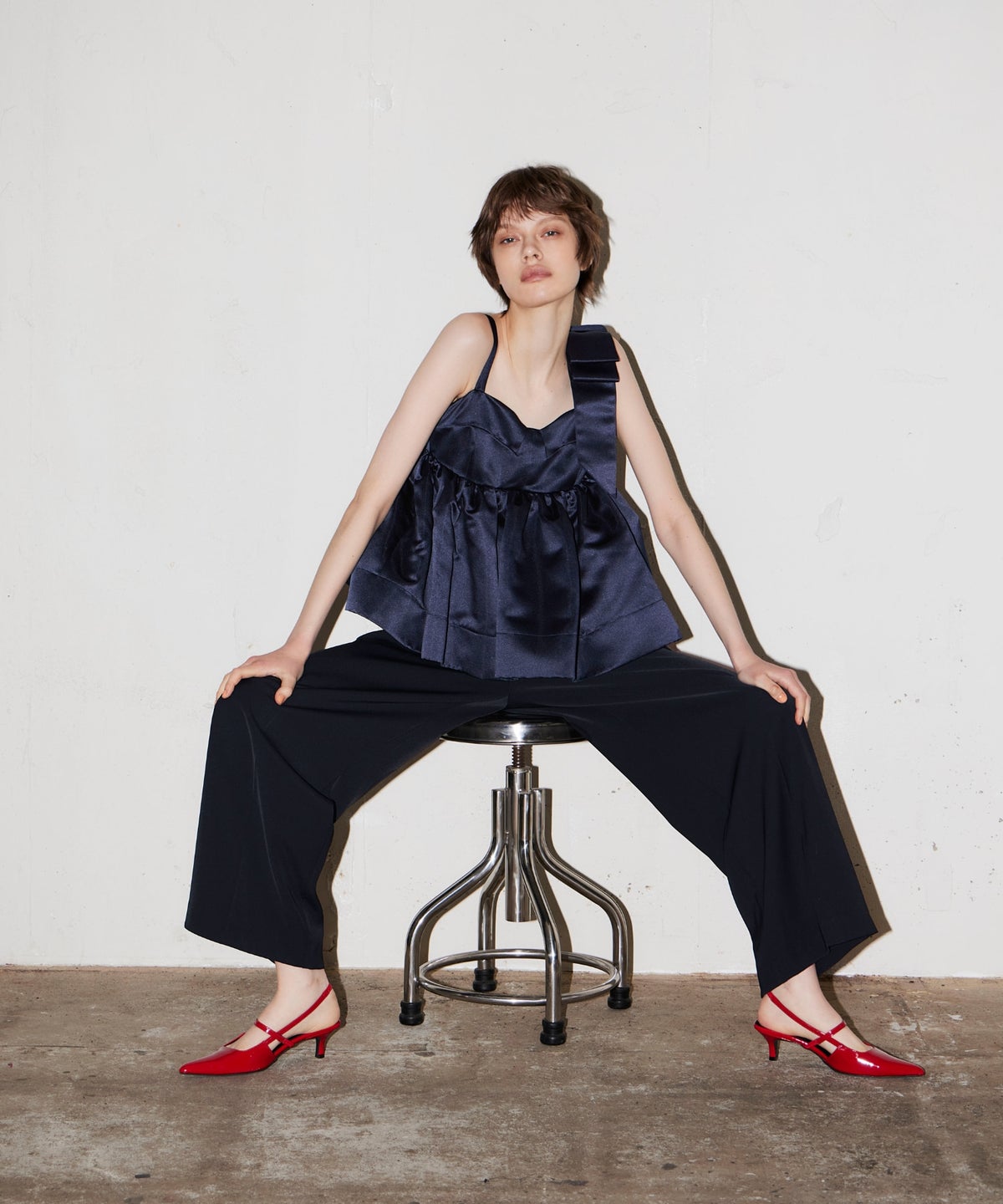 印象的な大胆ショルダーリボンは、アシンメトリーなバランスで甘さを抑えてANDRESDらしいバランスを。