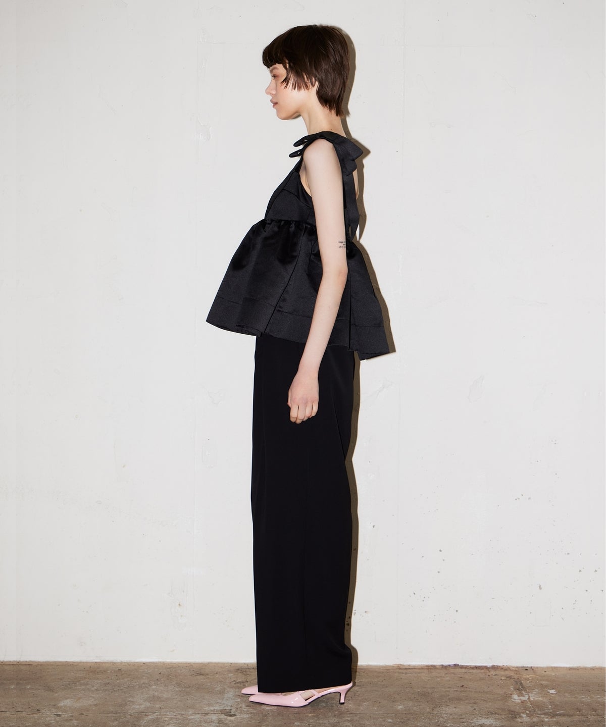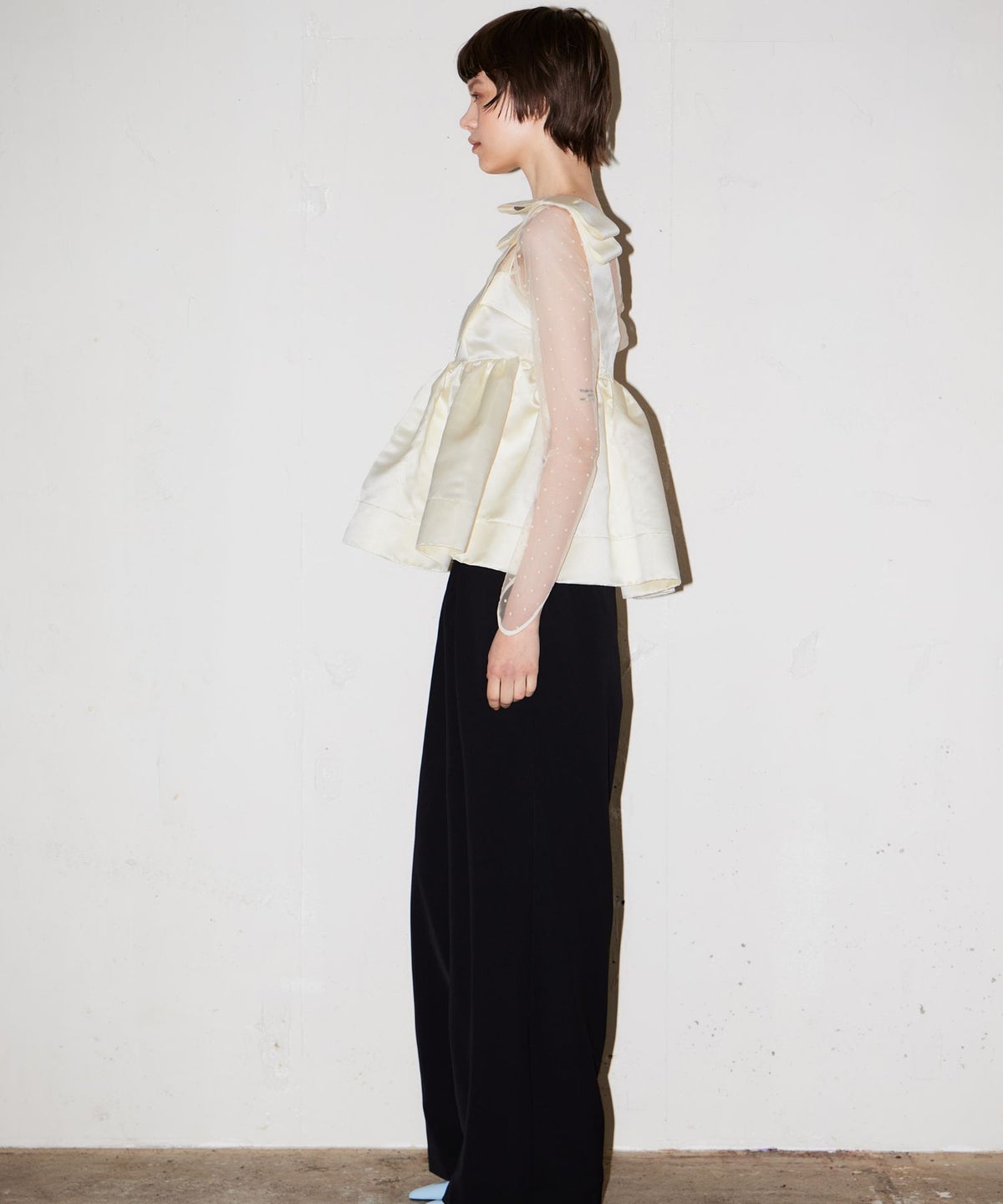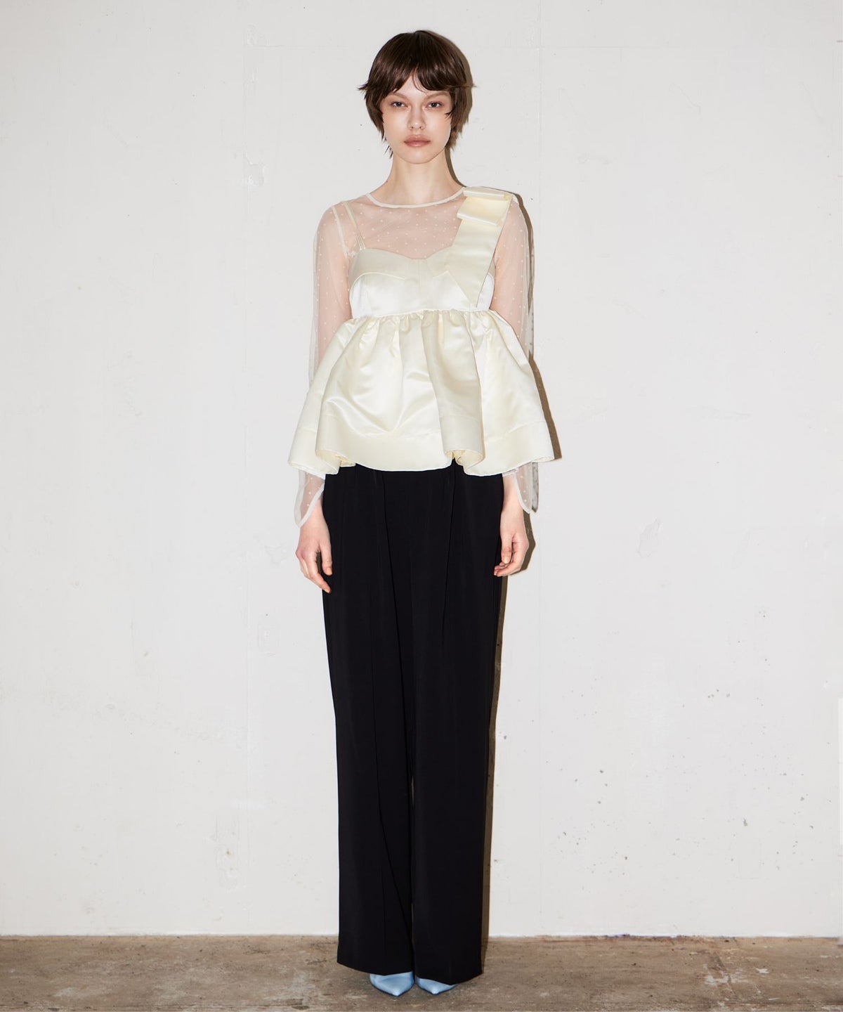 切替によってフォルムを際立たせ、ペプラムに立体感を生む。