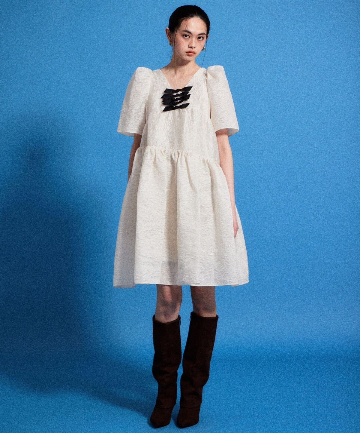 フロントには、あえて尖ったフォルムのリボンを複数配置。