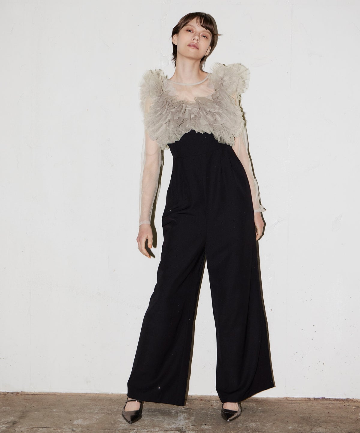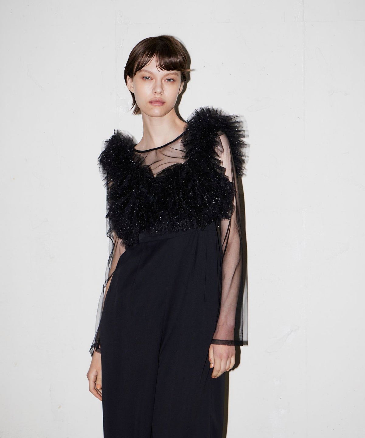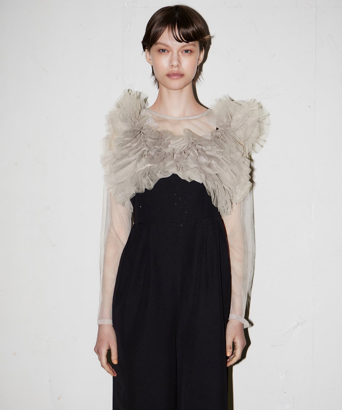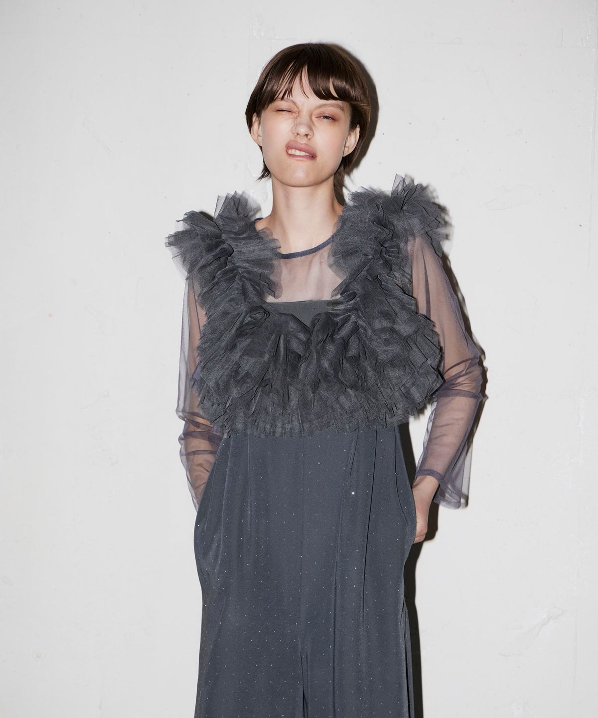 たっぷりチュールを重ねたフリルベストに、インナー、オールインワンを組み合わせた
