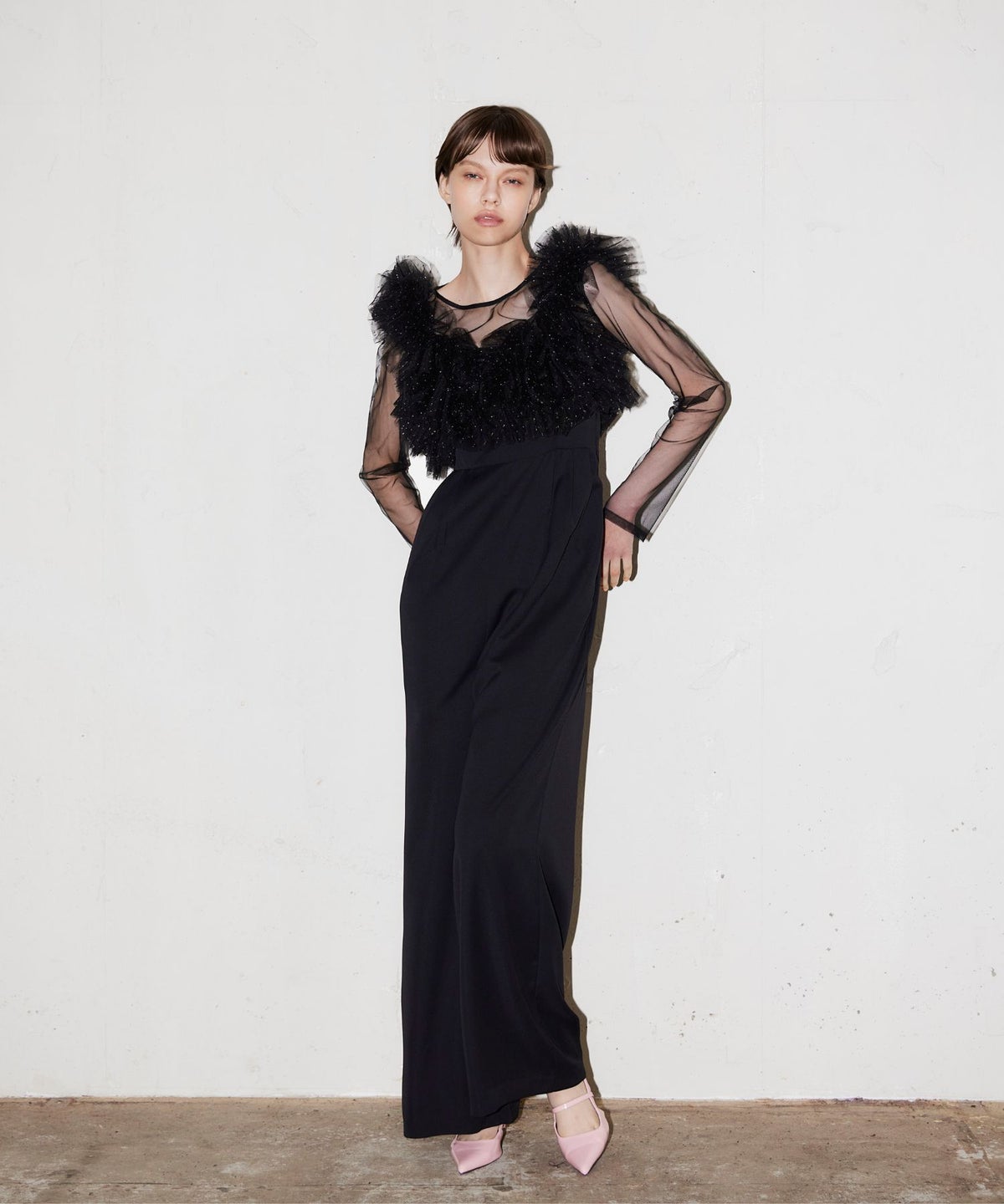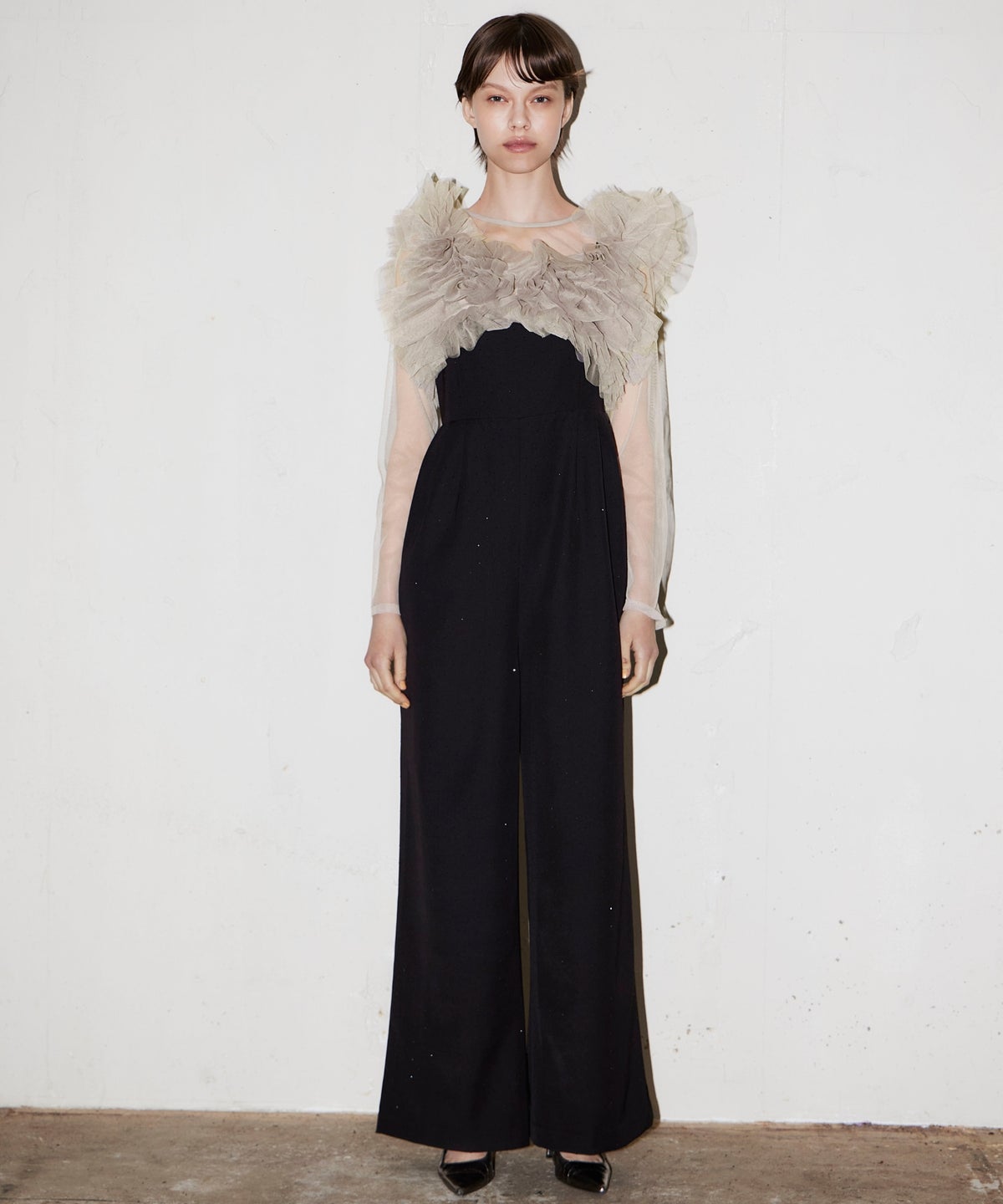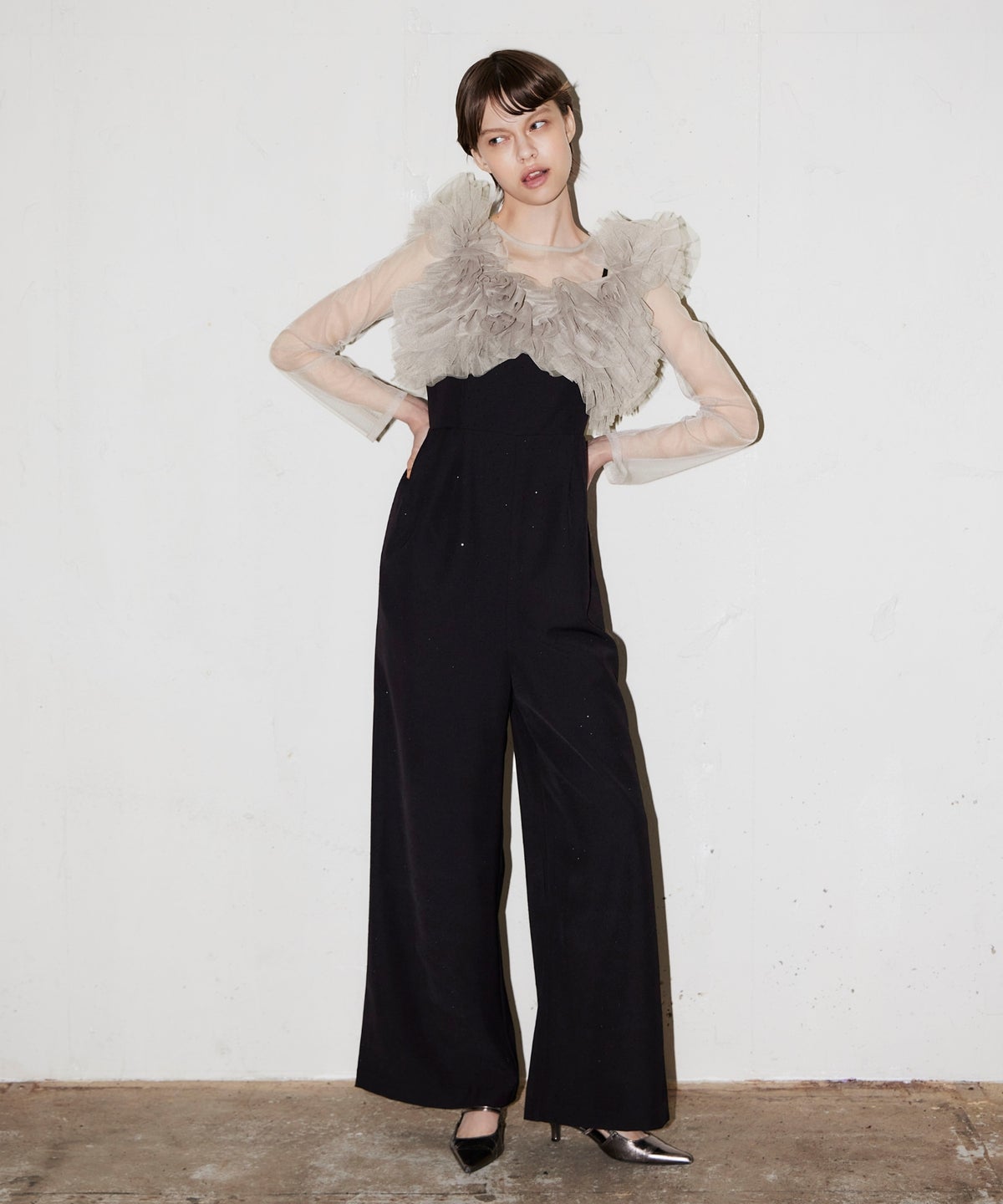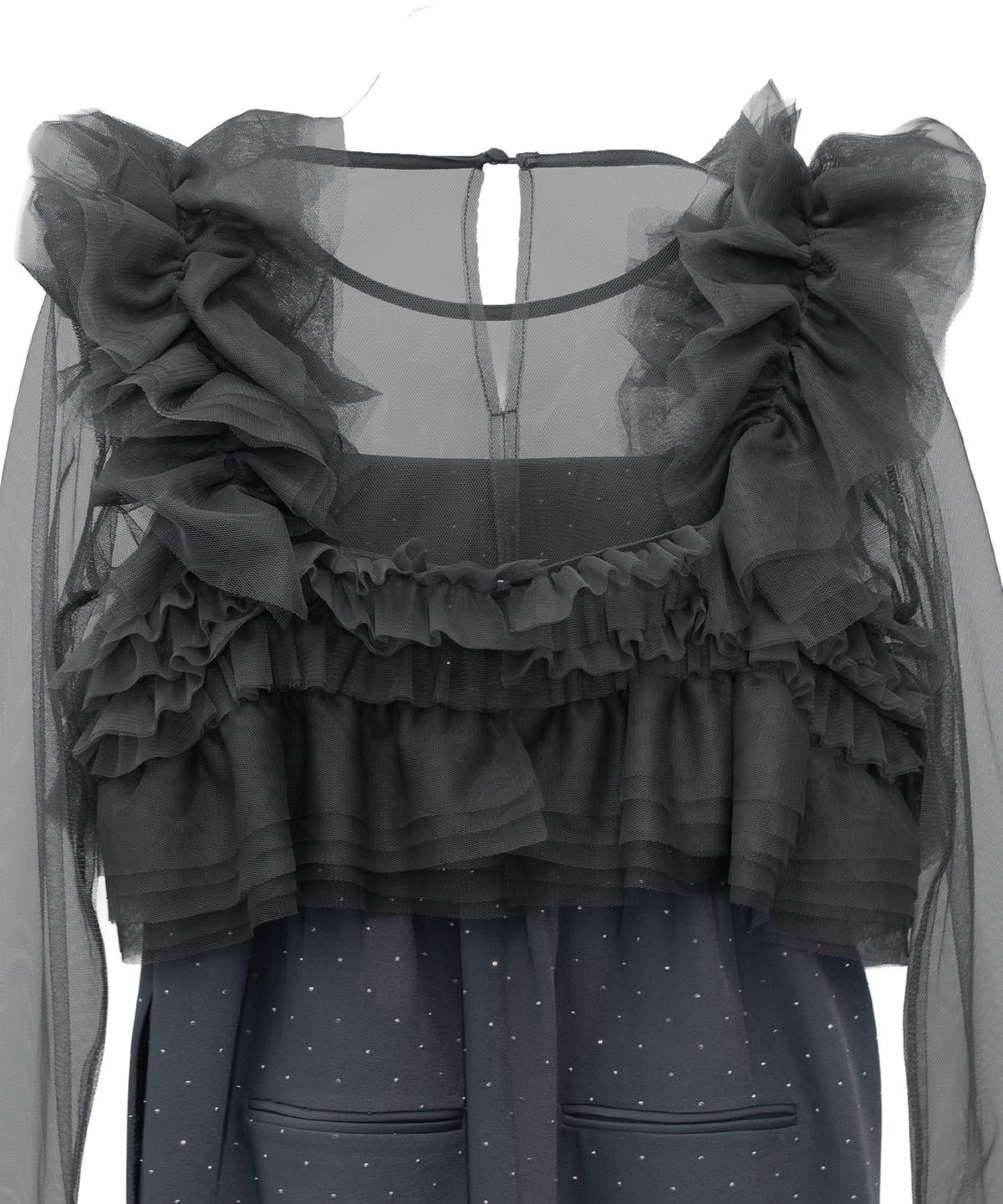 たっぷりチュールを重ねたフリルベストに、インナー、オールインワンを組み合わせた