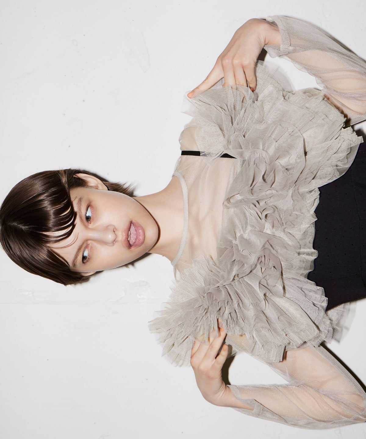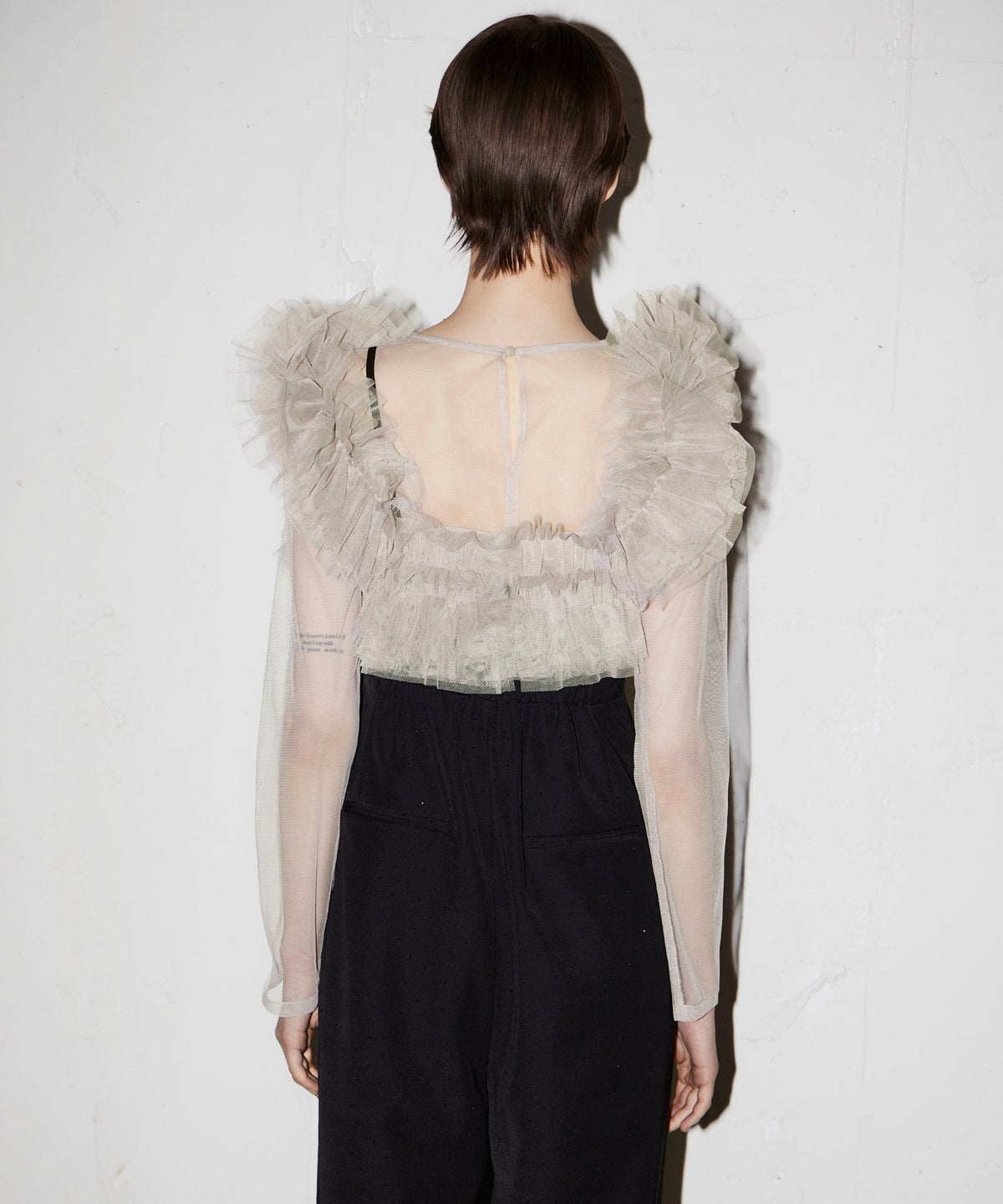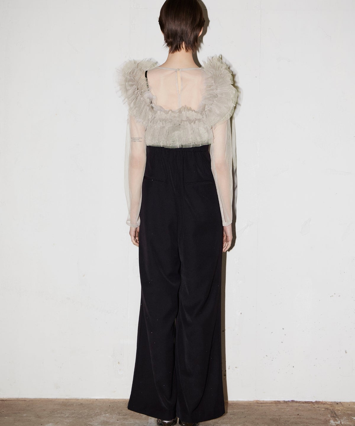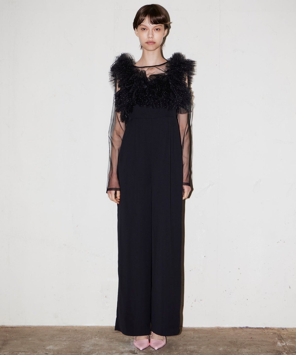 たっぷりチュールを重ねたフリルベストに、インナー、オールインワンを組み合わせた