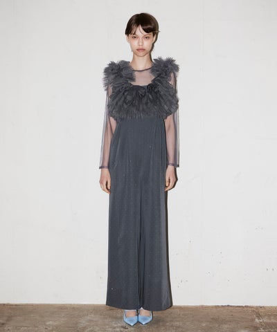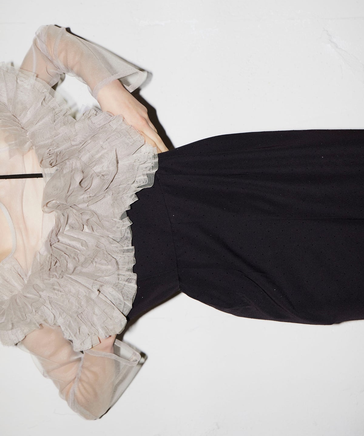 ブラックシルバーにはラメドット刺繍チュールとベロアを掛け合わせ、よりエッジィで特別感のある仕上がりに。