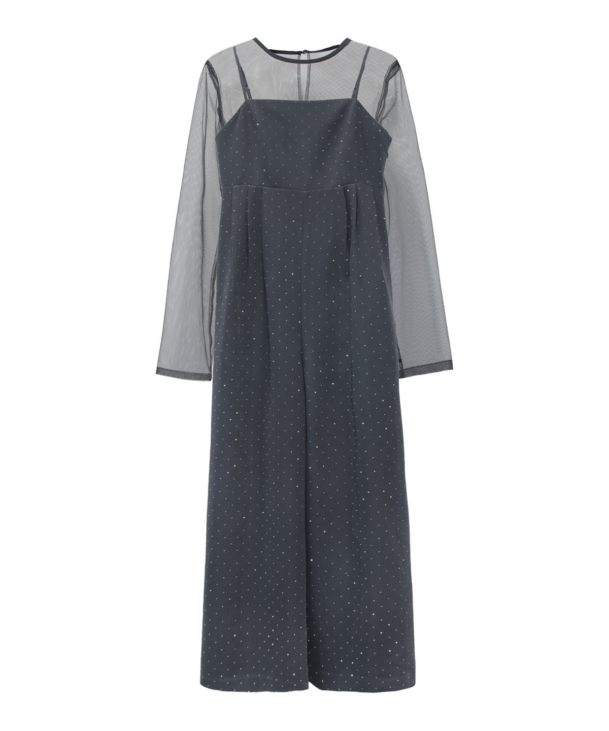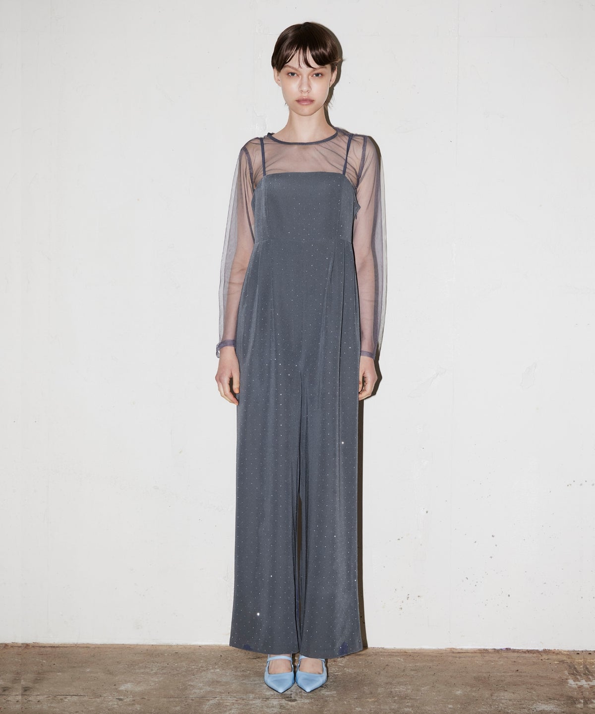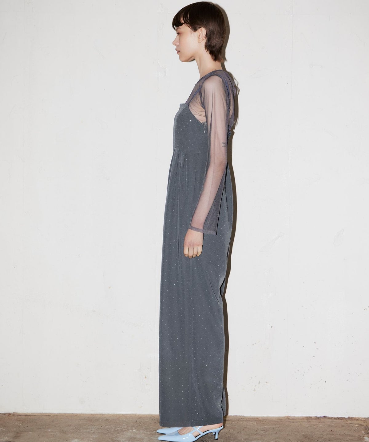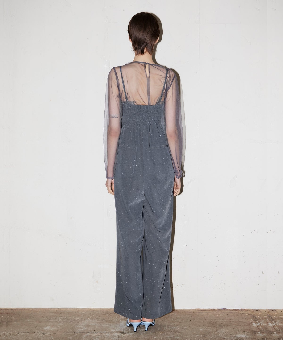 オールインワンは身体のラインを拾いすぎない程よい厚みの素材で、すっきりとしたシルエットを構築。