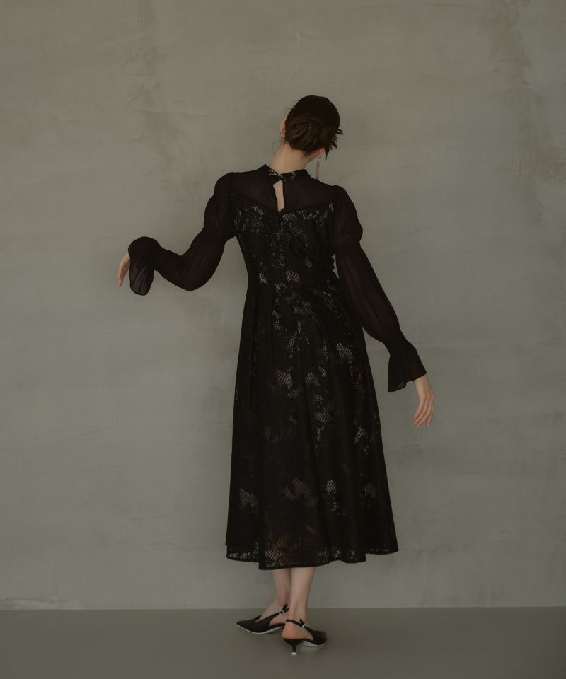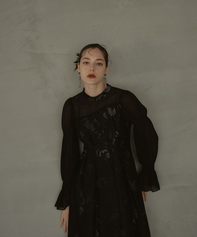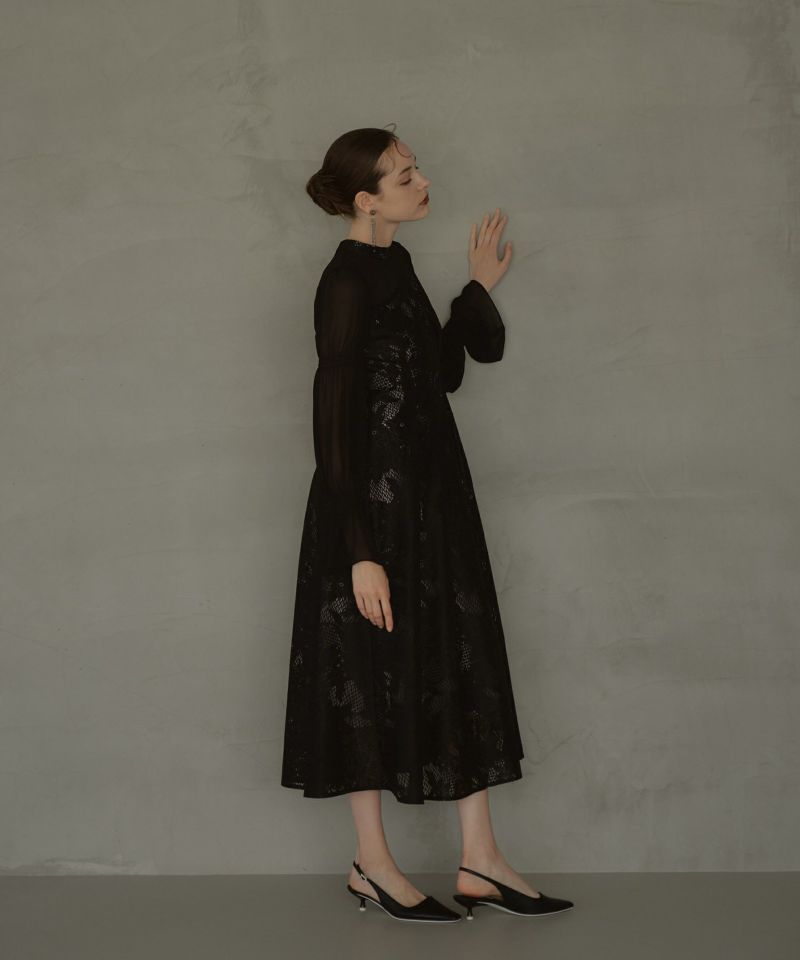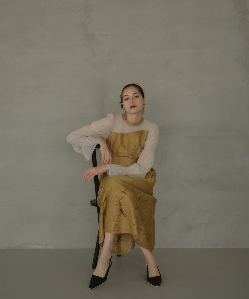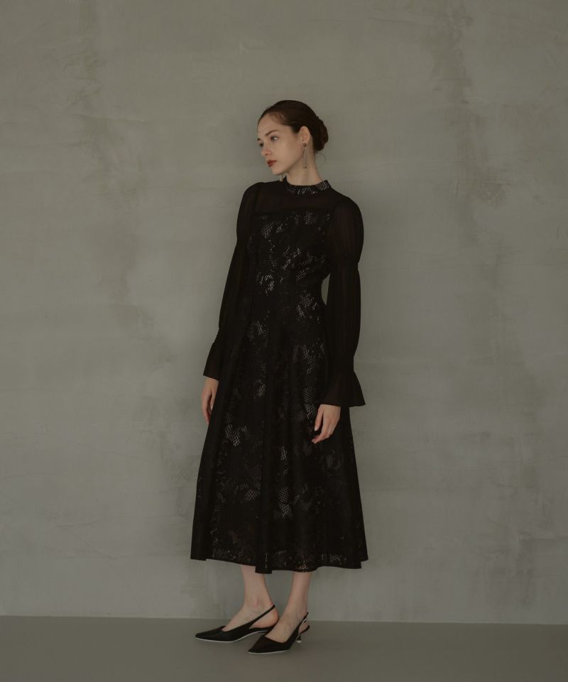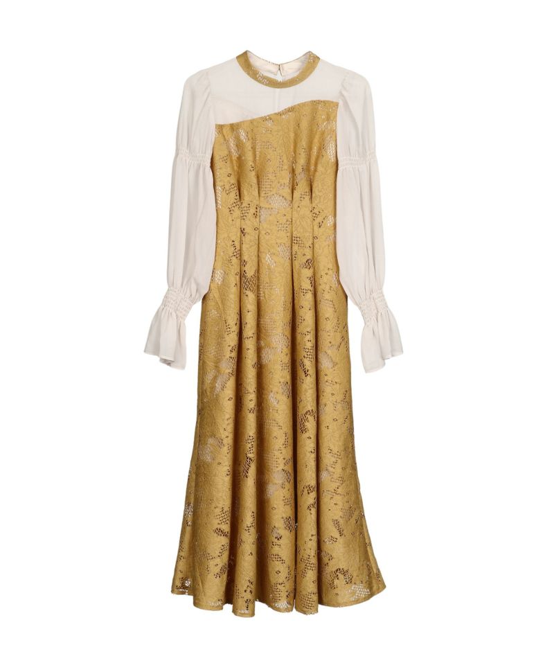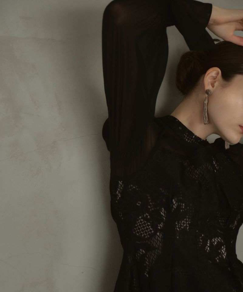 ほどよい肉感と光沢感のあるレースを採用した、高級感漂うドレス。