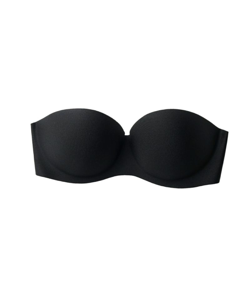 おしゃれの邪魔をしない、シンプルなデザインのストラップレスフィットブラ。