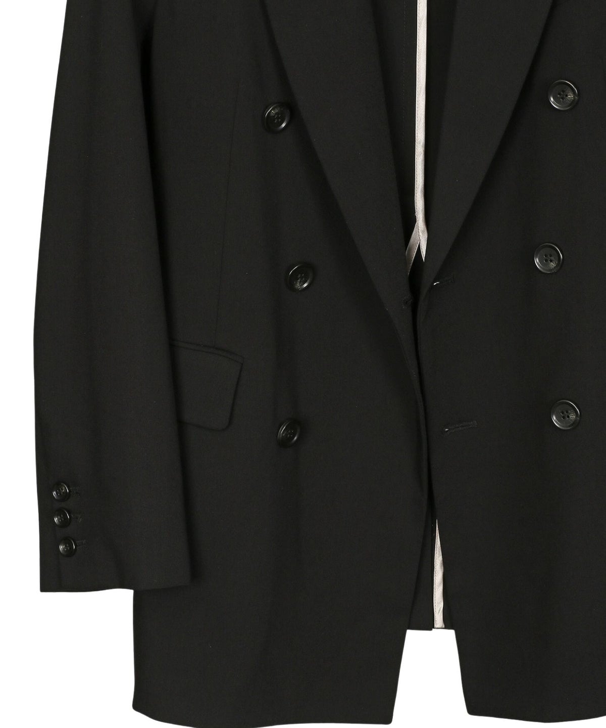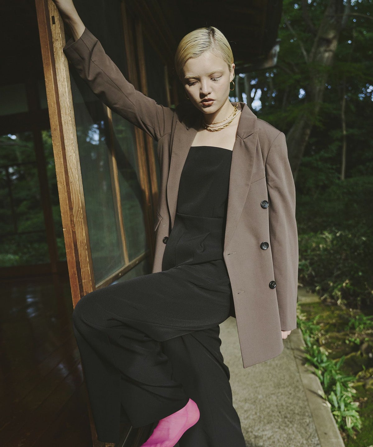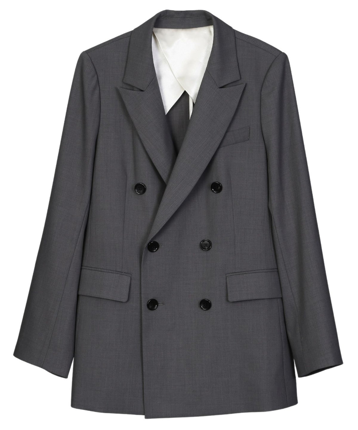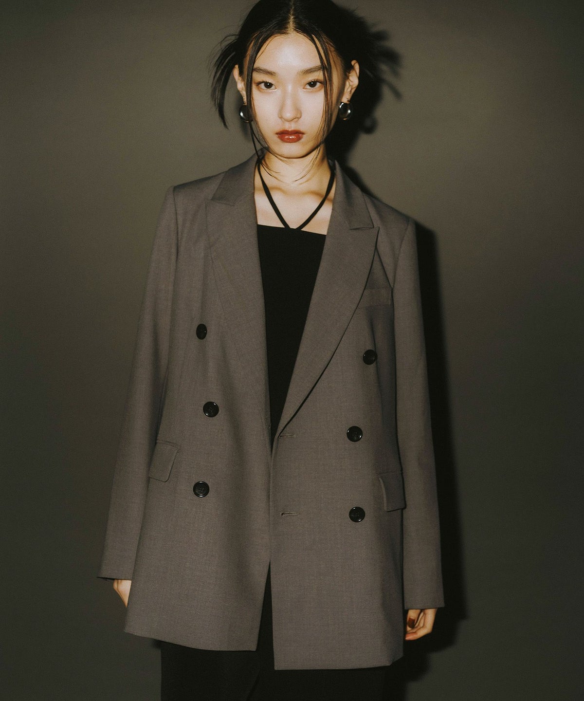 ピークドラペルとダブルでメンズライクに仕立てたジャケット。