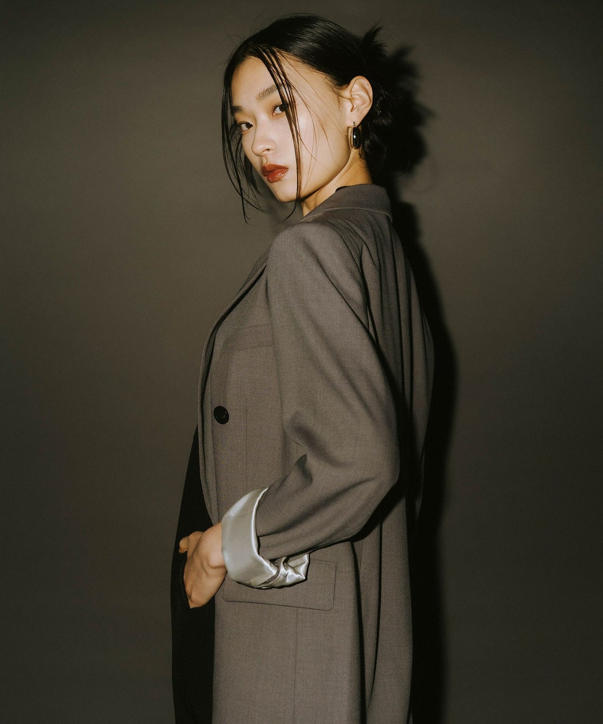 裏地は配色のサテン生地を使用し、マニッシュな雰囲気の中にも女性らしい柔らかさをプラスしています。