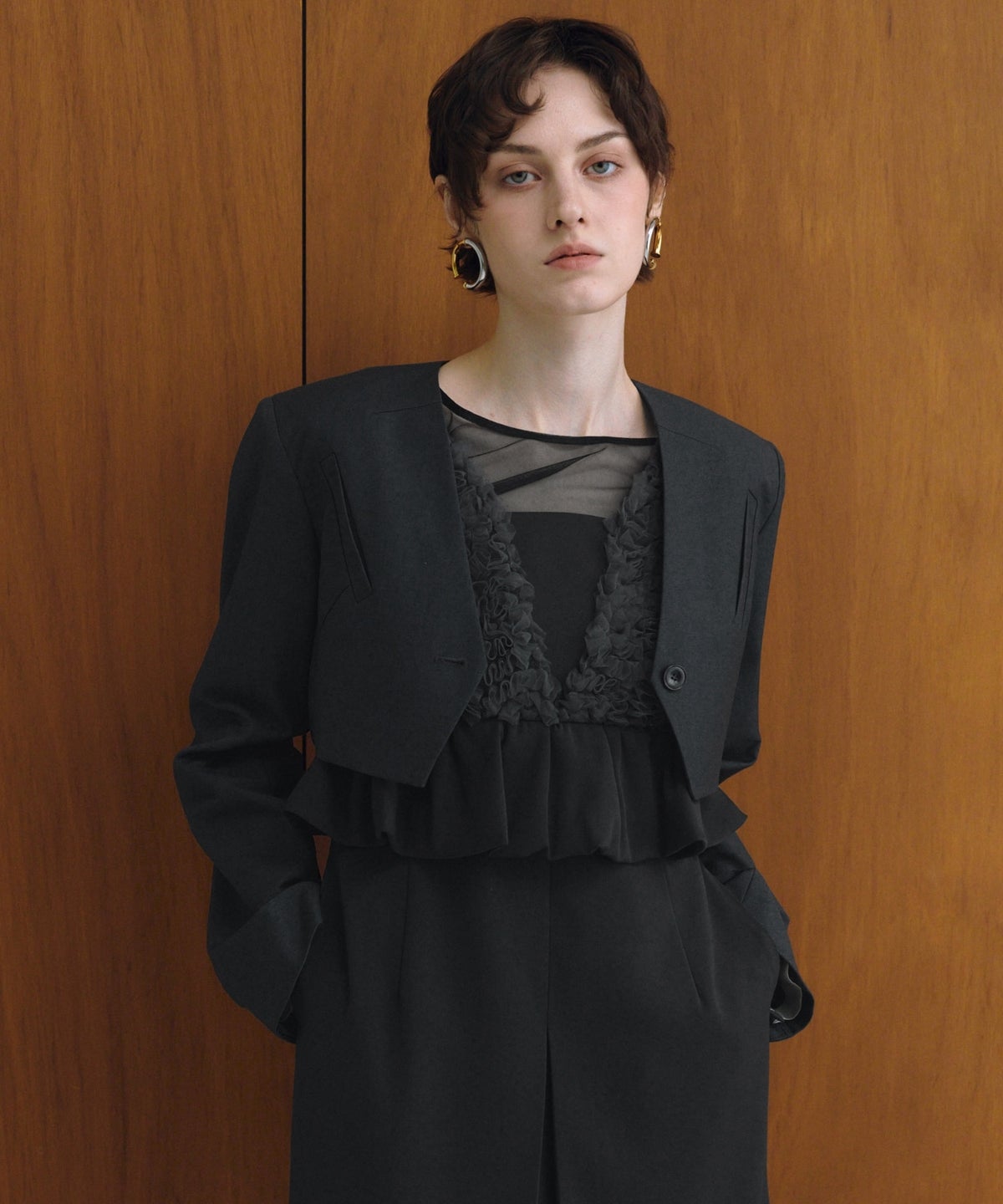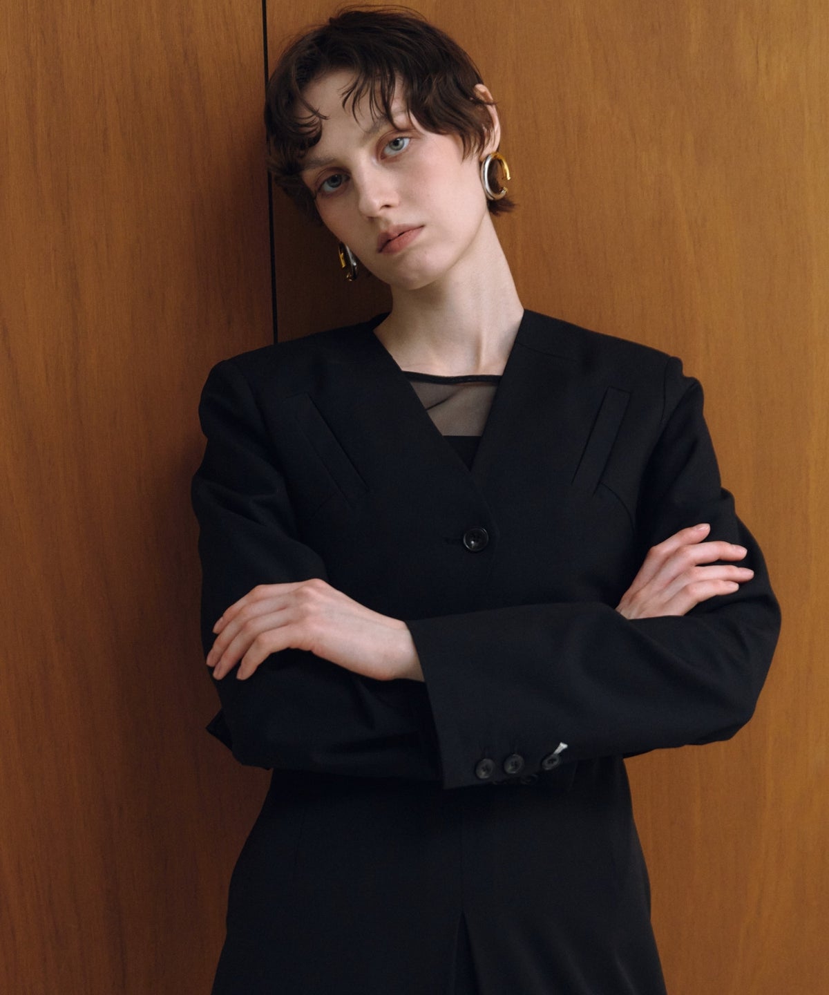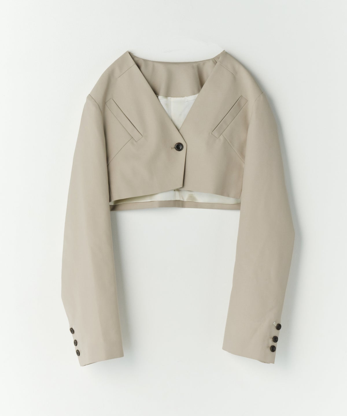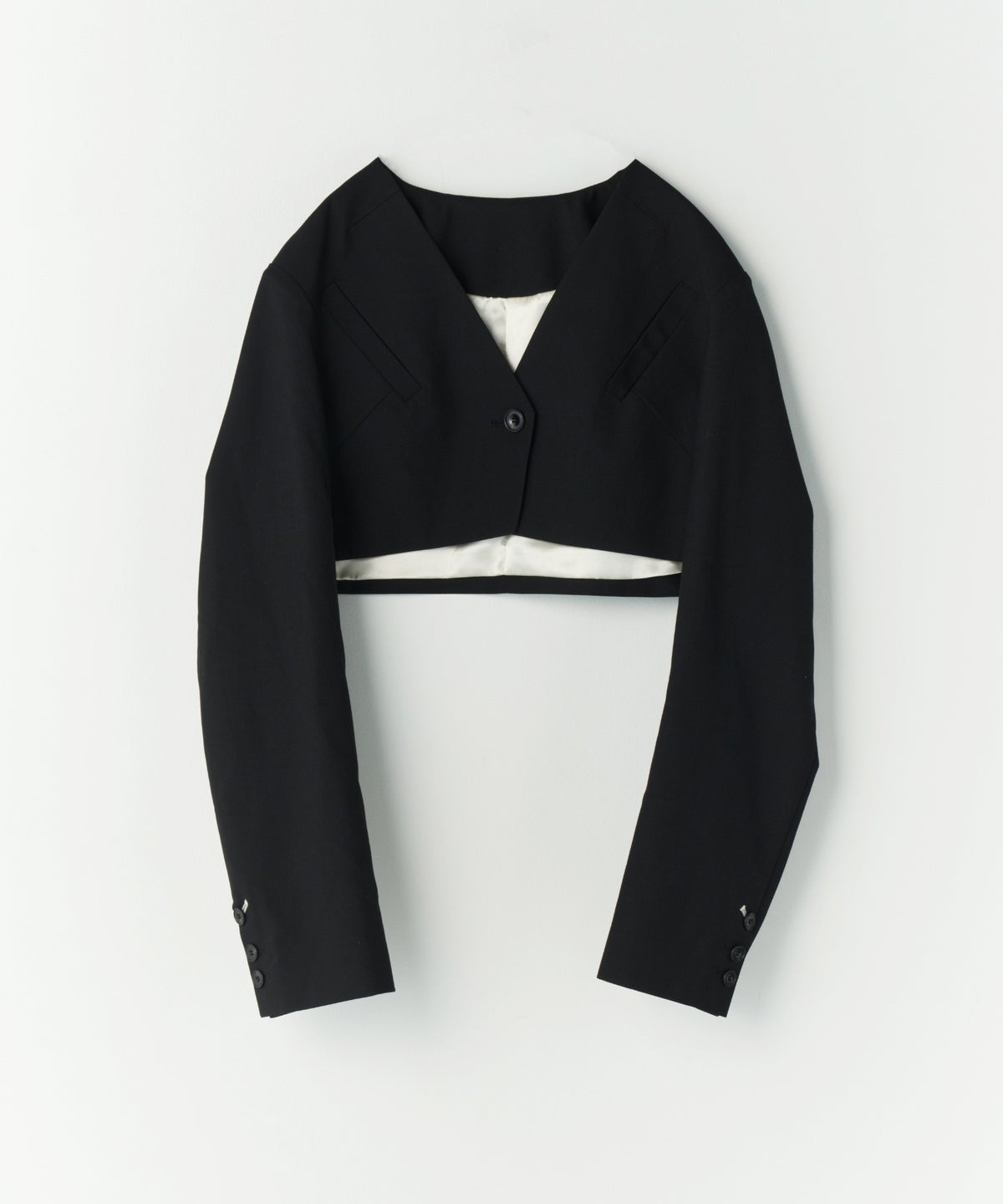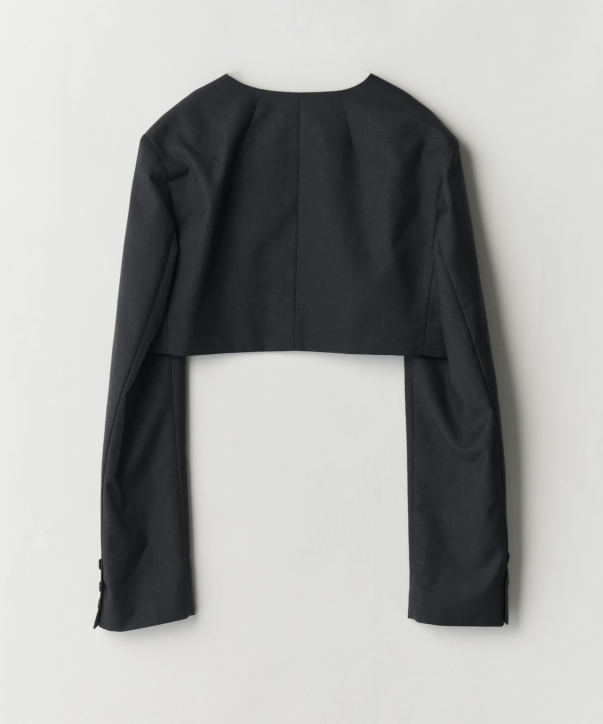 直線的でミニマルなフォルムにモードなディテールを落とし込んだクロップドジャケット。