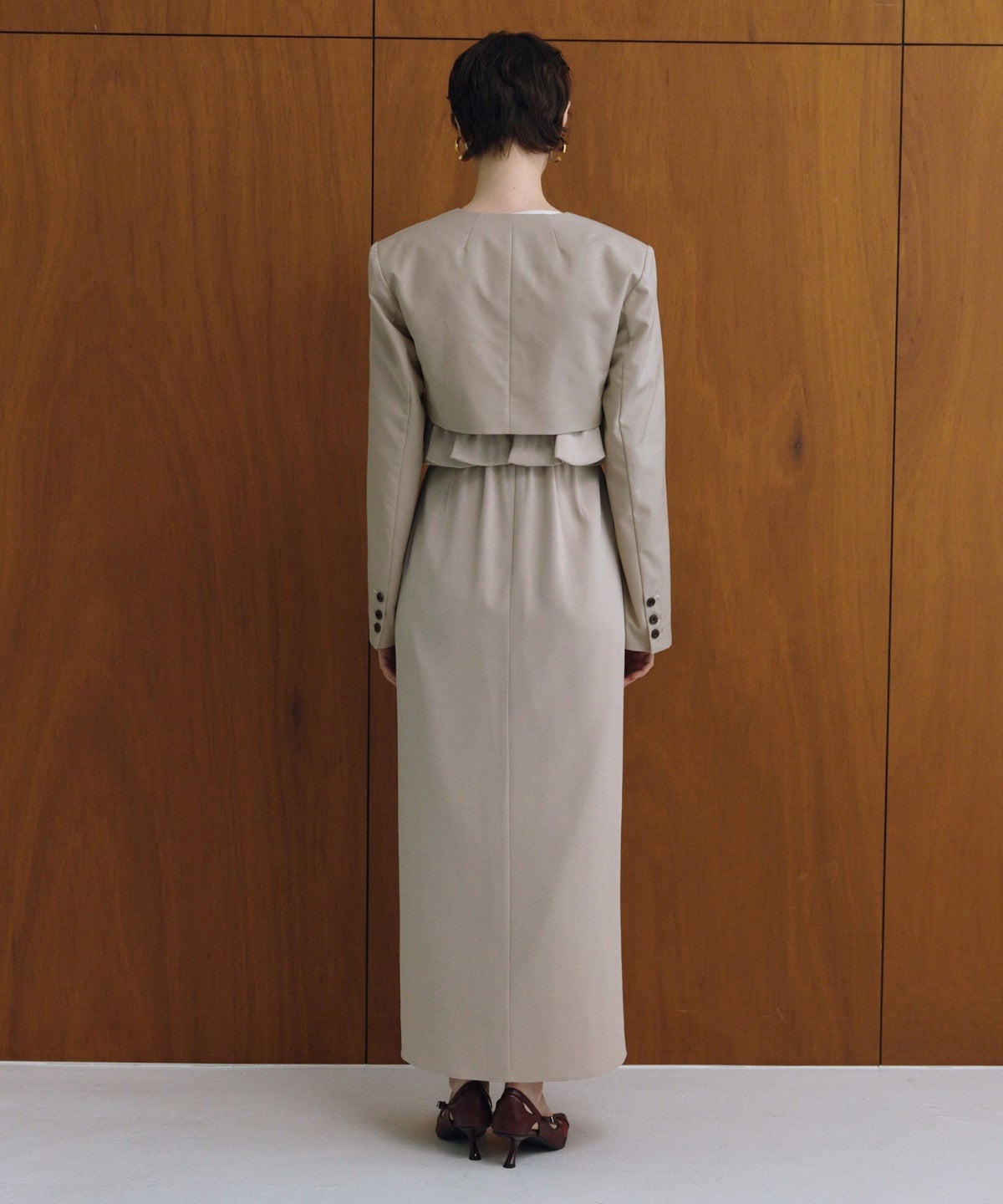 volume tulle peplum dress(品番:50293) のペプラムを邪魔しない丈設定に仕上げました。