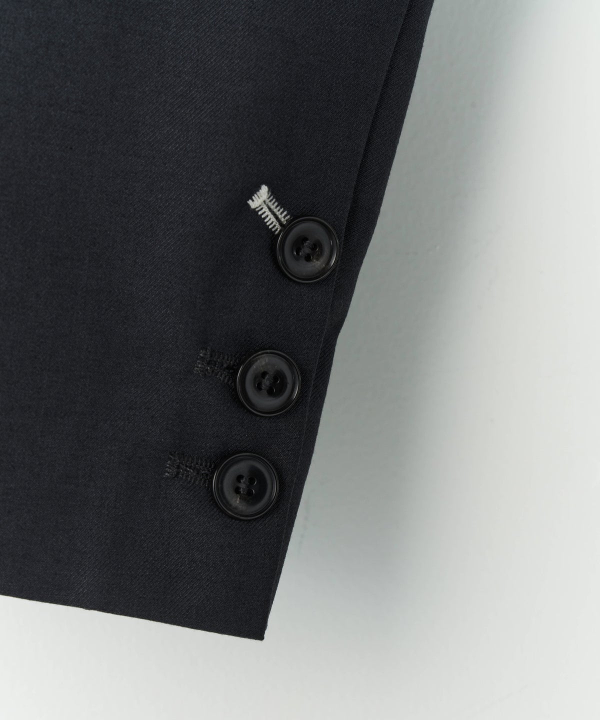 袖口には1番上のボタンホールを斜めに施し、ホワイトステッチでさりげなく配色を効かせ遊び心を。