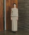 トップスのシルエットがきれいに見えるように、スカートはストレートラインに。