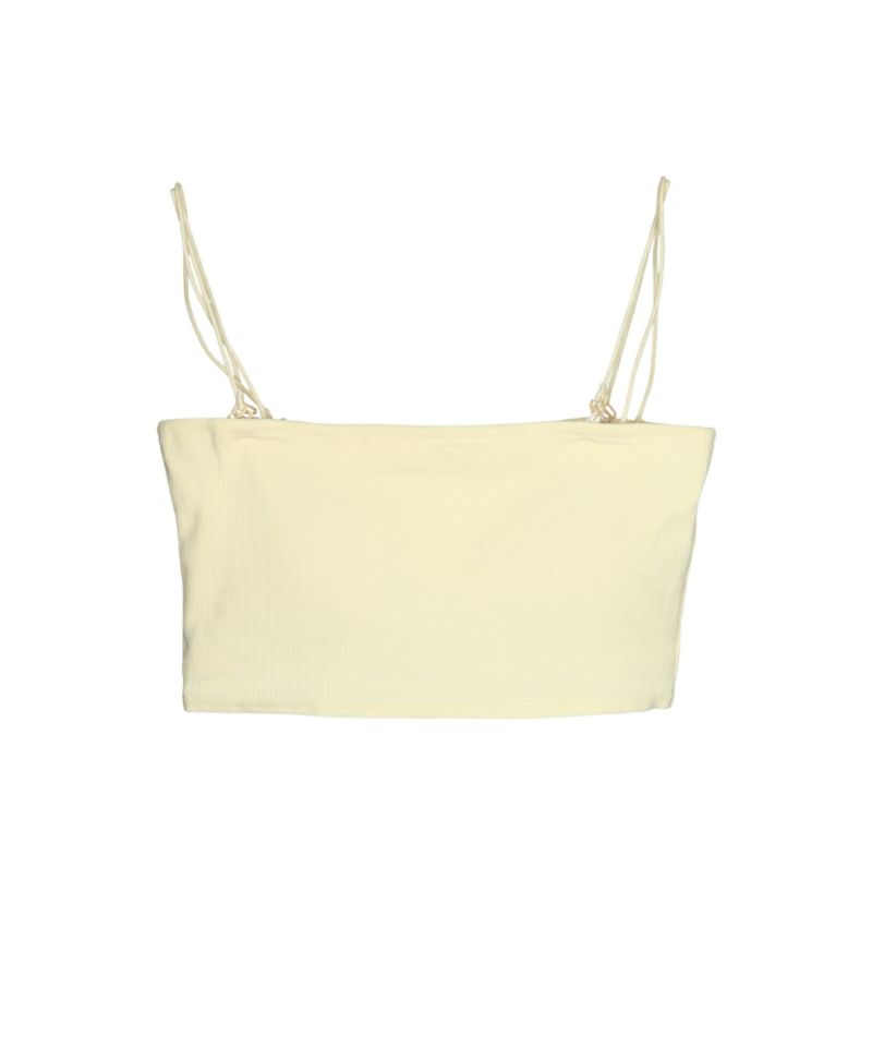 一方、バンドゥブラには幅広いデザインに馴染む細めのリブを採用し、取り外し可能なスパゲッティストラップで華奢な印象をプラスしました。