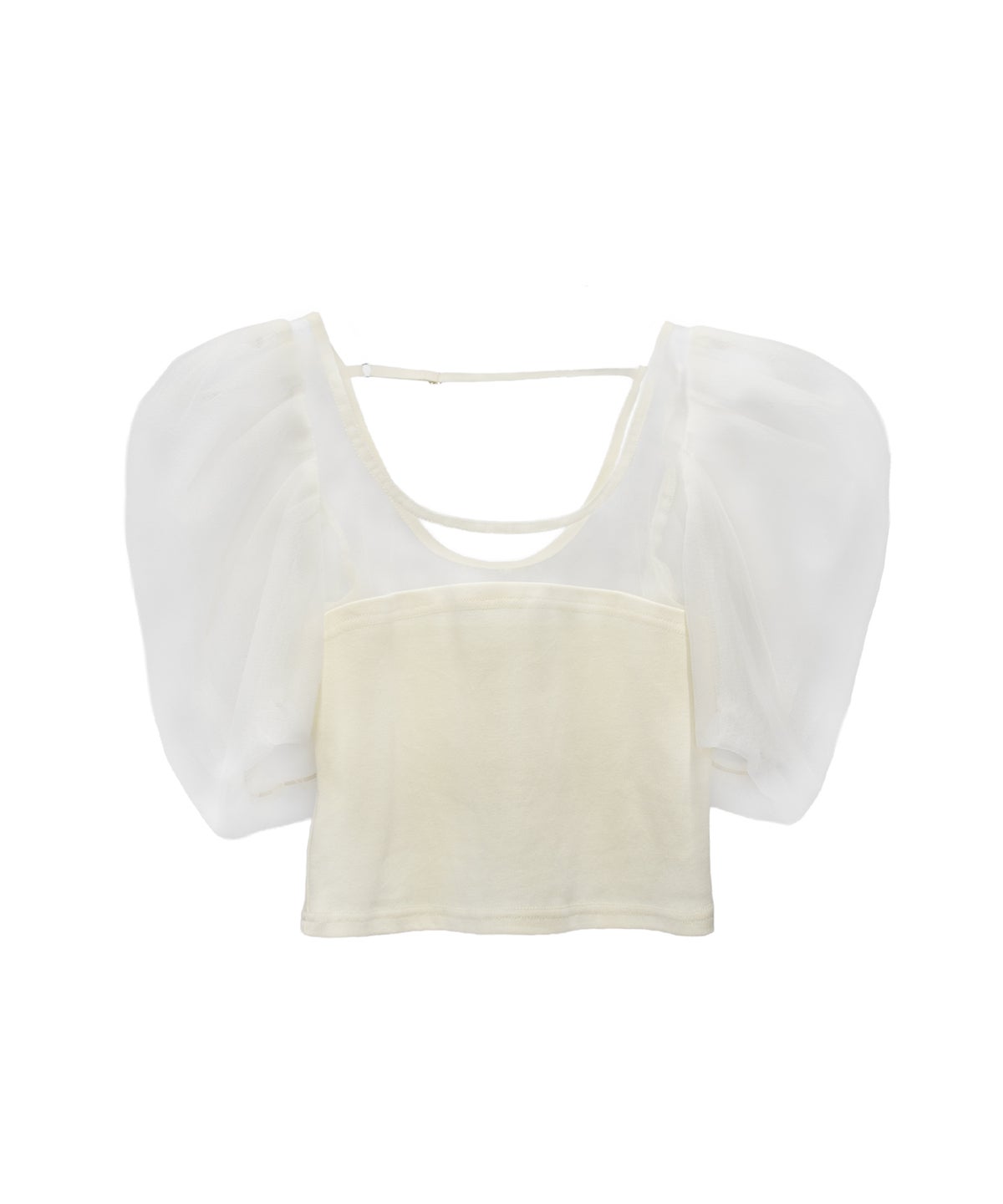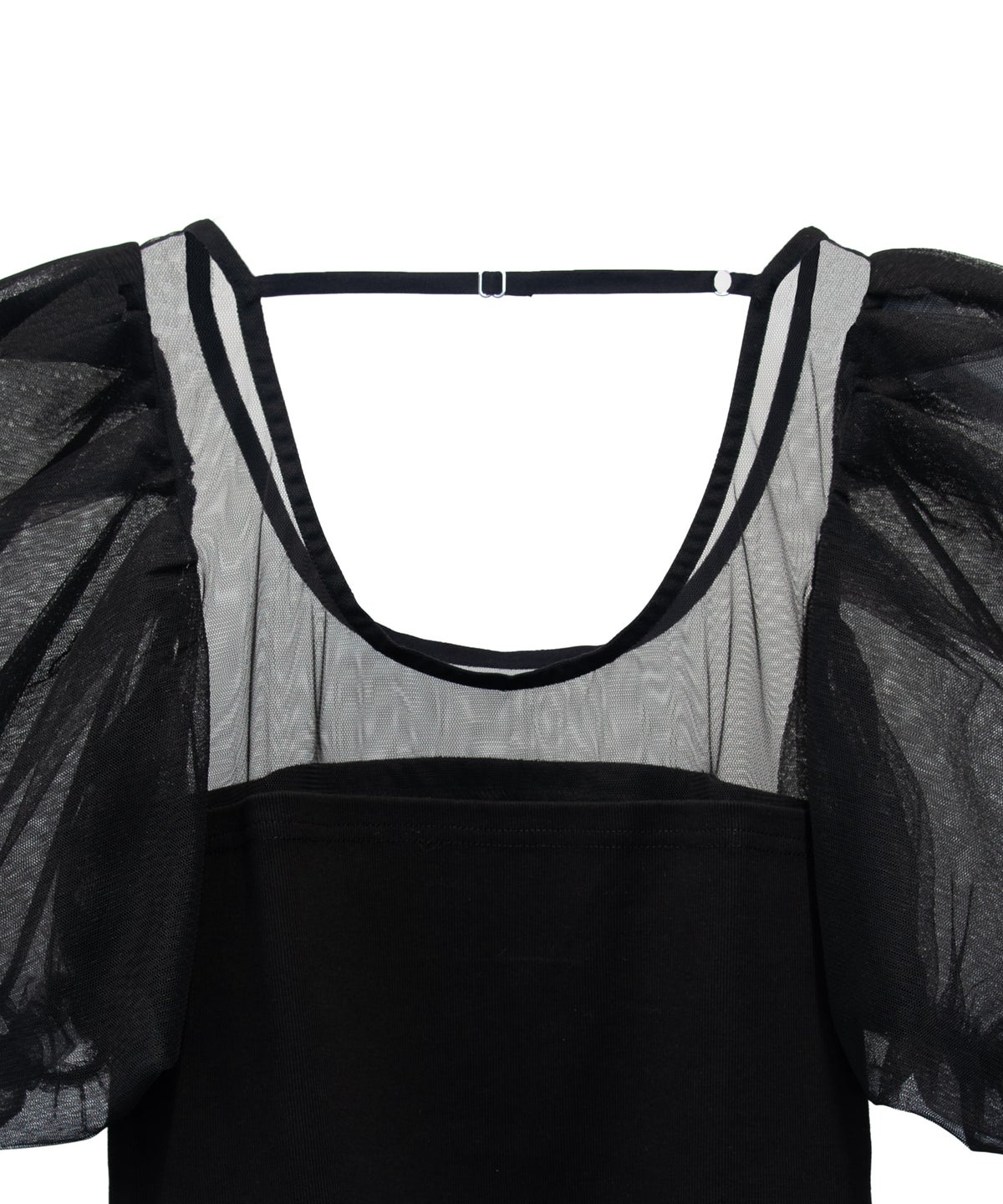 袖にはソフトチュールの内側にハードチュールを忍ばせ、