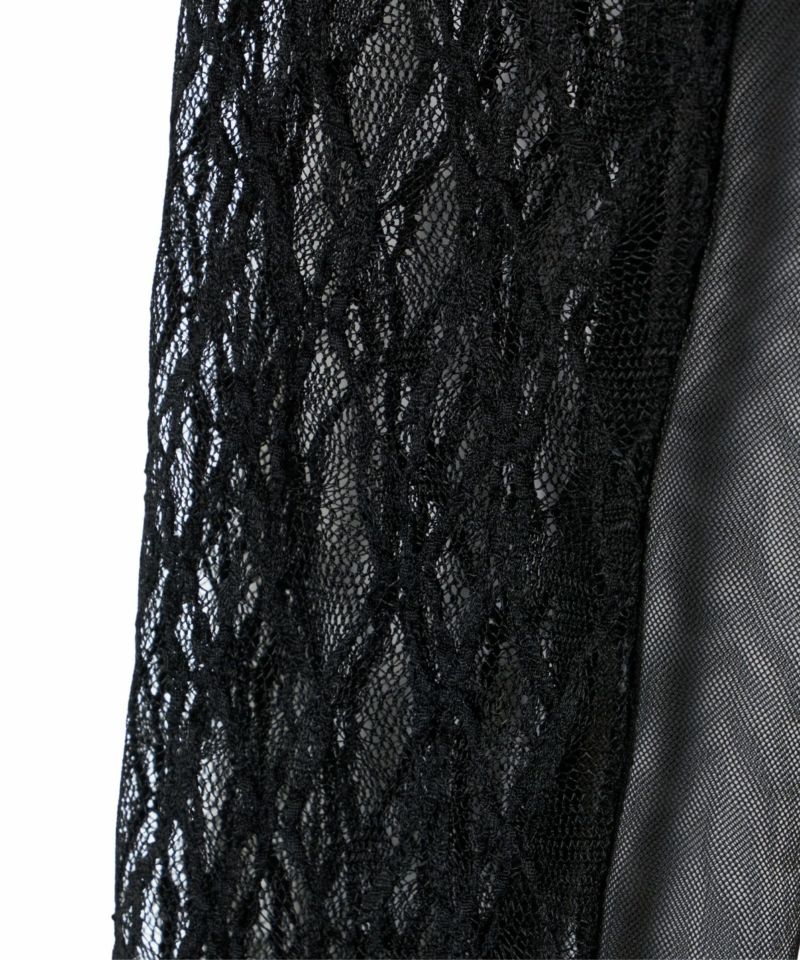 ストレッチ性のある繊細レースとチュールの切り替えで異素材の組み合わせでデザインし