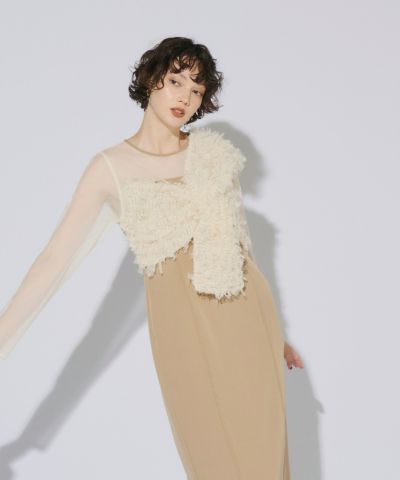 可愛い〜の言葉しか出てきません♡♡ フリンジ部分は本当にキラキラしていて、この可愛さは手に取り目で見てほしいです! シースルーの部分の生地もしっかりしているし、ベージュを購入しましたが、色味も落ち着きのあるベージュなので可愛いさと上品さがあります。購入して本当に良かったです♡ 大切に着ようと思います!!