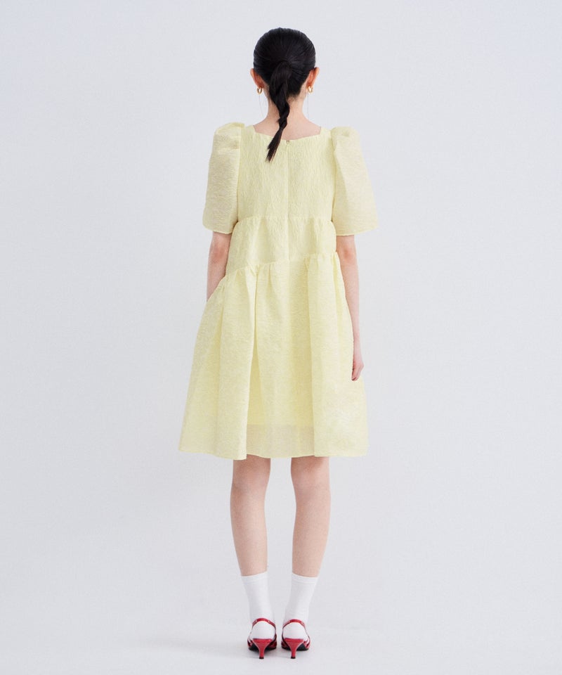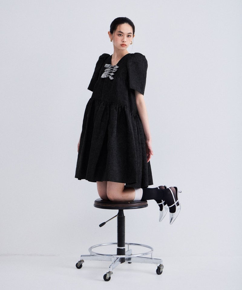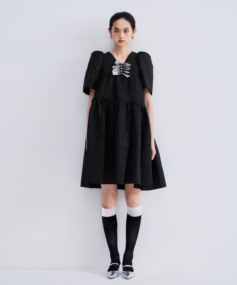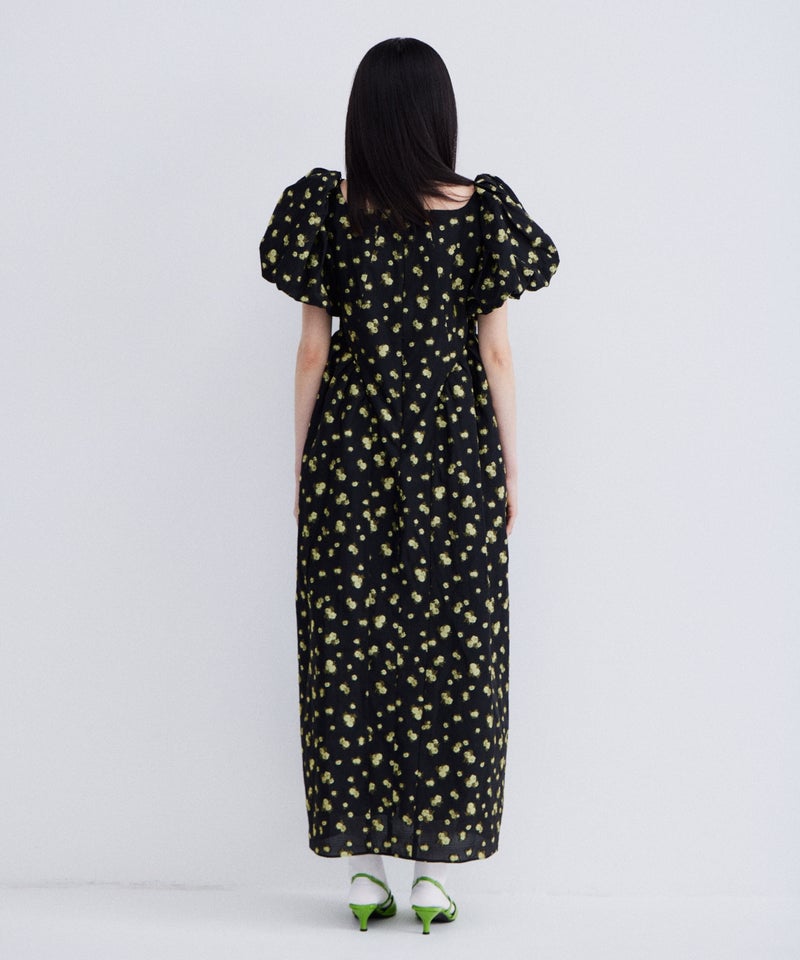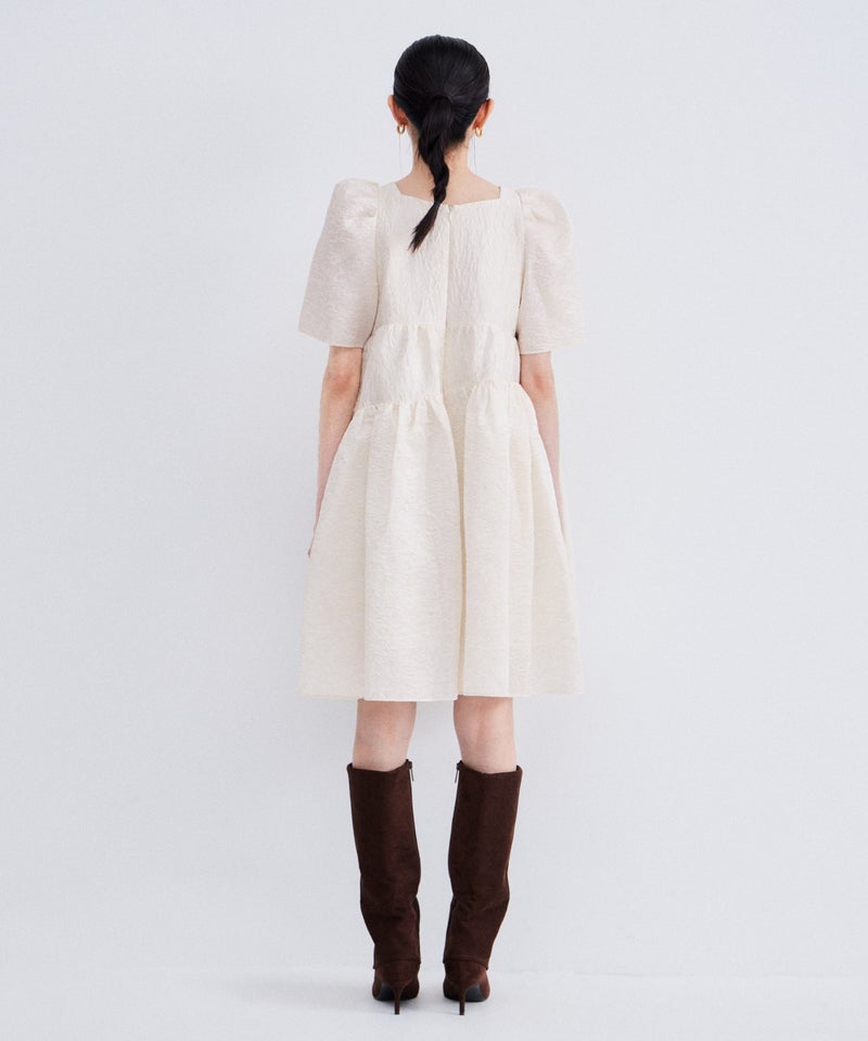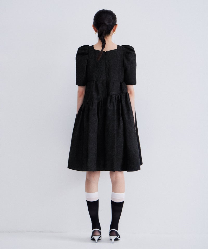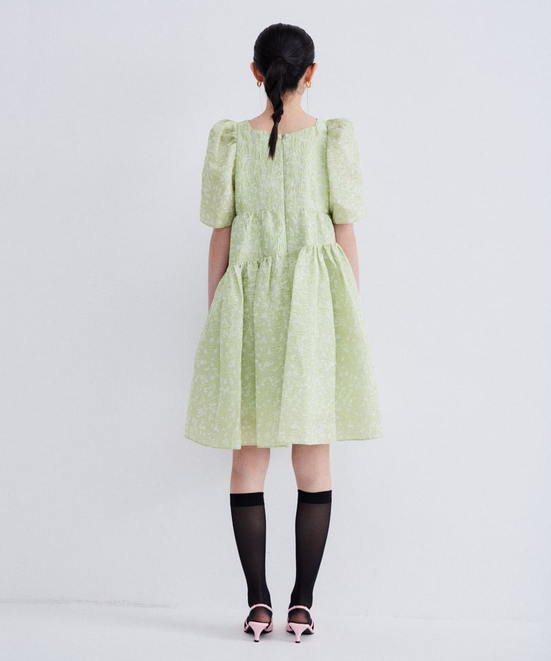 bubble sleeve jacquard dress