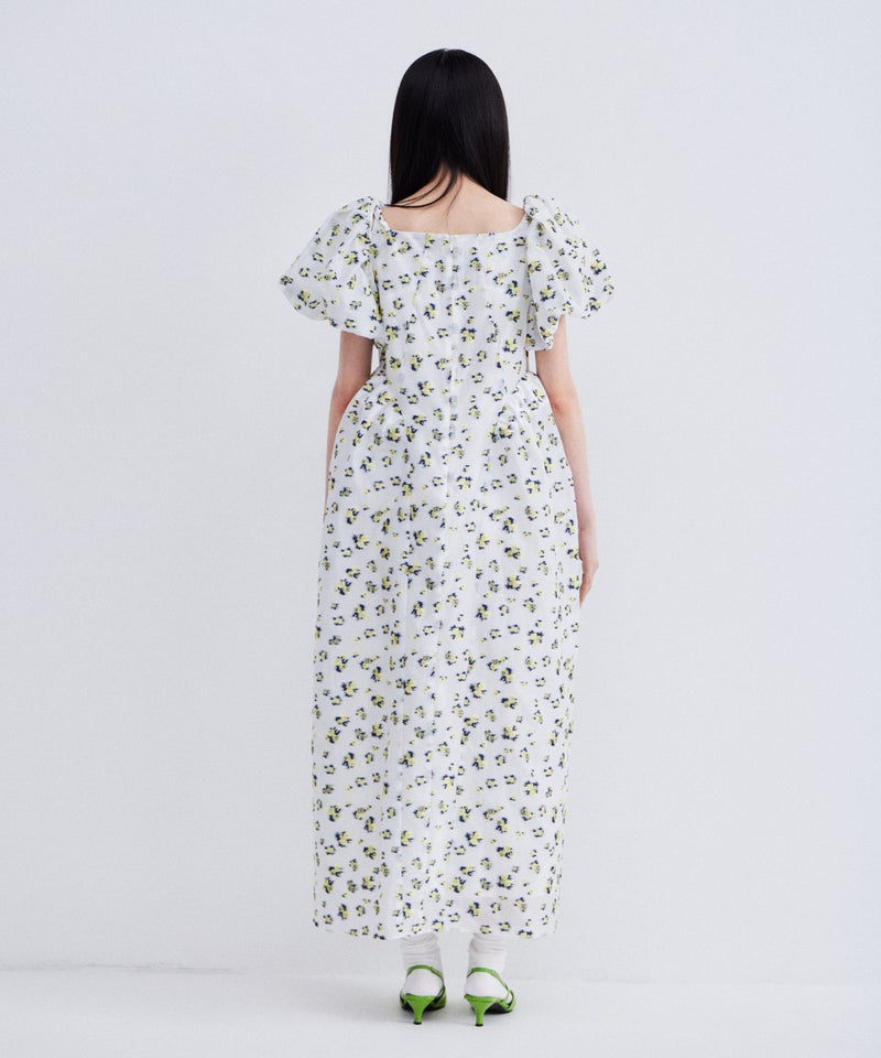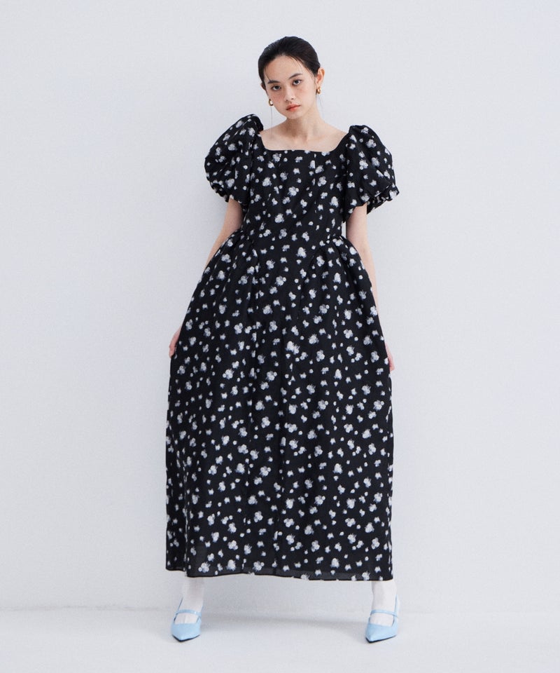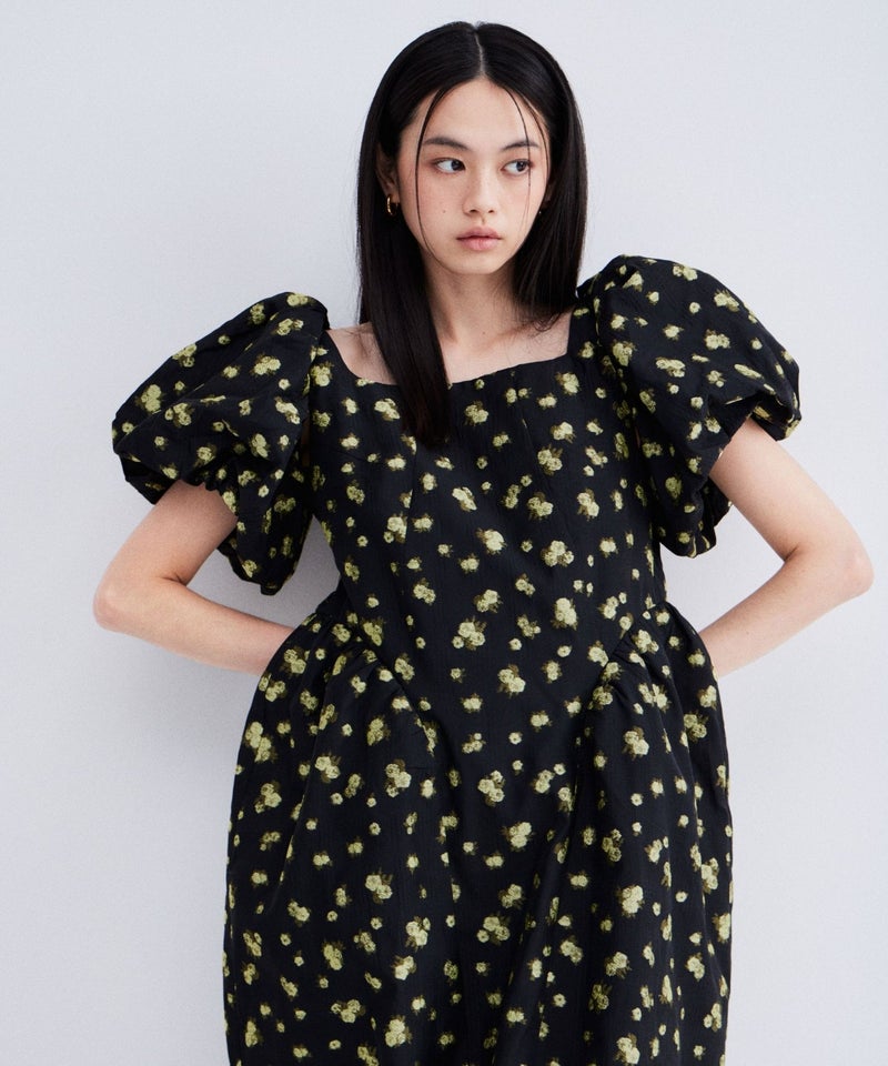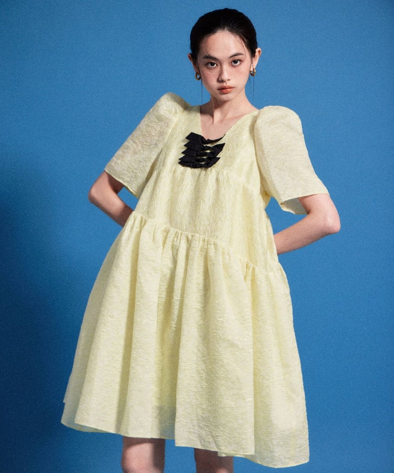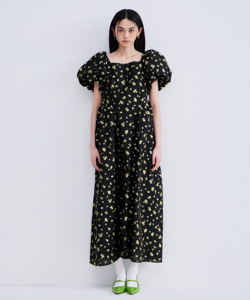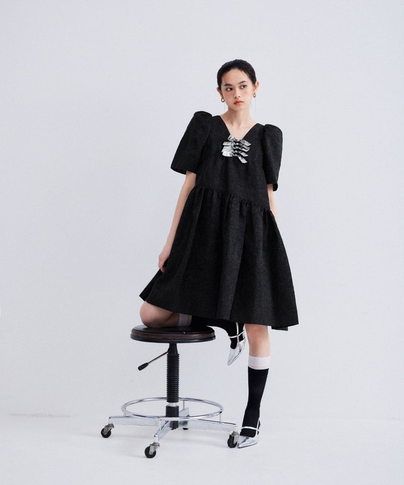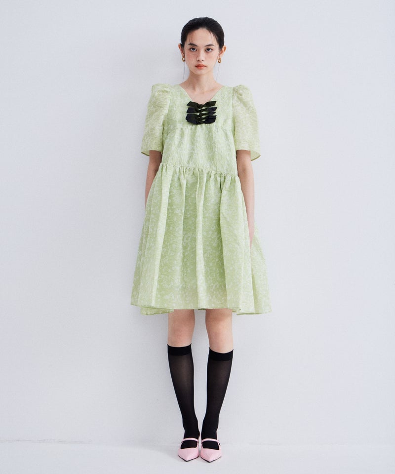 bubble sleeve jacquard dress